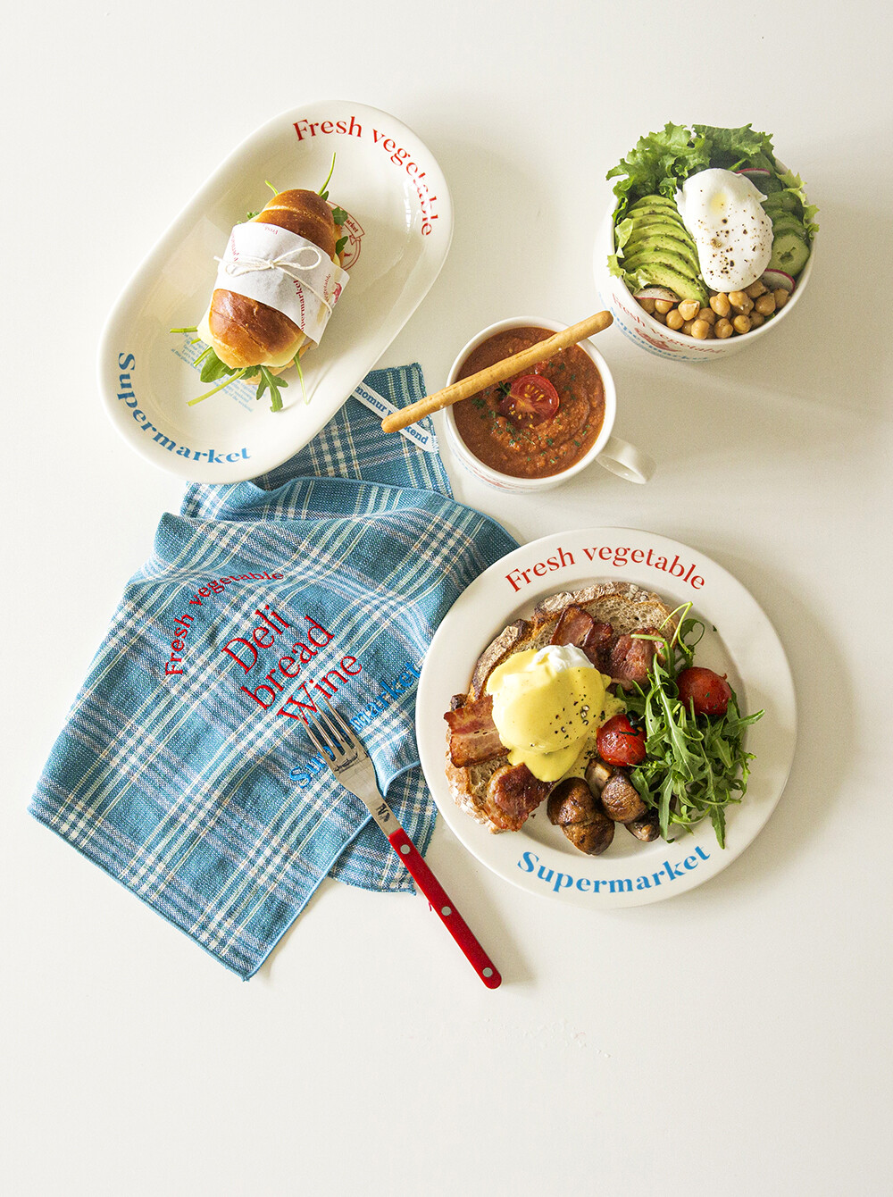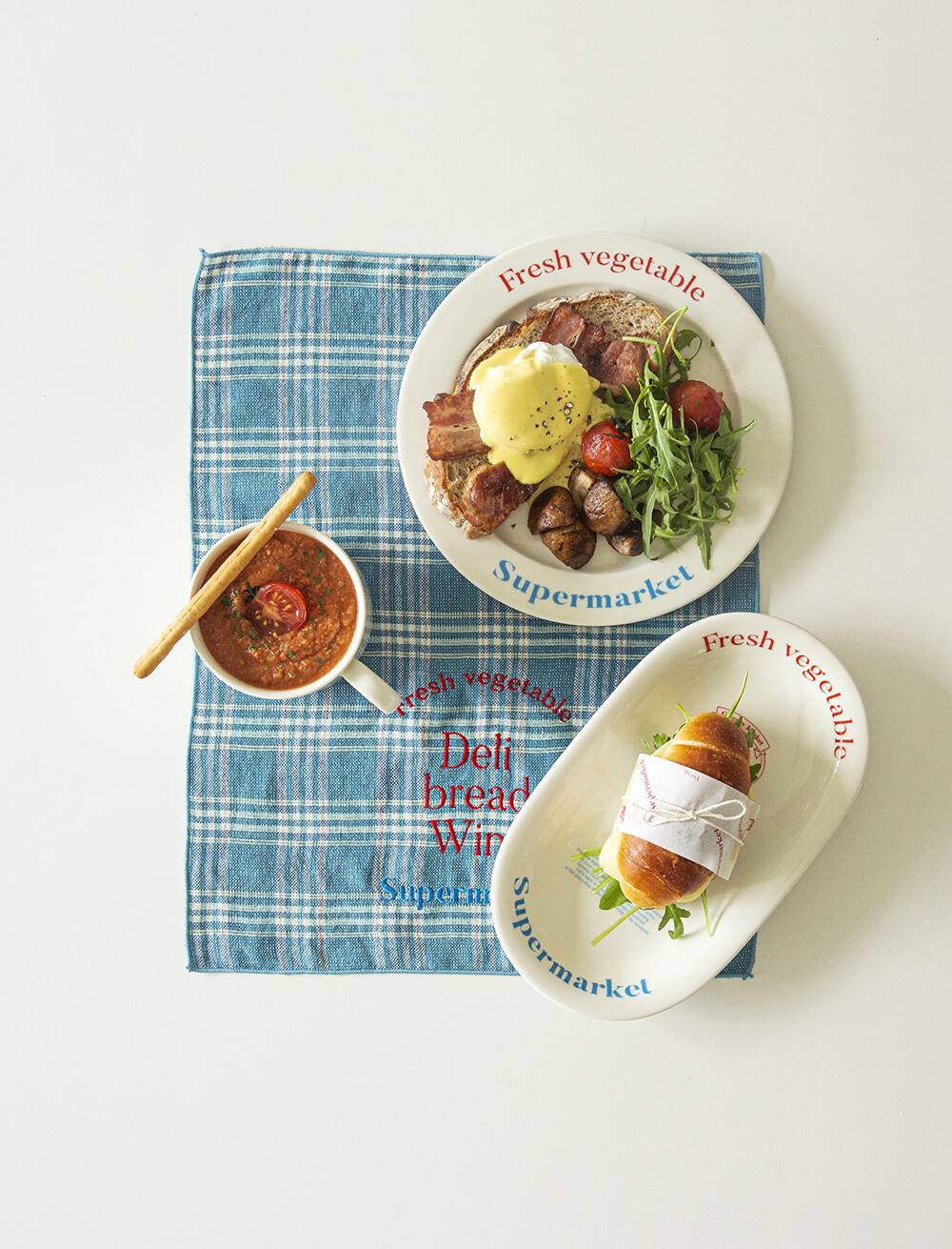 퀄리티 높은 리투아니아 린넨을 사용하였으며, 슈퍼마켓 라인의 메인 그래픽 요소가 자수처리 되었습니다. 스트라이프, 체크 총 2가지 디자인으로 구성 되어 있습니다. 슈퍼마켓 라인의 모든 패브릭 상품은 슈퍼마켓 종이봉투에 포장해서 출고됩니다.(색상 랜덤)