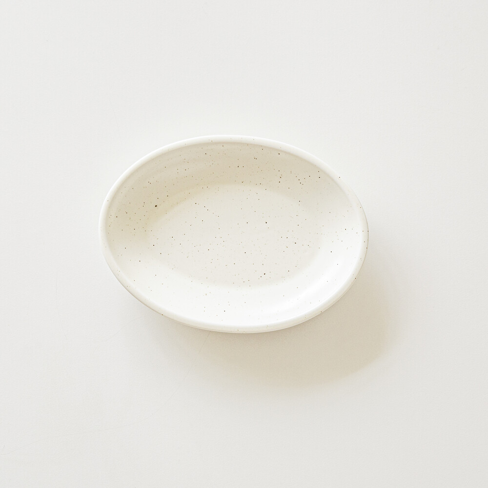 차분하고 서정적인 무드를 연출하는 아이보리 유약을 사용한 도자기입니다. 아이보리 컬러 바탕에 은은한 점들이 차분하고 질리지 않는 분위기를 연출합니다. 다양한 용도로 사용가능한 오발 플레이트입니다. 오발 형태로 약간의 깊이감이 있는 그릇입니다. 브런치, 한식 요리 등 다양한 음식을 담을 수 있는 실용성 높은 그릇입니다.