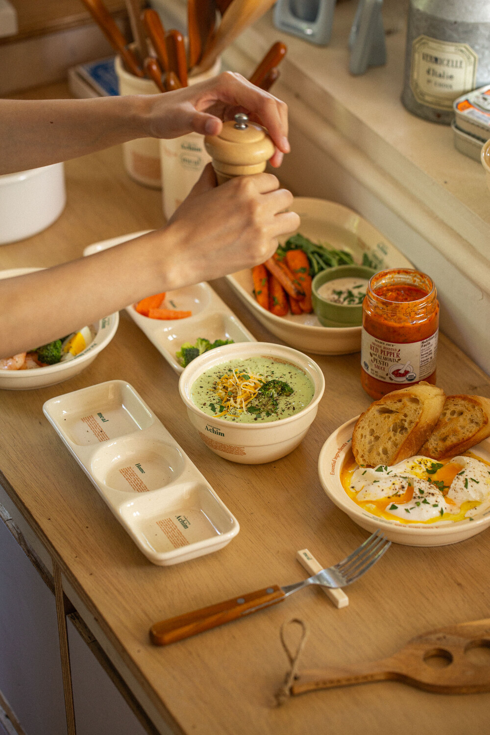 매일 아침의 따뜻한 식사에서 모티브를 얻는 제품으로 밥, 국, 수프, 요거트 등 다양한 음식을 담을 수 있는 실용적인 타입의 그릇입니다.