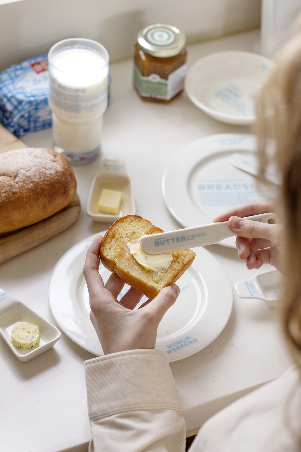 바쁘게 보내는 일주일, 그 속에서 우리는 주말 계획을 세웁니다. 친구와 카페 가기, OTT 정주행, 반려동물과 산책하기 그리고 먹고 싶었던 빵으로 아침 시작하기. 기다렸던 주말 시간을 위한 플래닝에서 모티브를 가져온 시리즈입니다. 토스트와 버터로 시작하는 우리의 주말을 기대합니다.