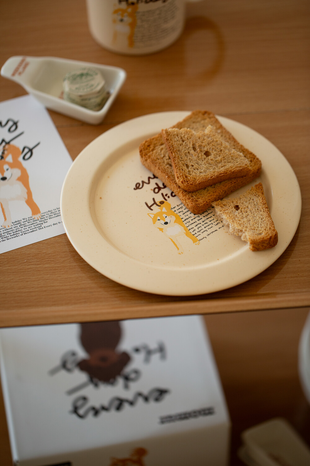 귀여운 강아지 일러스트가 들어간 원형 플레이트입니다.