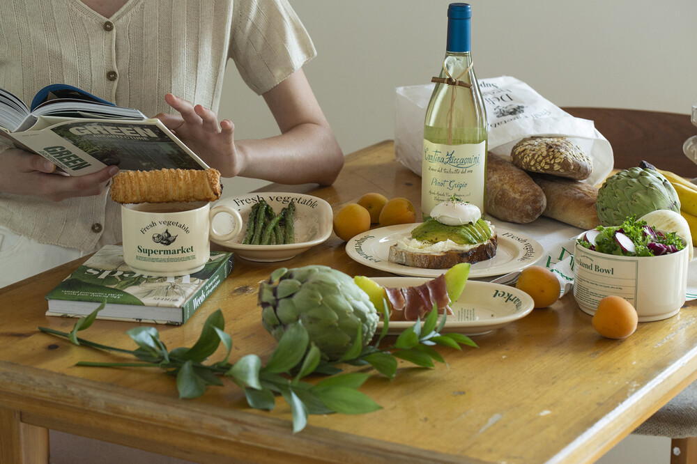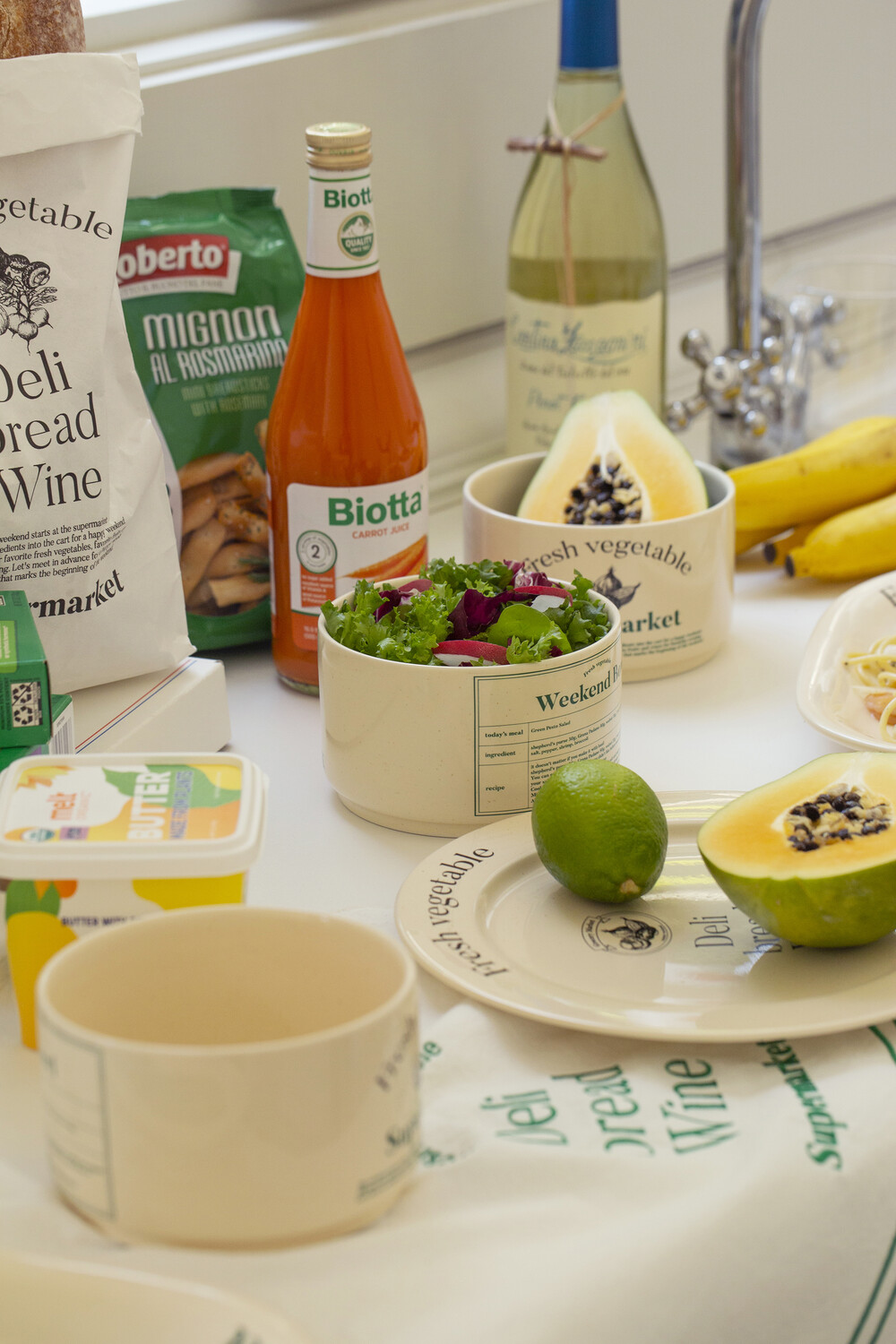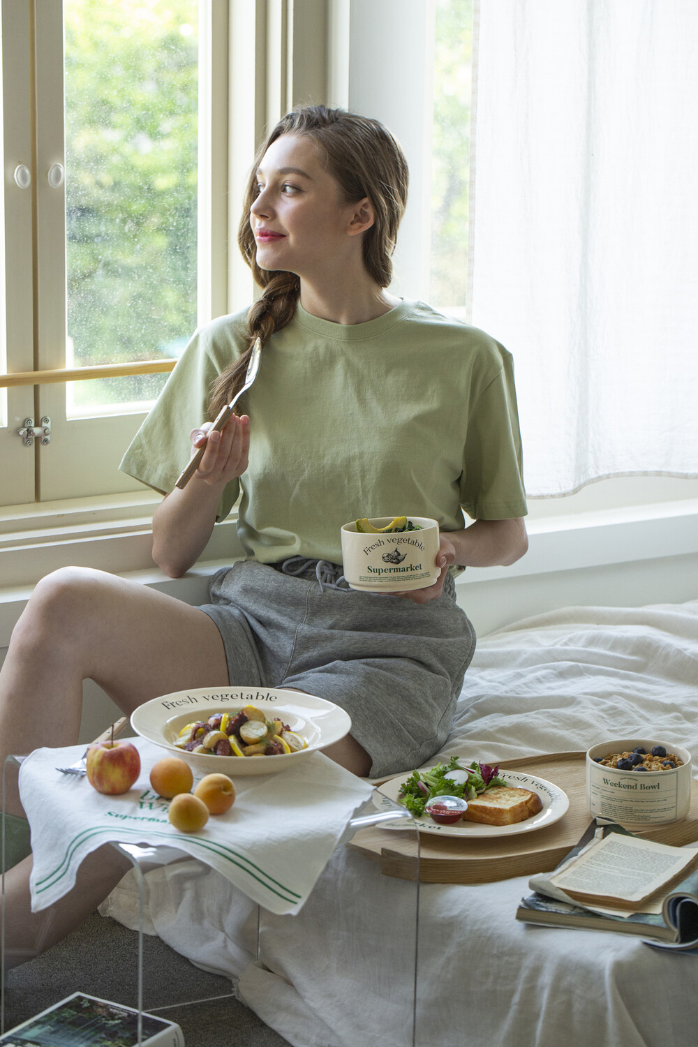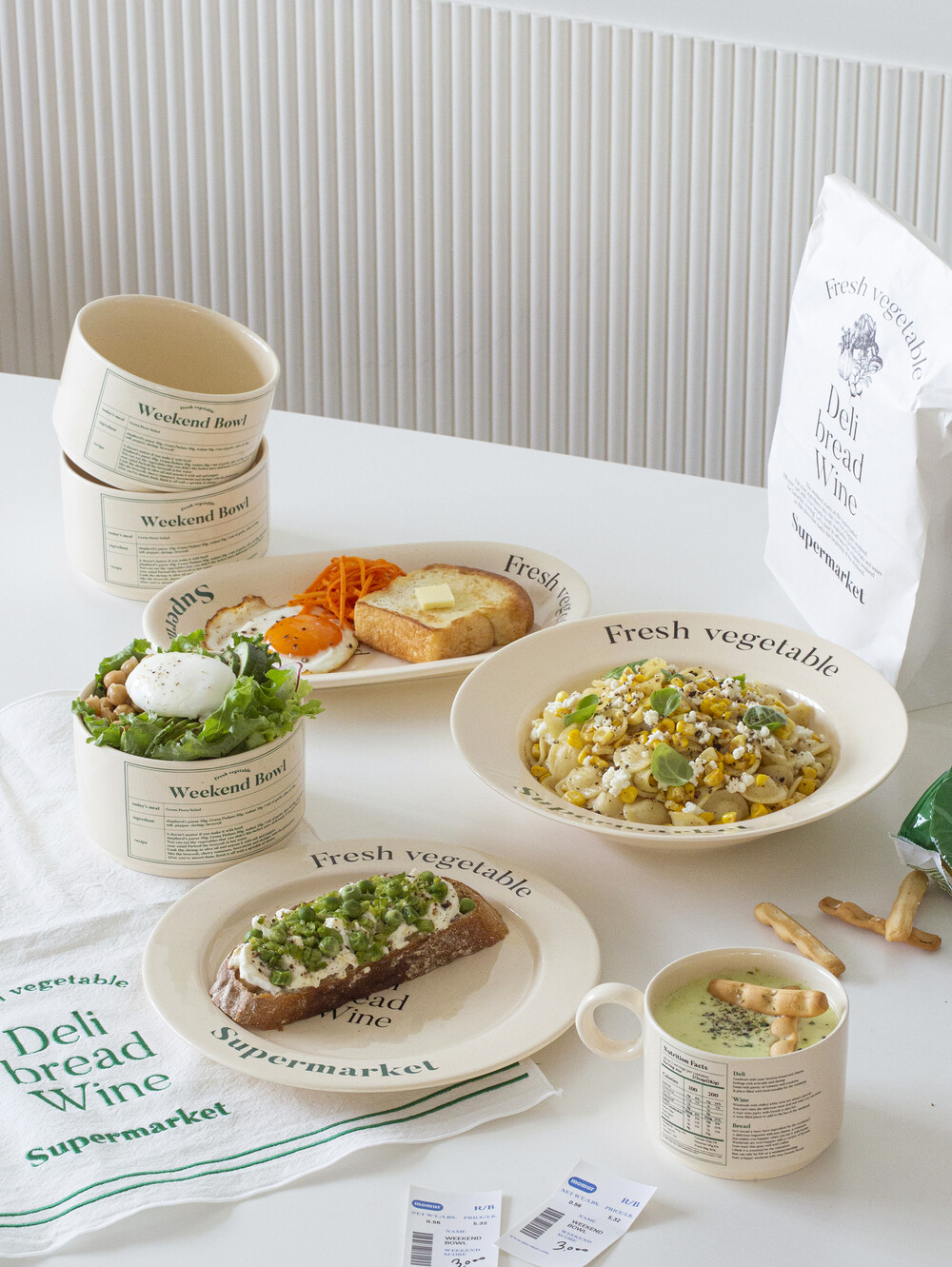 샐러드, 씨리얼, 요거트, 포케 등 다양한 음식을 담을 수 있는 실용적인 디자인의 볼입니다. 그릇 앞면에는 슈퍼마켓 라인의 메인 그래픽이 반영되어 있으며, 뒷면에는 위켄드볼 레시피가 반영되어 있습니다. 주말 나를 위한 한그릇의 건강을 채워 보세요.