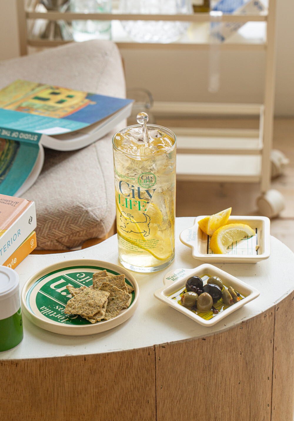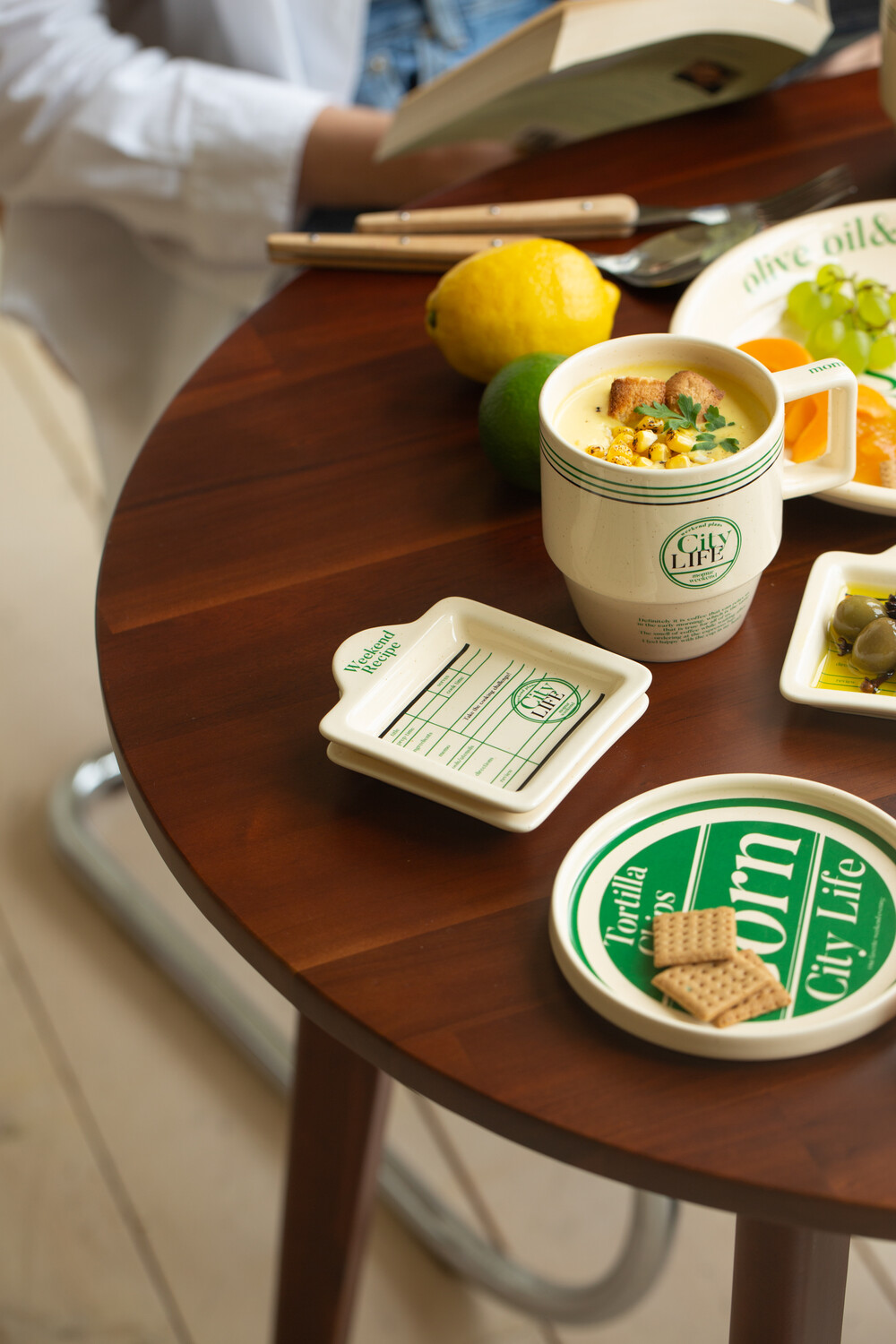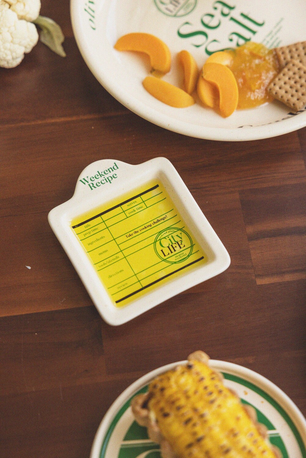 각종 소스, 올리브, 올리브 오일 등을 담기 좋은 미니 플레이트입니다. 시티라이프의 메인 플레이트와 함께 플레이팅 해보세요. 빈티지한 버터색 유약에 시티라이프 그래픽 요소가 들어간 플레이트입니다.