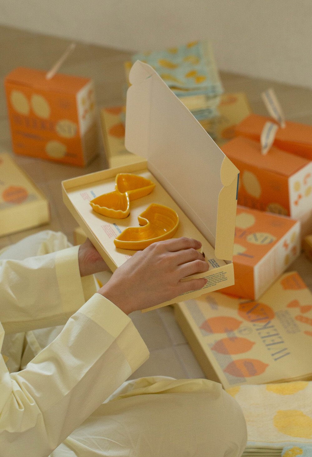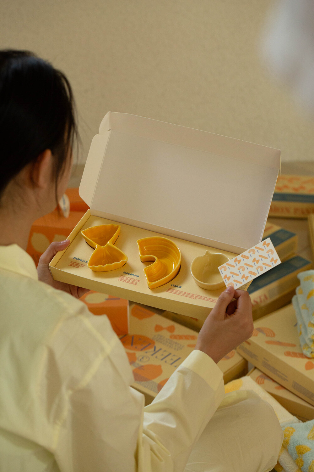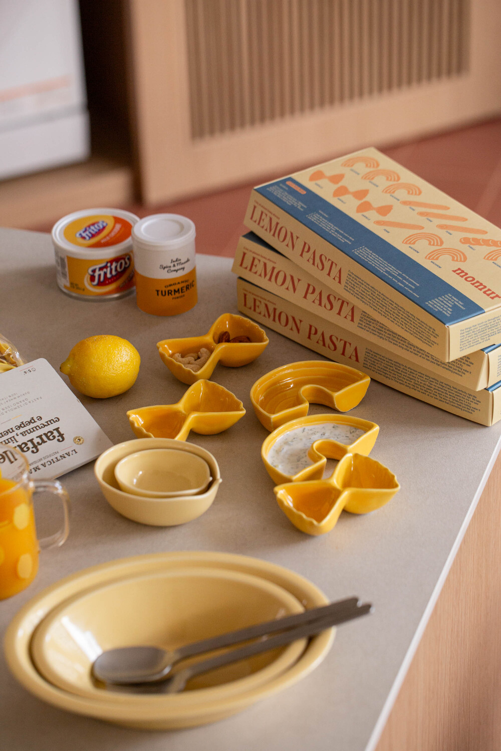 [ 레몬파스타 볼 3종 기프트 세트 ]  주말에 만나는 기분 좋아지는 음식에서 영감을 받은 시리즈로 레몬 파스타를 컨셉으로 전개한 도자기 그릇 3종 기프트 세트입니다. 마카로니면과 파르펠레면 모양의 볼과 레몬 모양의 볼로 총 3종이 함께 구성되어 있습니다. 옐로우 컬러가 포인트를 줄 수 있는 제품들로 테이블 위에 포인트 그릇으로 추천하는 제품입니다. 파스타면 패키지에서 영감을 받은 전용 패키지에 담겨 출고 됩니다.  일상에 위트를 더할 수 있는 디자인으로 쉼과 즐거움을 전하고 싶은 분에게 기프트 상품으로도 추천합니다. 마카로니면 볼 1개, 파르펠레면 볼 1개, 레몬볼 1개로 총 3개의 상품이 전용 패키지에 포장되어 출고됩니다.  구성 : 파르펠레면 볼 1p, 마카로니면 볼 1p, 레몬볼 1p 사이즈 : 파르펠레면 9 x 6 x 3 / 마카로니면 10 x 6 x 3 / 레몬볼 6 x 8 x 3  [사용 안내] 도자기 제품은 전자레인지과 식기세척기 사용 가능합니다. 오븐은 사용시 일부 색이 변할 수 있어 추천하지는 않습니다. (180도 10분 정도 내의 짧은 시간 사용은 가능하나 200도 이상에서 10분 이상 사용은 추천하지 않습니다.) 제조 : korea