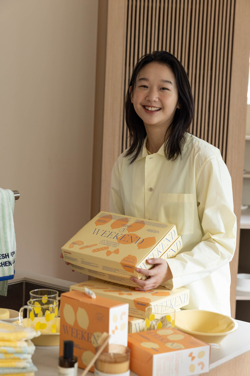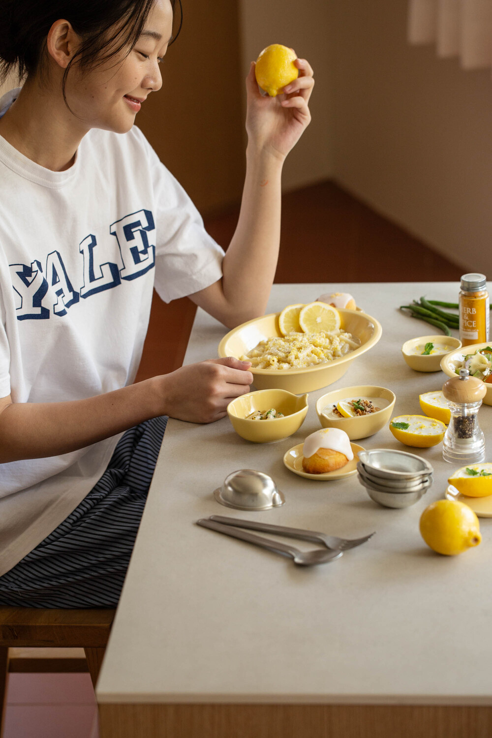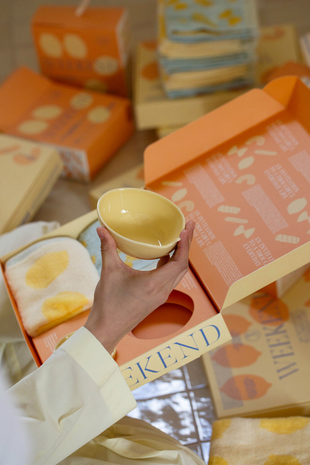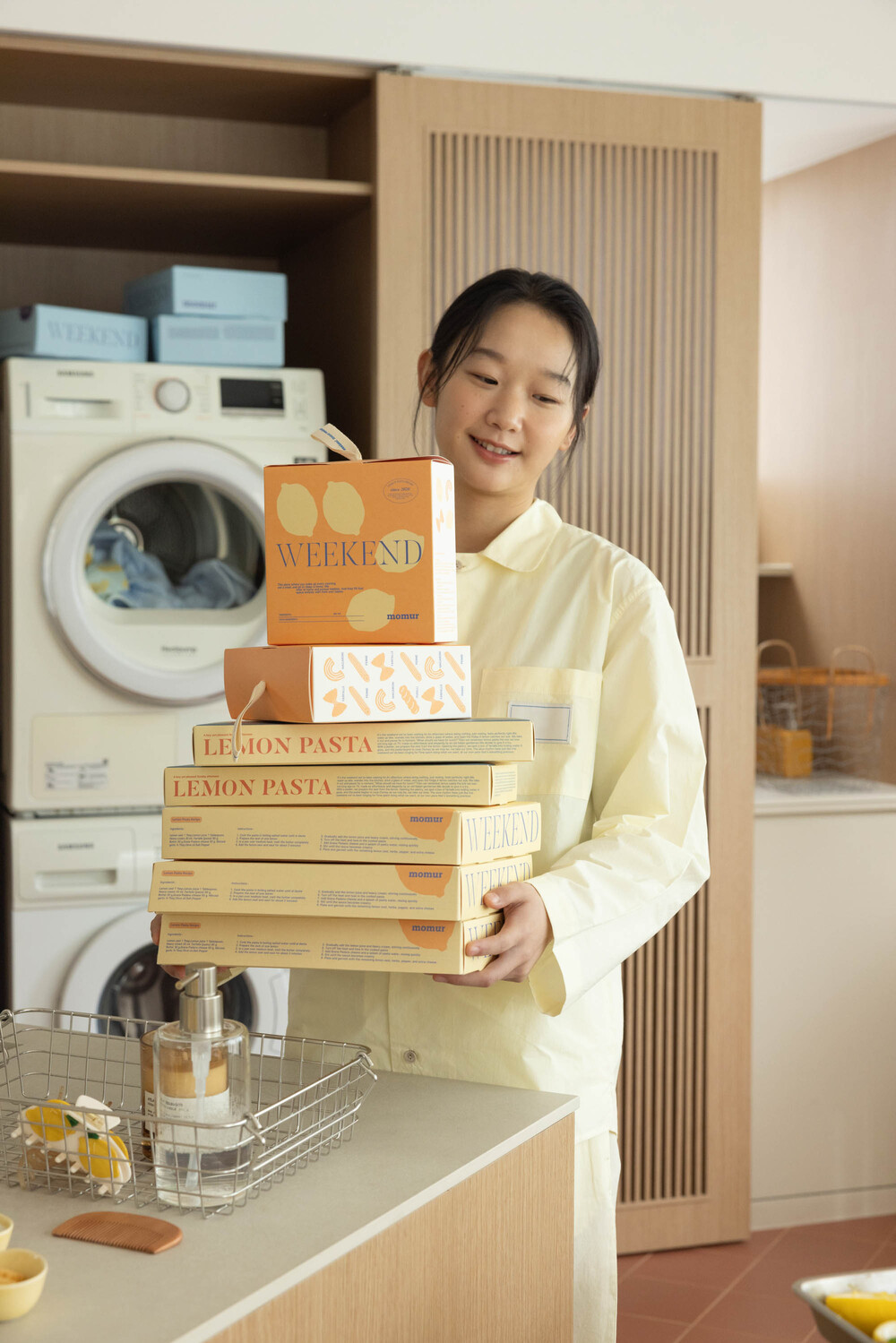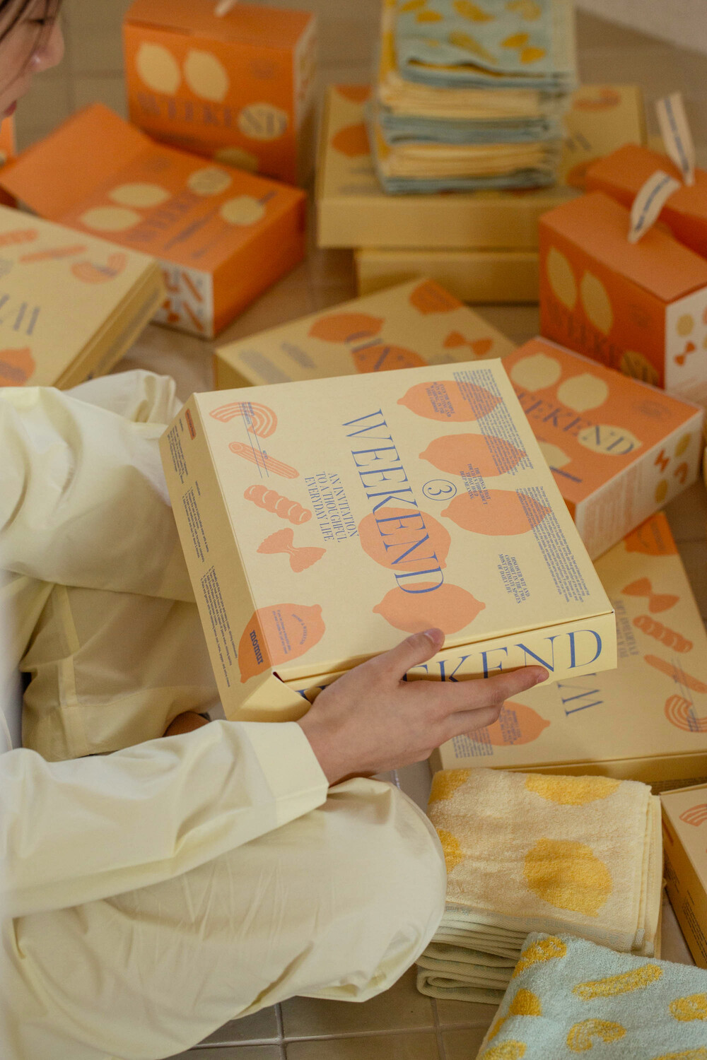 주말에 만나는 기분 좋아지는 음식에서 영감을 받은 시리즈로 레몬 파스타를 컨셉으로 타월과 도자기 제품들에 디자인 요소를 담았습니다. 레몬색 바탕에 레몬 패턴이 들어간 레몬 핸드타월과 민트빛 스카이블루 바탕에 파스타면들이 패턴으로 들어간 파스타 핸드타월과 다용도 레몬볼 도자기가 함께 구성된 기프트 상품입니다.