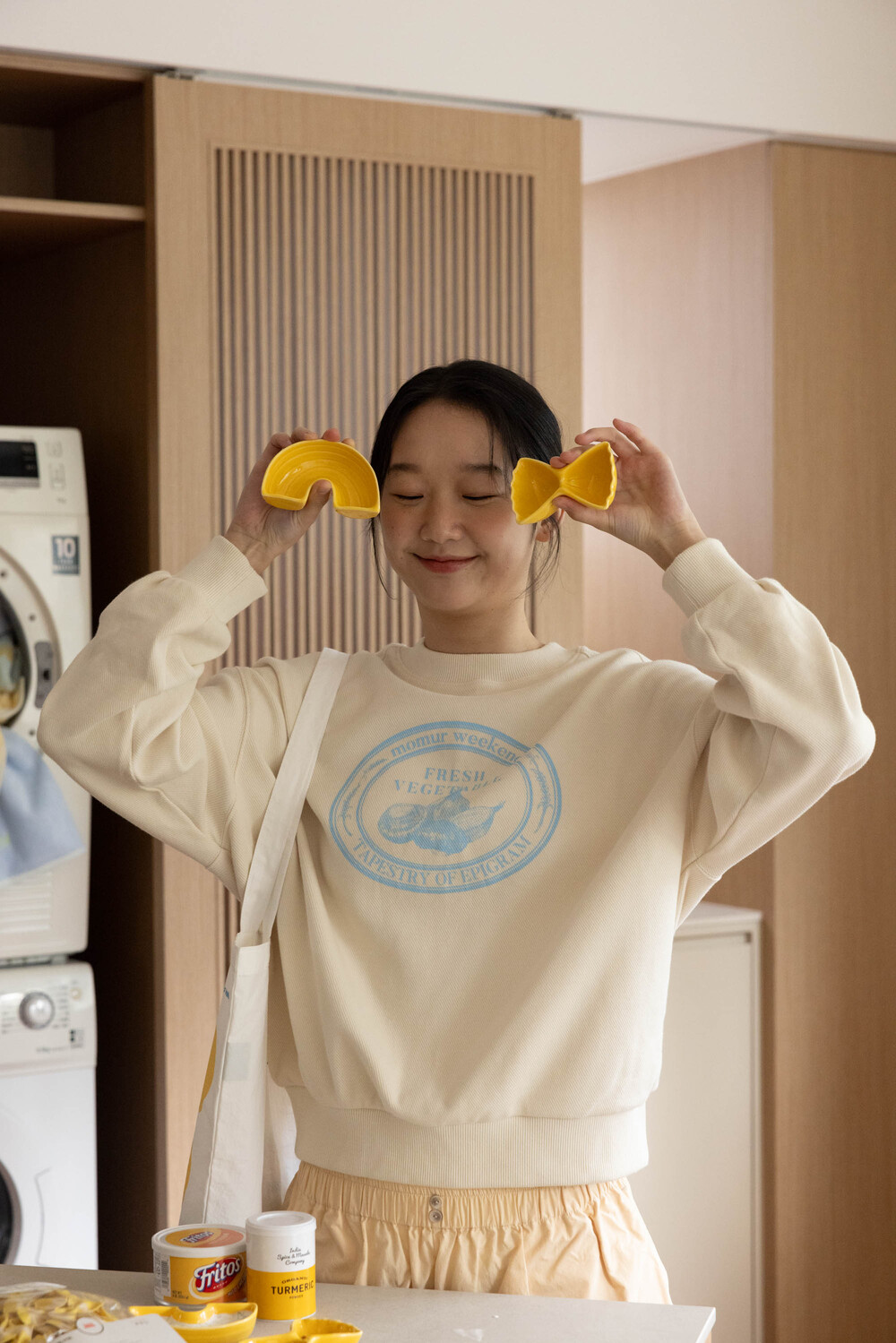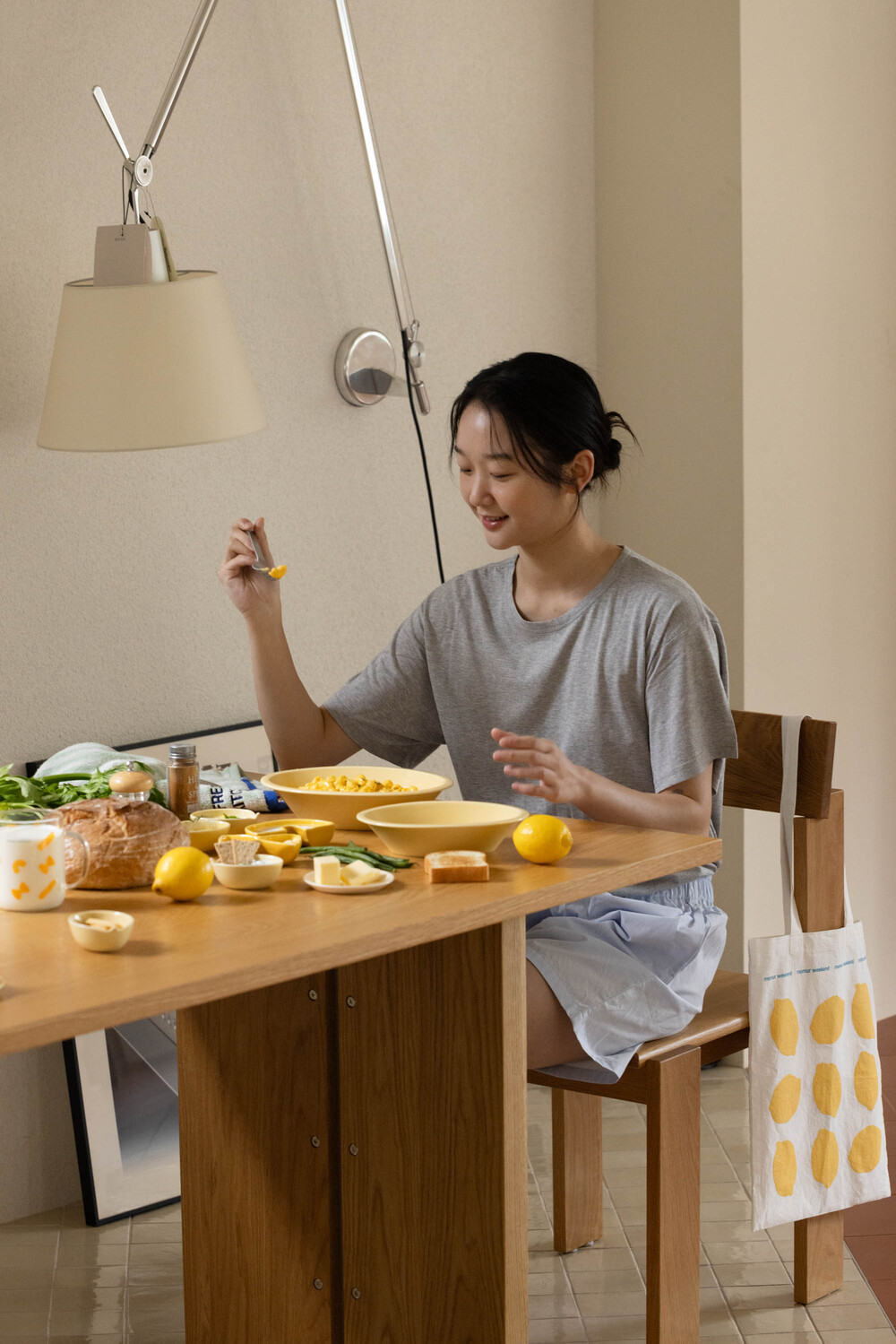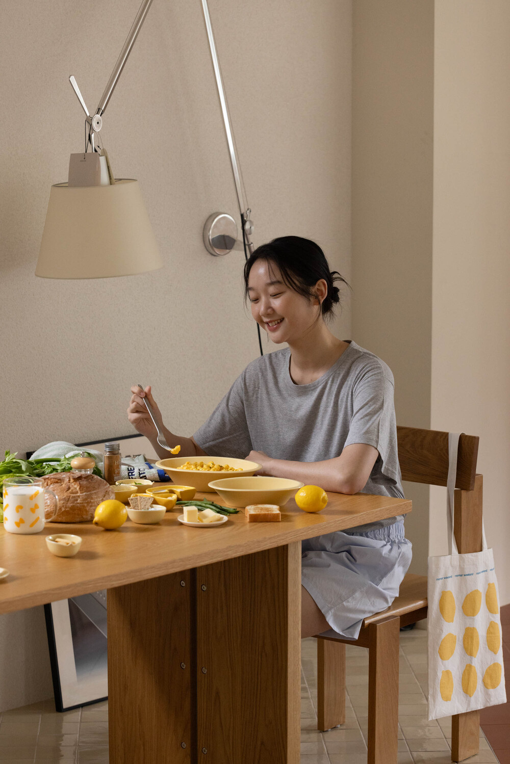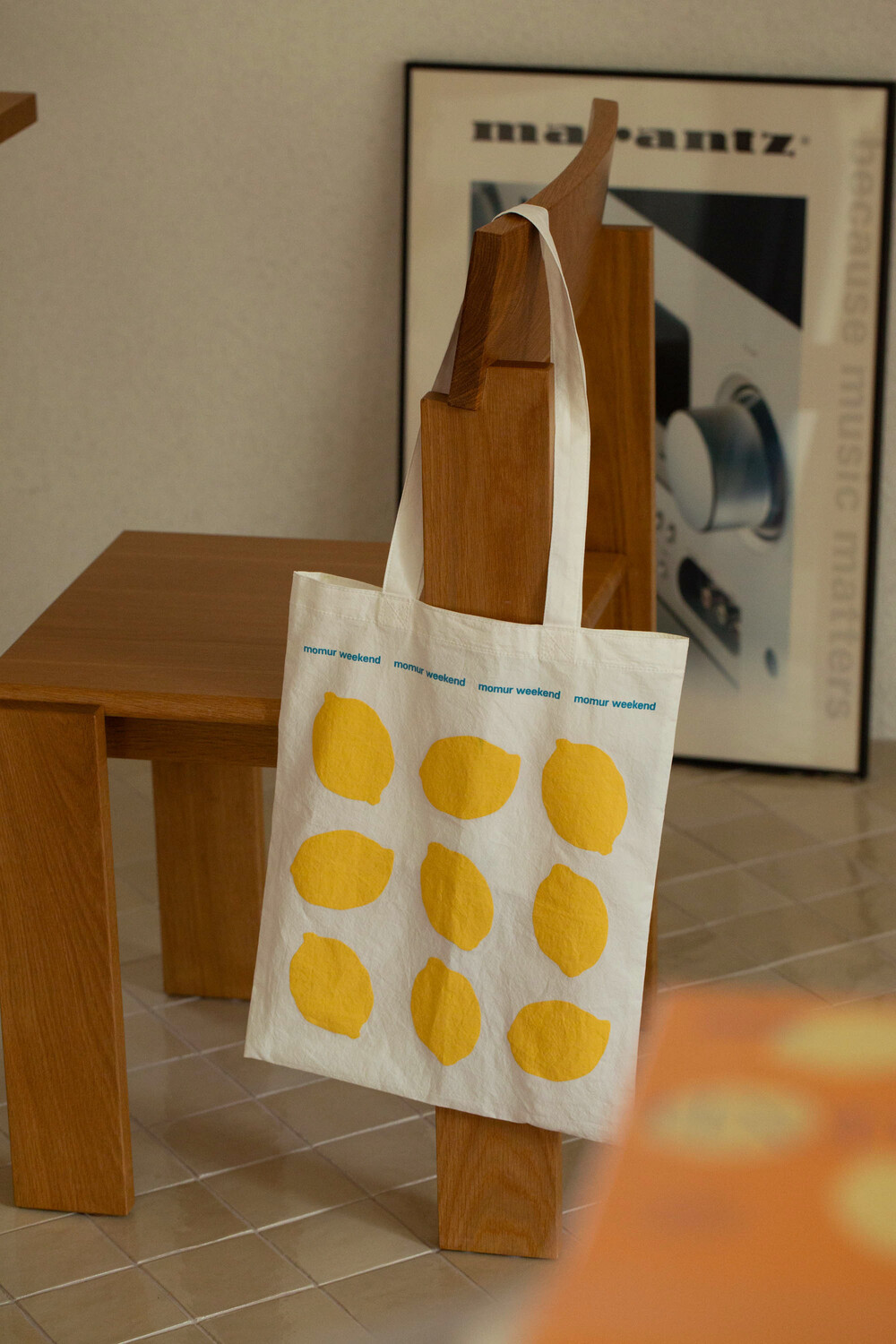 [ 레몬파스타 가방 ]  주말에 만나는 기분 좋아지는 음식에서 영감을 받은 시리즈로 레몬 파스타를 컨셉으로 전개한 시리즈입니다. 고밀도 화이트 원단에 레몬 패턴이 반복적으로 들어간 가방입니다. 데일리도 사용할 수 있는 제품이며, 고밀도 원단을 사용하여 일반 화이트 에코백보다 감도가 높은 제품입니다.  패브릭 가방은 오염이 되었을 경우, 전체 세탁보다는 해당 부분만 중성 세제로 조심스럽게 세척하는 걸 추천합니다.  구성 : 가방 1개 사이즈 : 가로 30cm 세로 38cm (끈길이 29) 제조 : korea