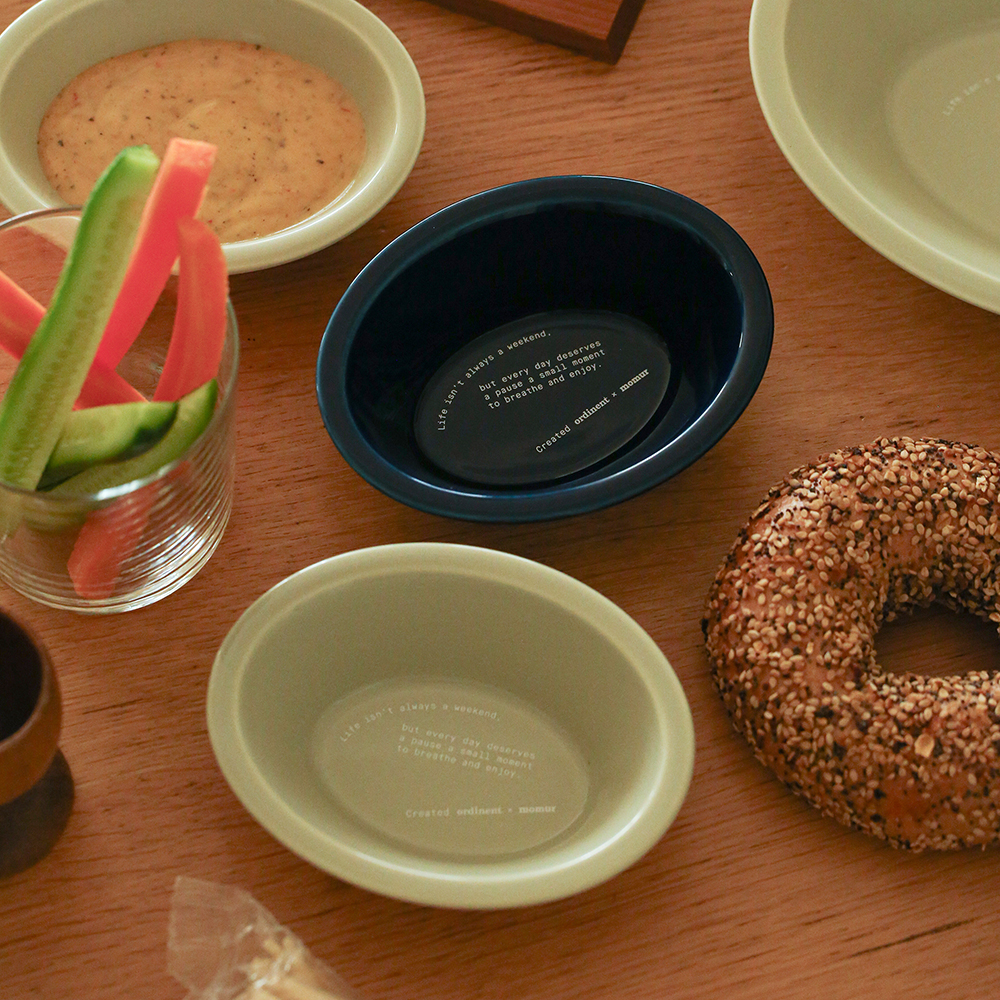 공간에 감도와 편안함을 제안하는 오디넌트와 테이블 위에 주말의 즐거움을 제안하는 모머위켄드의 협업 컬렉션입니다. 깊은 타원볼 쉐잎의 미니 오발볼입니다. 다양한 스넥, 소스 등을 담을 수 있는 제품입니다. 오디넌트와 모머위켄드의 협업 그래픽이 반영된 제품으로 네이비와 민트 컬러로 구성되어 있습니다. 구성 : 오발볼 S 1개 컬러 : 네이비, 민트 사이즈 : 가로 12.5 세로 10 높이 4 [사용 안내] 도자기 제품은 전자레인지과 식기세척기 사용 가능합니다. 오븐은 사용시 일부 색이 변할 수 있어 추천하지는 않습니다. (180도 10분 정도 내의 짧은 시간 사용은 가능하나 200도 이상에서 10분 이상 사용은 추천하지 않습니다.)