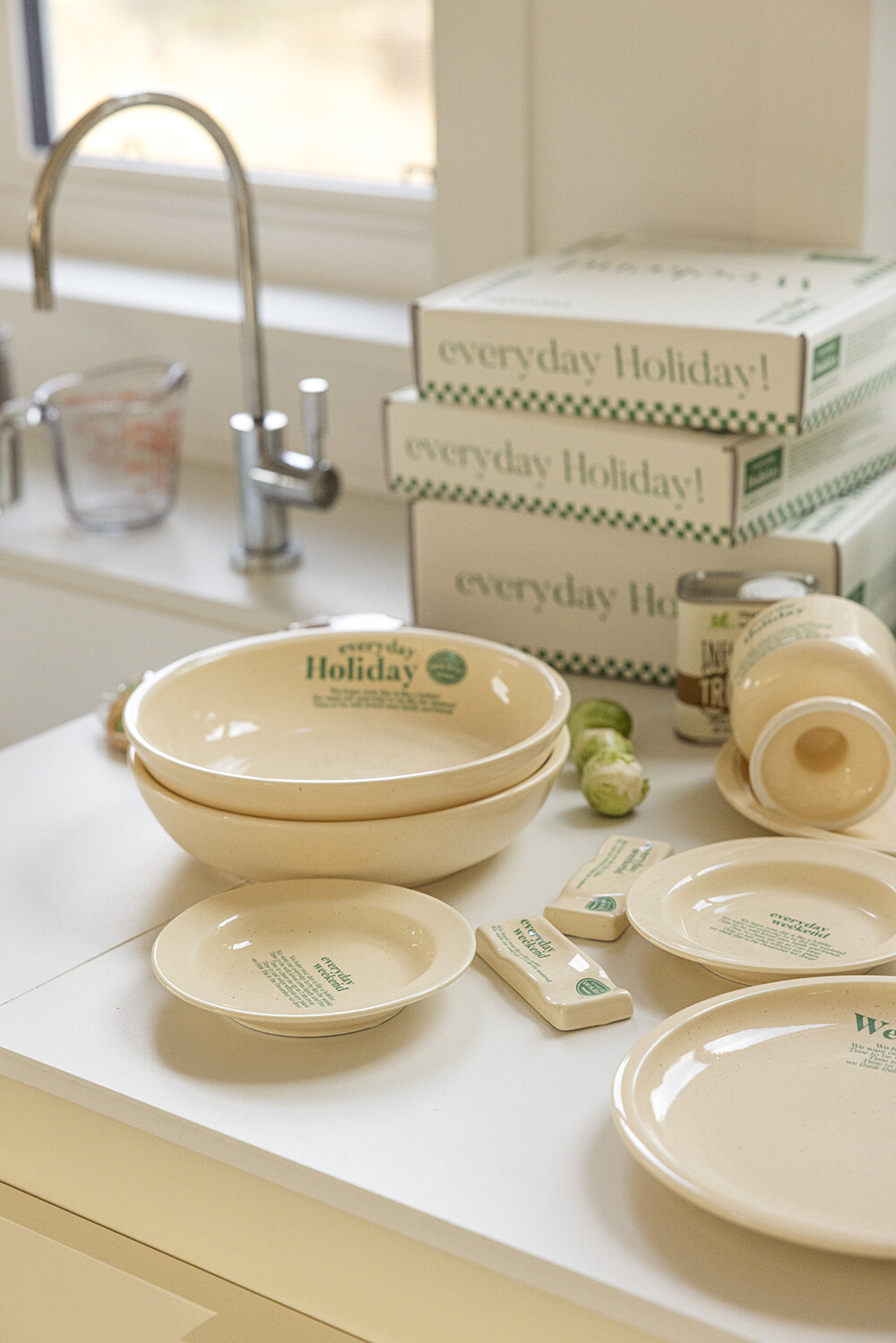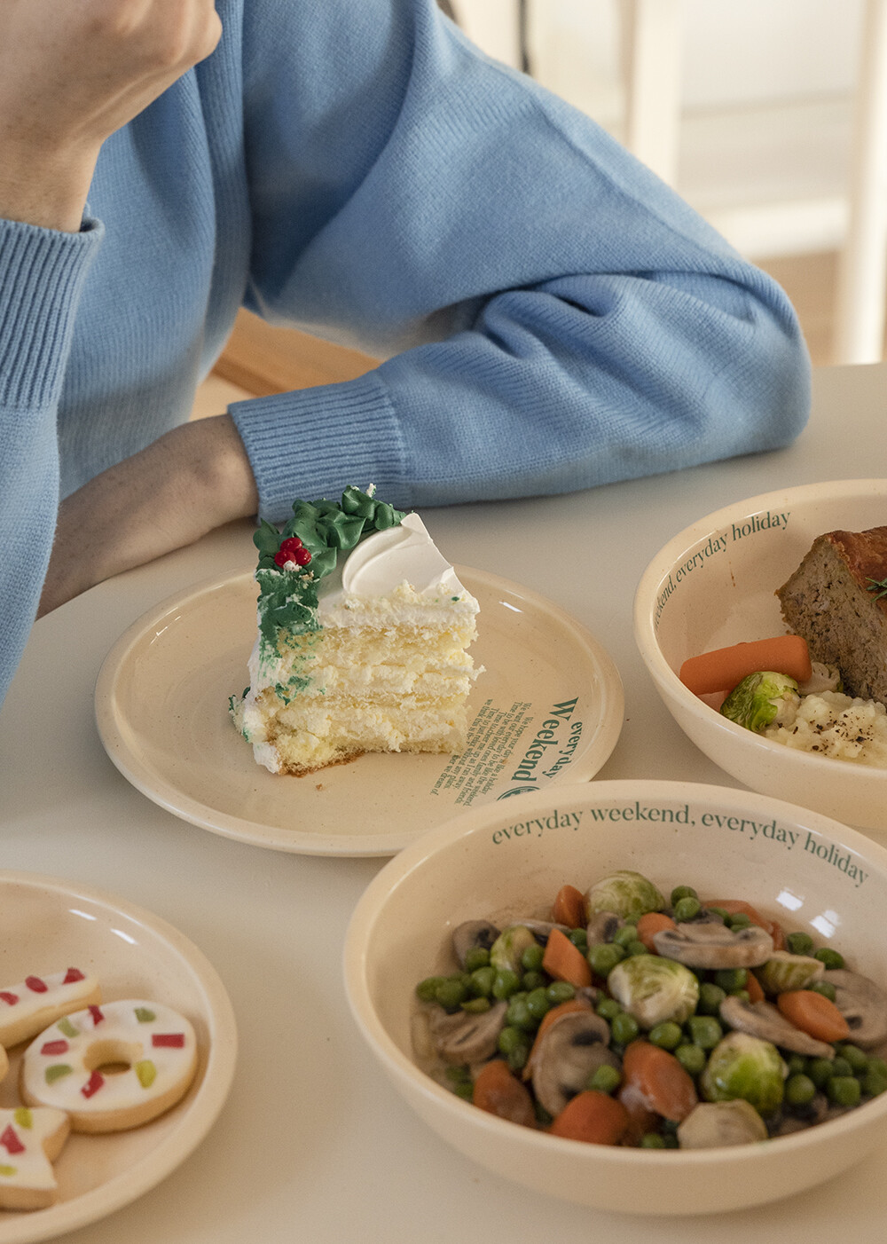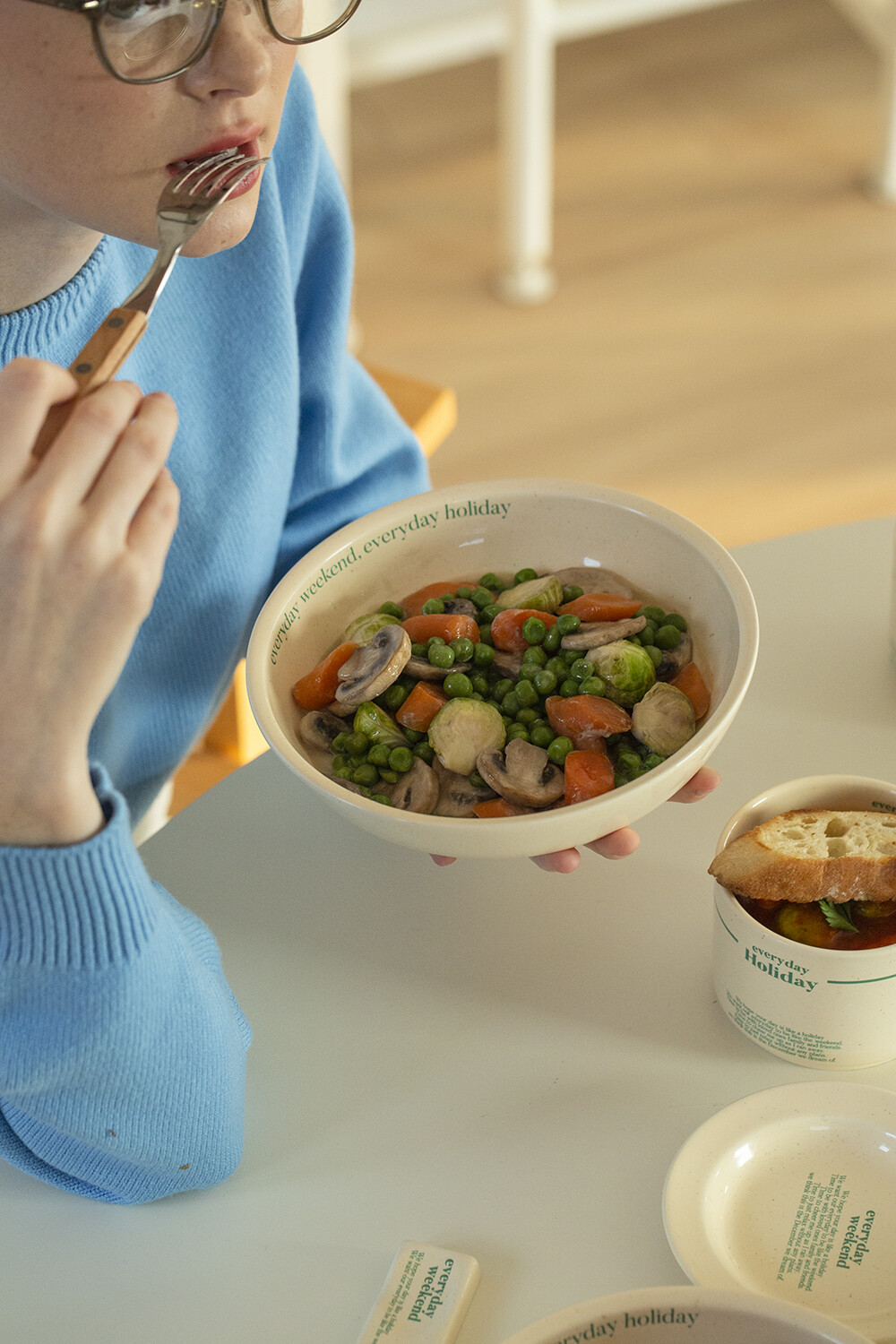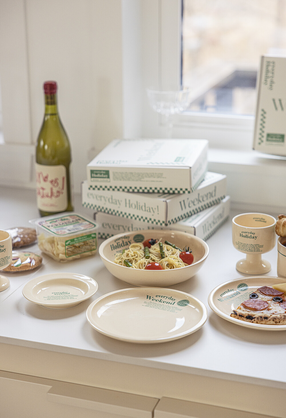 파스타, 샐러드, 밥 등 다양한 음식을 담을 수 있는 깊은 타입의 볼입니다. 디자인 뿐만 아니라 활용도도 높이기 위해 고민을 하고 제작된 제품입니다. 기존 위켄드 2, 3의 버터 컬러 유약과 같은 유약을 사용했습니다. 기존 시리즈와도 같이 사용하기 좋은 제품입니다. 버터 컬러 유약에 그린 레터링이 반영된 제품입니다.