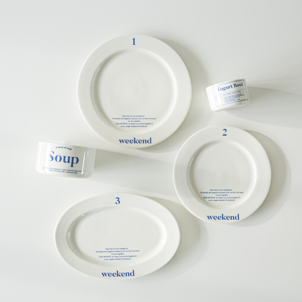 기본 원형 플레이트 L사이즈, S사이즈, 오발플레이트 수프볼, 요거트볼로 구성되어 있습니다.