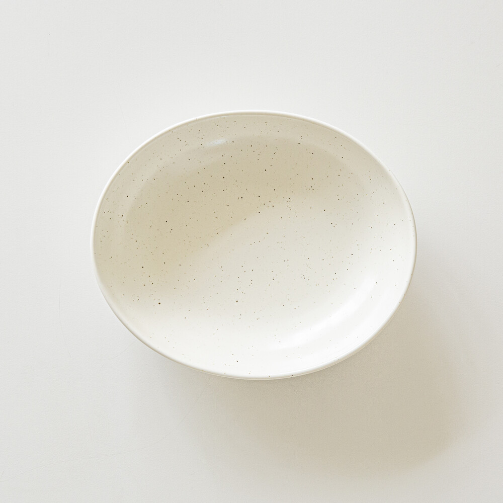 차분하고 서정적인 무드를 연출하는 아이보리 유약을 사용한 도자기입니다. 아이보리 컬러 바탕에 은은한 점들이 차분하고 질리지 않는 분위기를 연출합니다. 다양한 용도로 사용가능한 오발 플레이트입니다. 오발 형태로 깊이감이 있는 그릇입니다. 국물이 있는 자작한 한식요리부터 파스타까지 다양한 음식을 담을 수 있는 실용성 높은 그릇입니다.