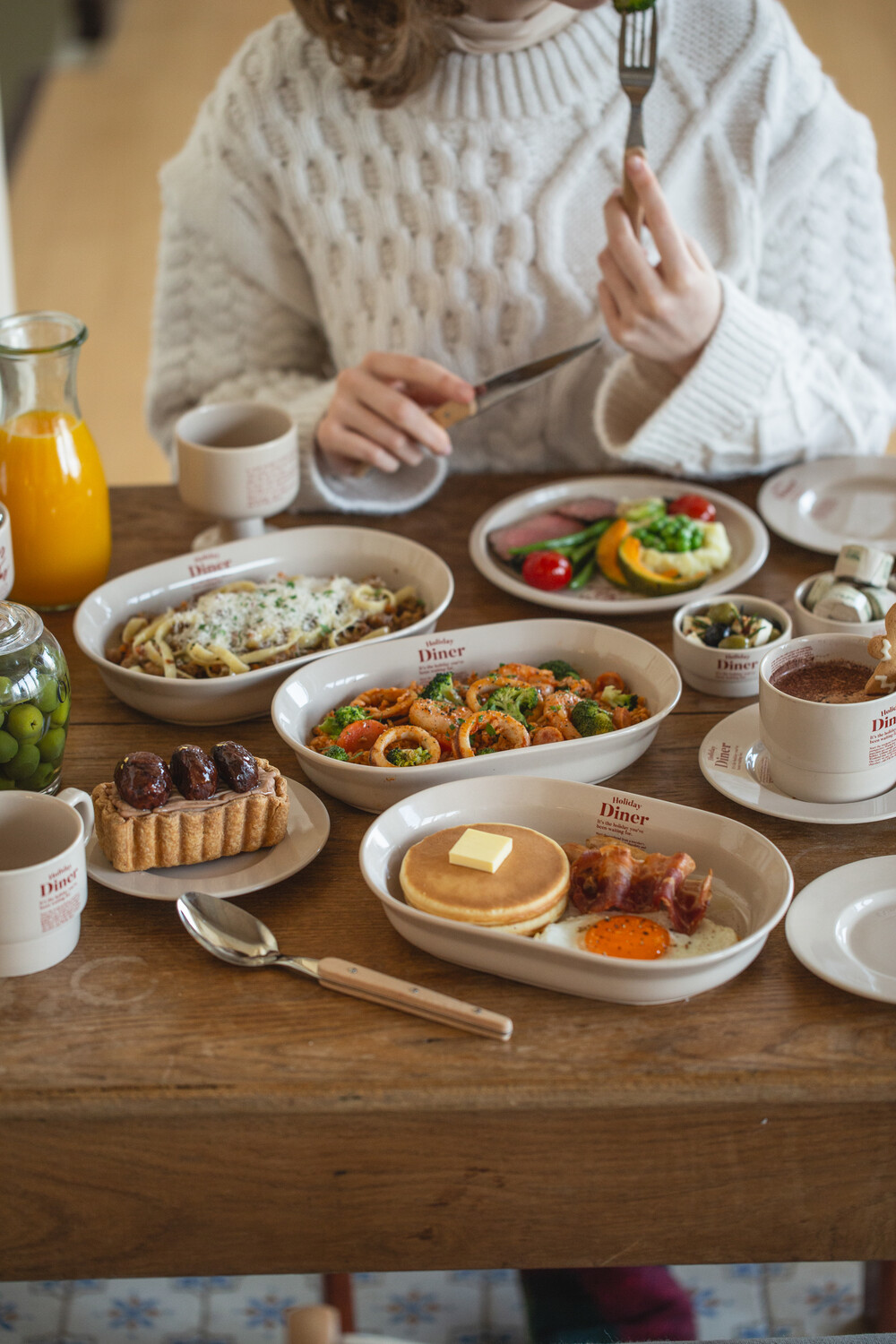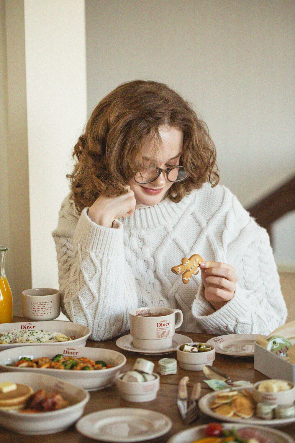 좋아하는 아침을 먹고, 24겹 초콜릿 케이크와 함께 우리들의 미뤄둔 이야기는 다이너를 가득 채웁니다. 우리의 겨울이 따뜻해지는 그곳, 홀리데이 다이너에서 영감을 받은 모머위켄드의 홀리데이 시리즈입니다.