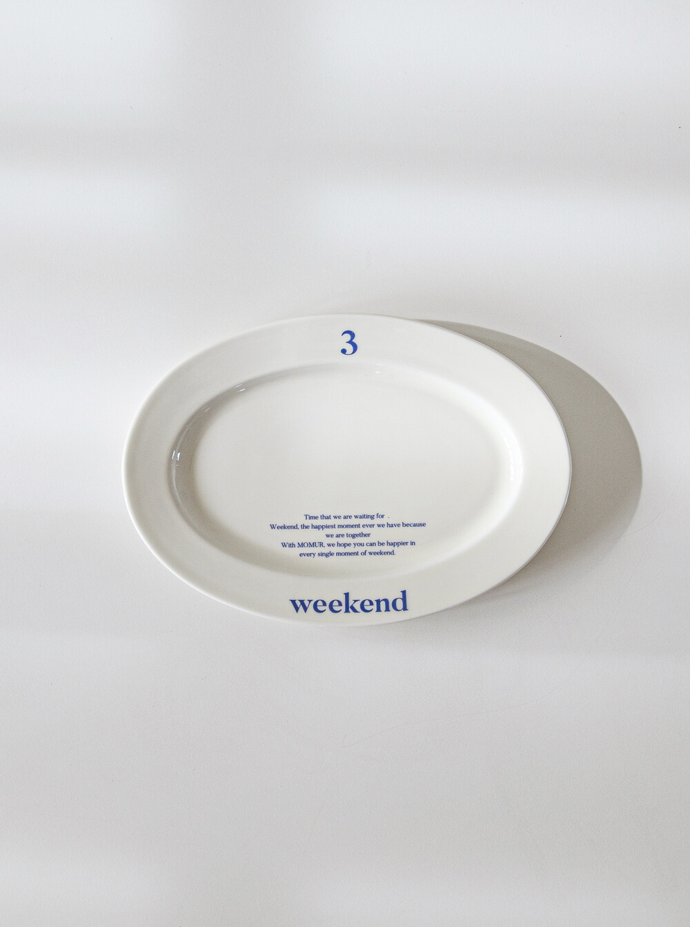 주말을 감성을 담은 모머위켄드의 두번째 시리즈입니다. 우리의 식탁이 늘 주말의 식탁처럼 행복하고 설레길 바라는 마음으로 제작되었습니다. 숫자 3이 쓰여져 있는 제품으로 기본 접시로 사용하기 좋은 오발 플레이트입니다. 따뜻해 보이는 아이보리 유약을 사용했습니다. 기본 모머위켄드의 토스트 플레이트와도 같은 사이즈로 함께 사용하기에도 좋습니다.