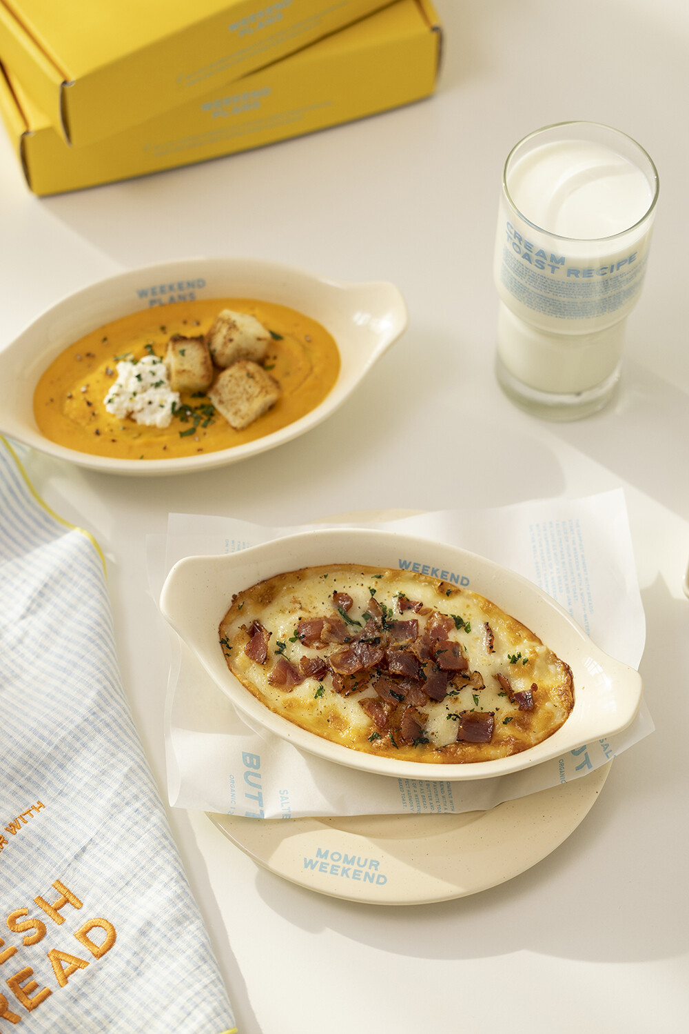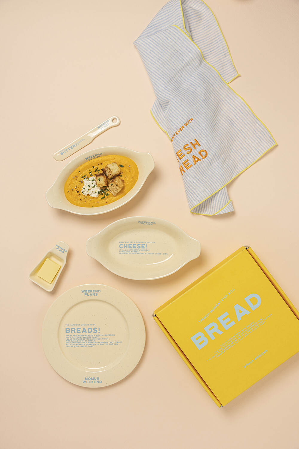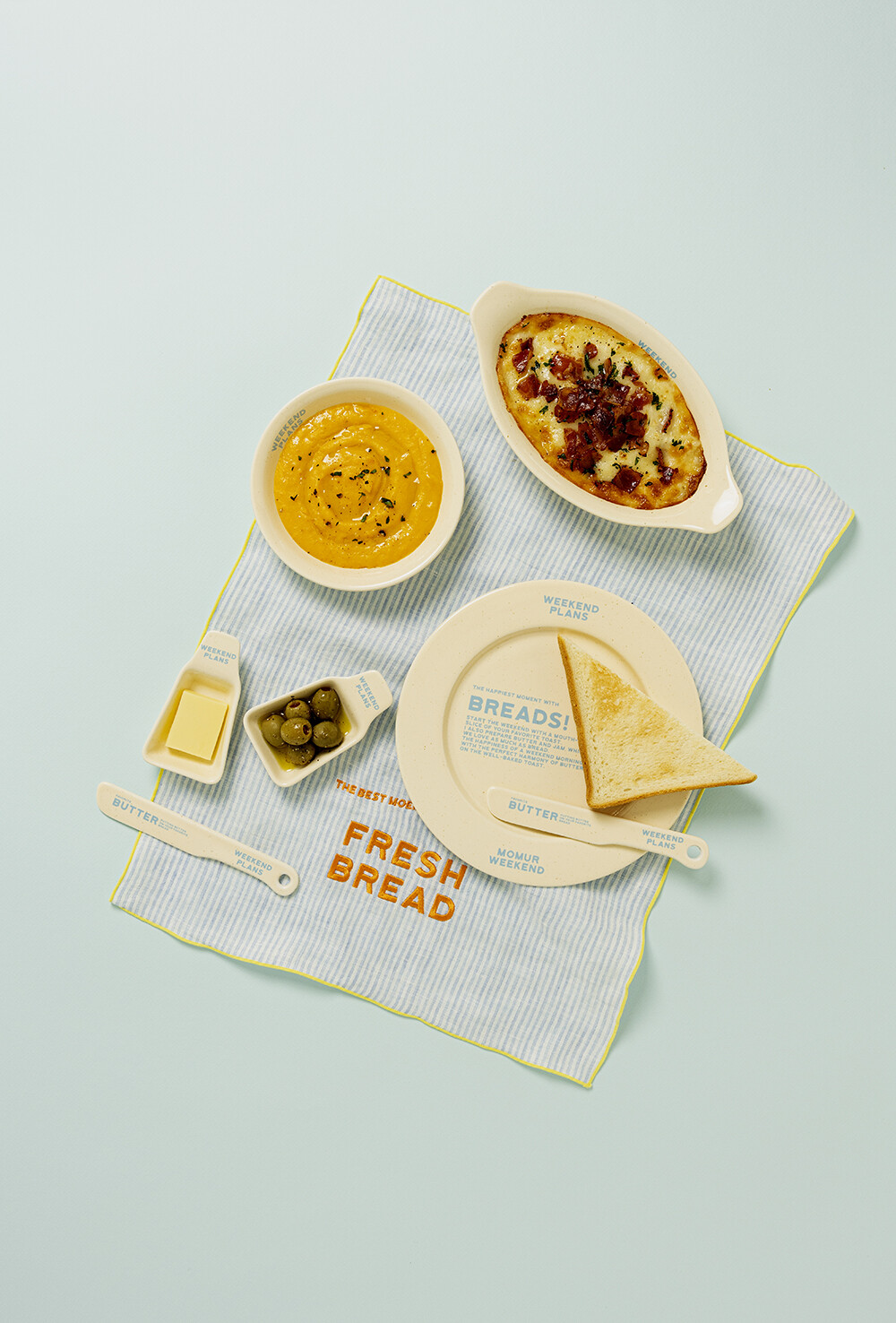 바쁘게 보내는 일주일, 그 속에서 우리는 주말 계획을 세웁니다. 친구와 카페 가기, OTT 정주행, 반려동물과 산책하기 그리고 먹고 싶었던 빵으로 아침 시작하기. 기다렸던 주말 시간을 위한 플래닝에서 모티브를 가져온 시리즈입니다. 토스트와 버터로 시작하는 우리의 주말을 기대합니다.