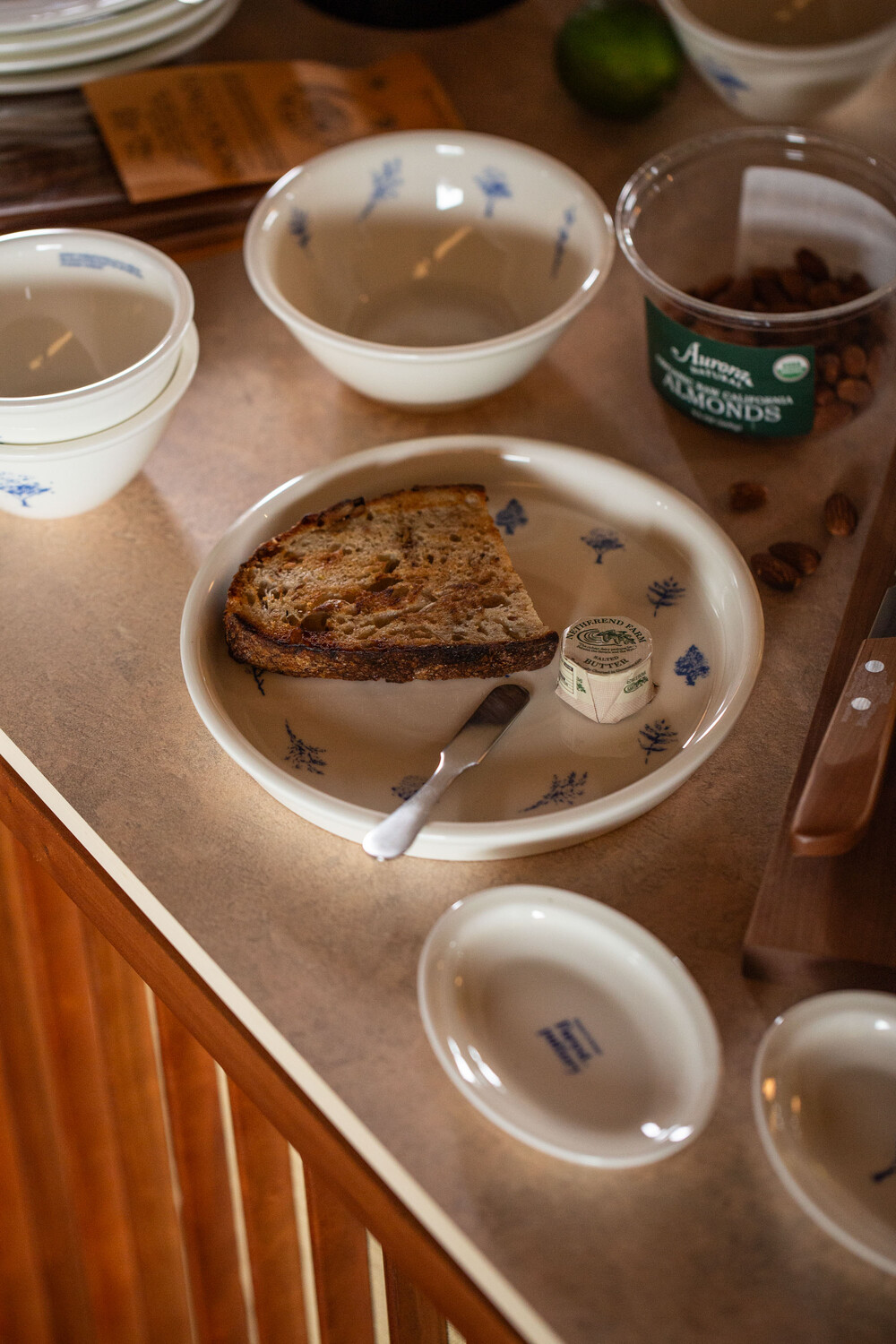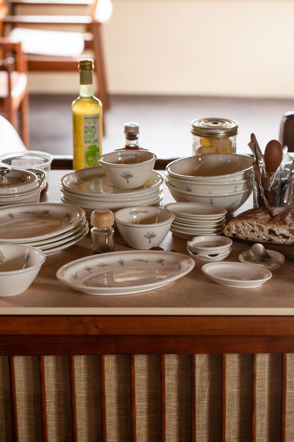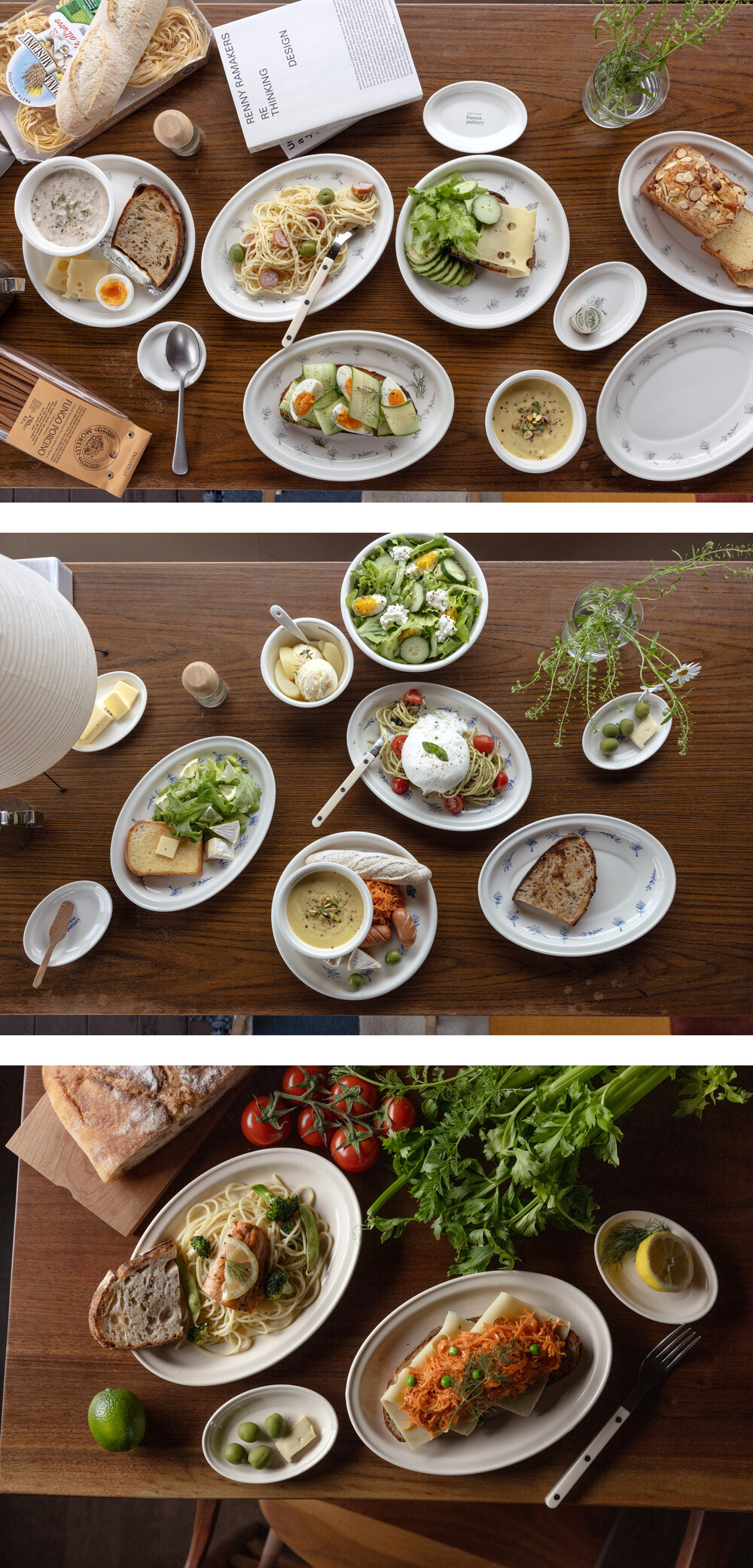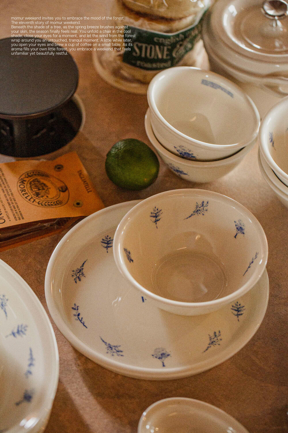 아이보리 컬러 유약에 블루, 그레이 드로잉이 들어간 두 가지 버전과 인쇄가 없는 버터 컬러로 구성되어 있습니다.