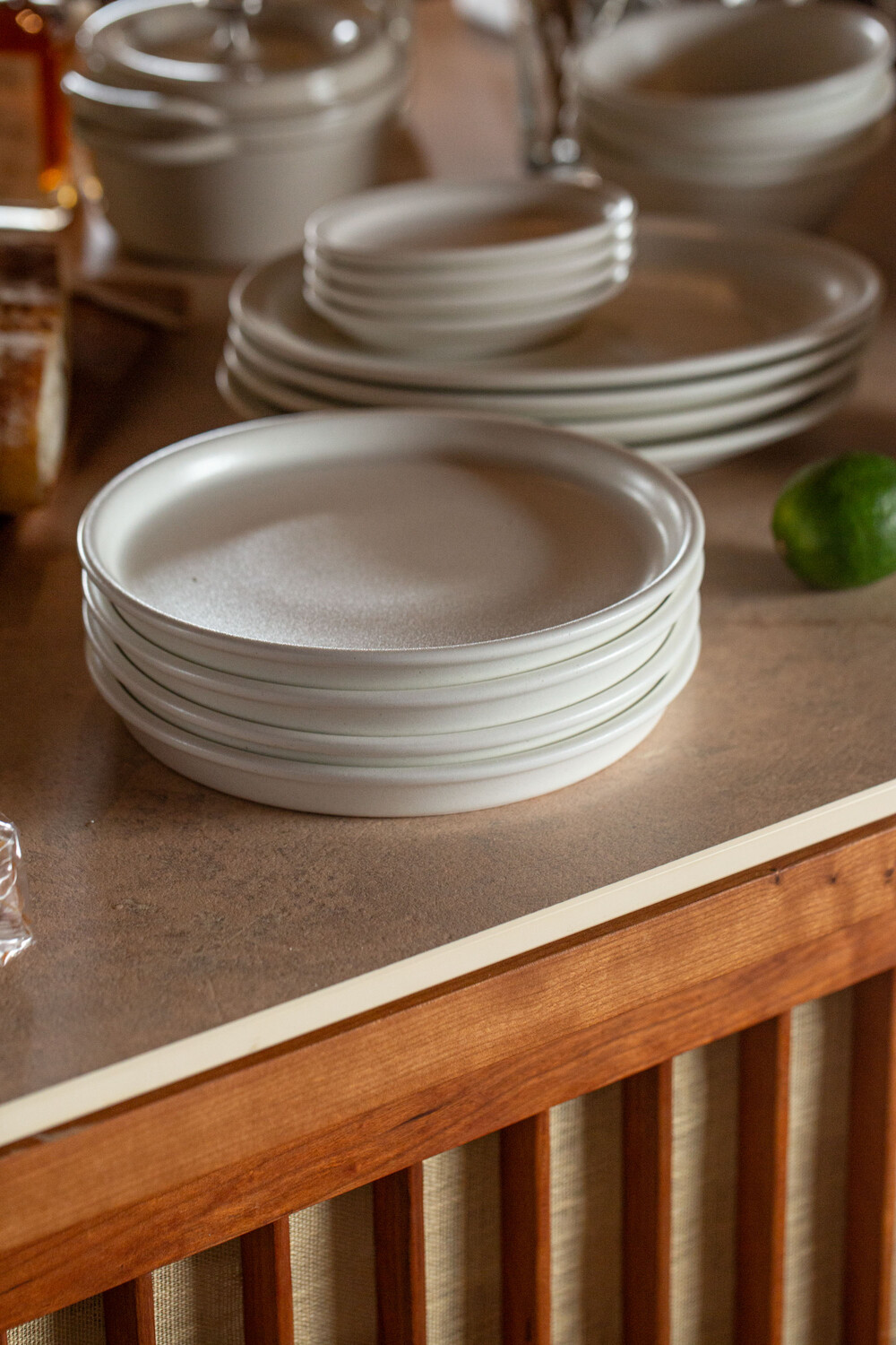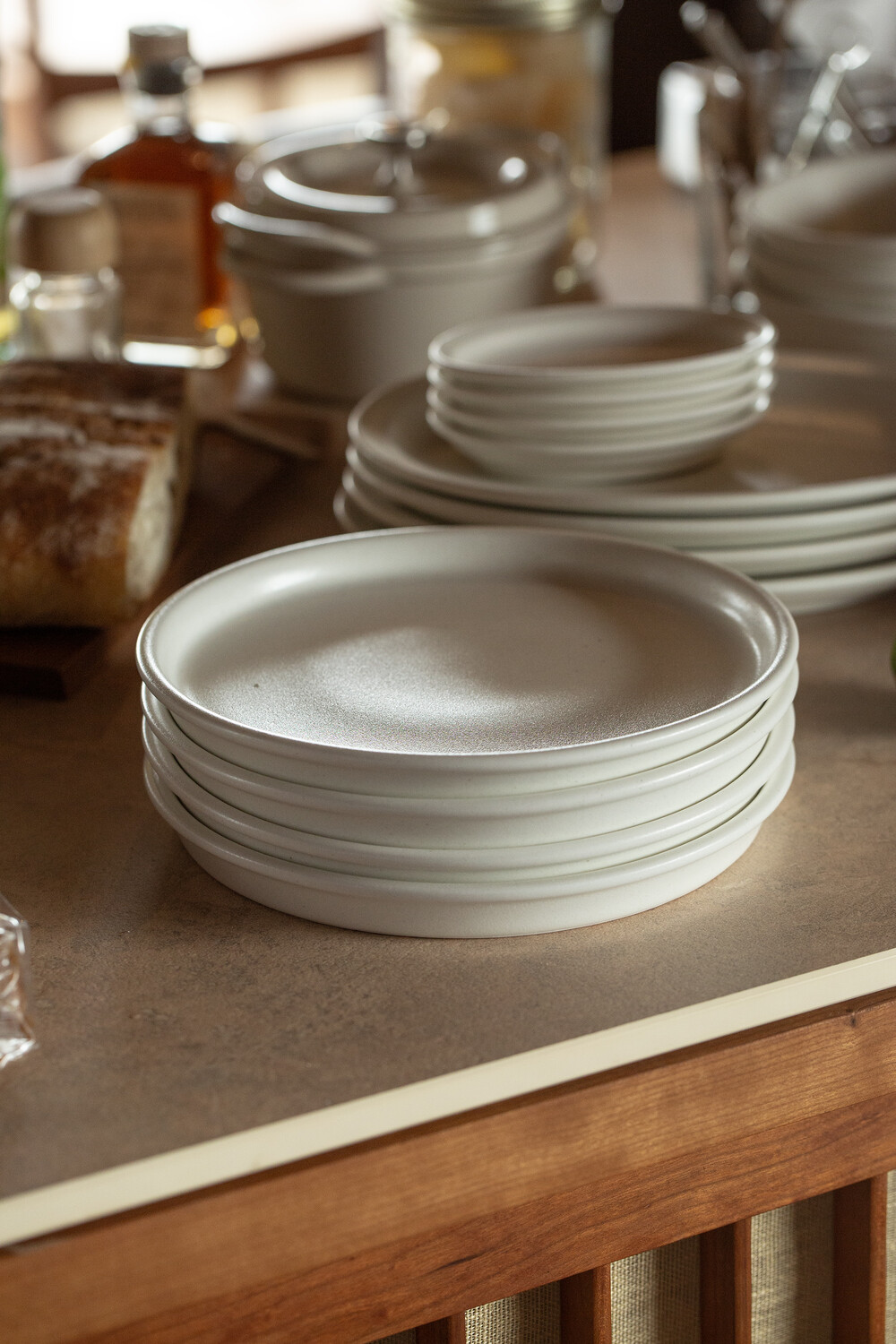 [포레스트 라이스 원형 플레이트 L] 바쁘게 살아가는 시간 속, 스스로를 온전하게 마주하는 시간은 테이블 위의 시간. 조용히 부딪히는 커트러리 소리는 바람과 만나는 돌의 소리를 닮았습니다. 길었던 하루 끝에 마주하는 따뜻한 음식은 몽글몽글한 하늘을 닮았습니다. 숲의 공기, 색, 냄새에서 모티브를 얻은 모머위켄드의 ‘포레스트 인 포터리’ 시리즈입니다. 그저 서 있기만 해도 쉼이 오는 숲을 도자기에 담은 모머위켄드의 11번째 시리즈입니다.