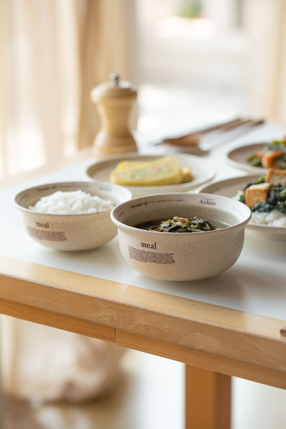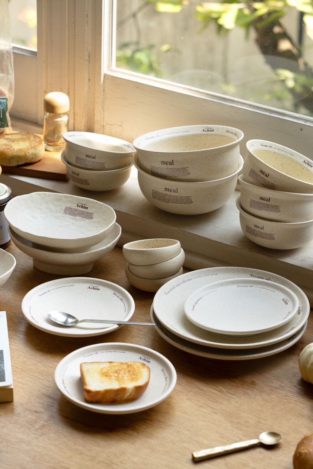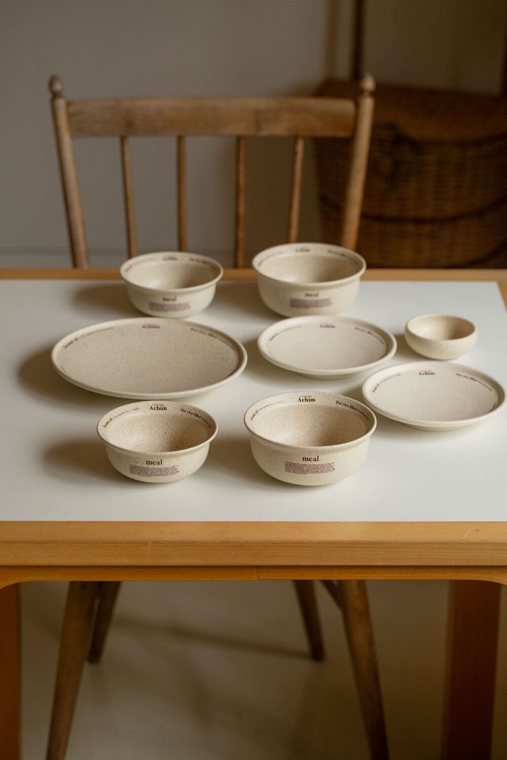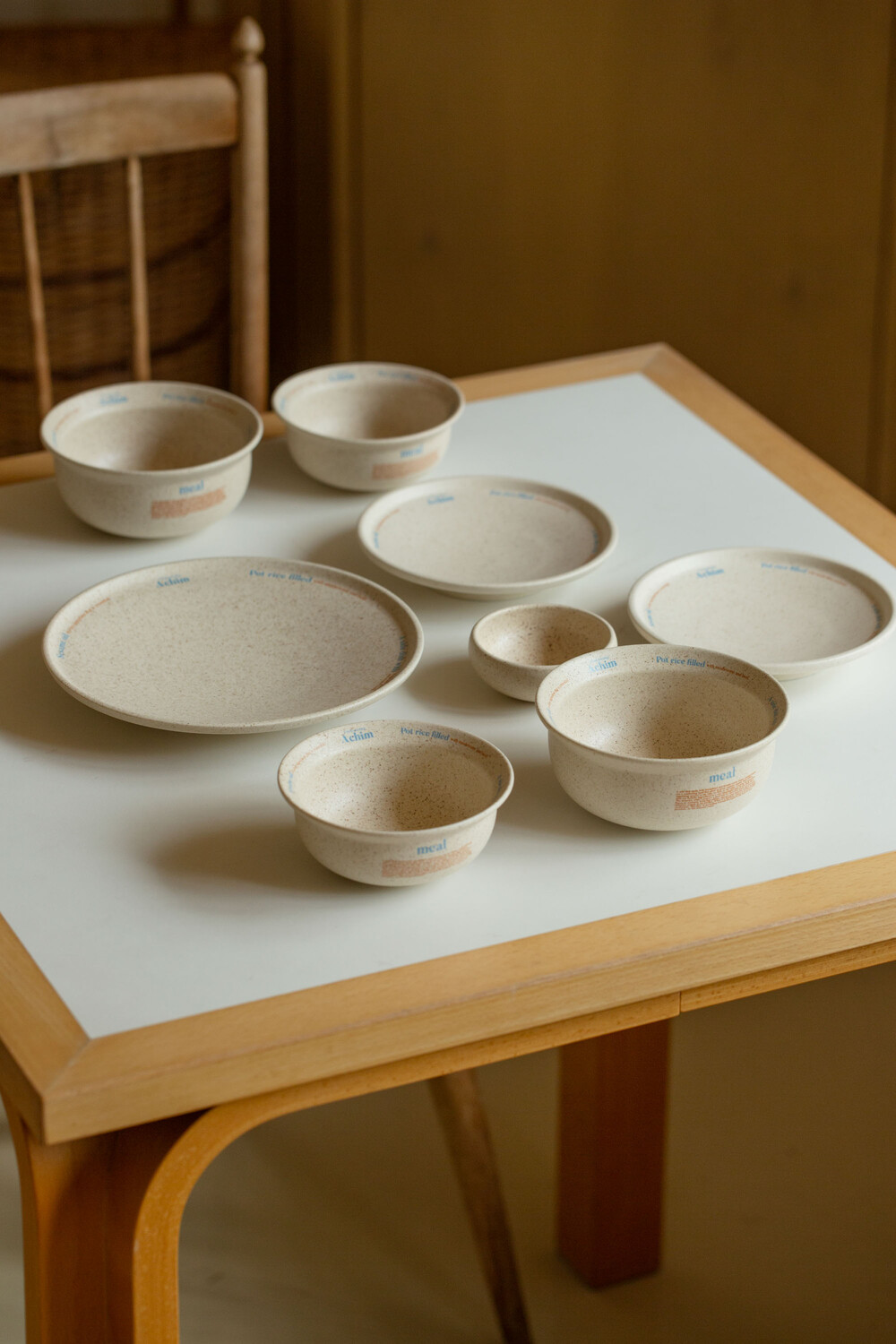 사이즈 : 밥공기 지름 12 높이 5 / 국공기 지름 13.5 높이 6 / 플레이트 L 지름 21.5 높이 3 / 플레이트 S 지름 15.5 높이 3 / 종지 지름 8 높이 3
