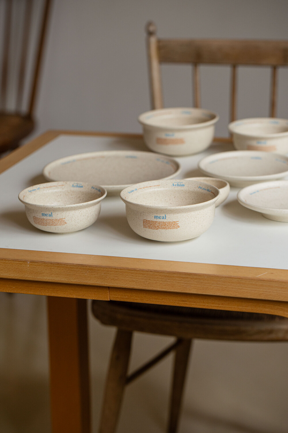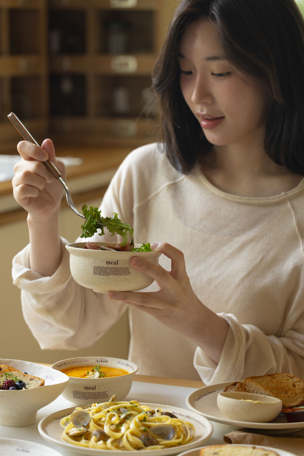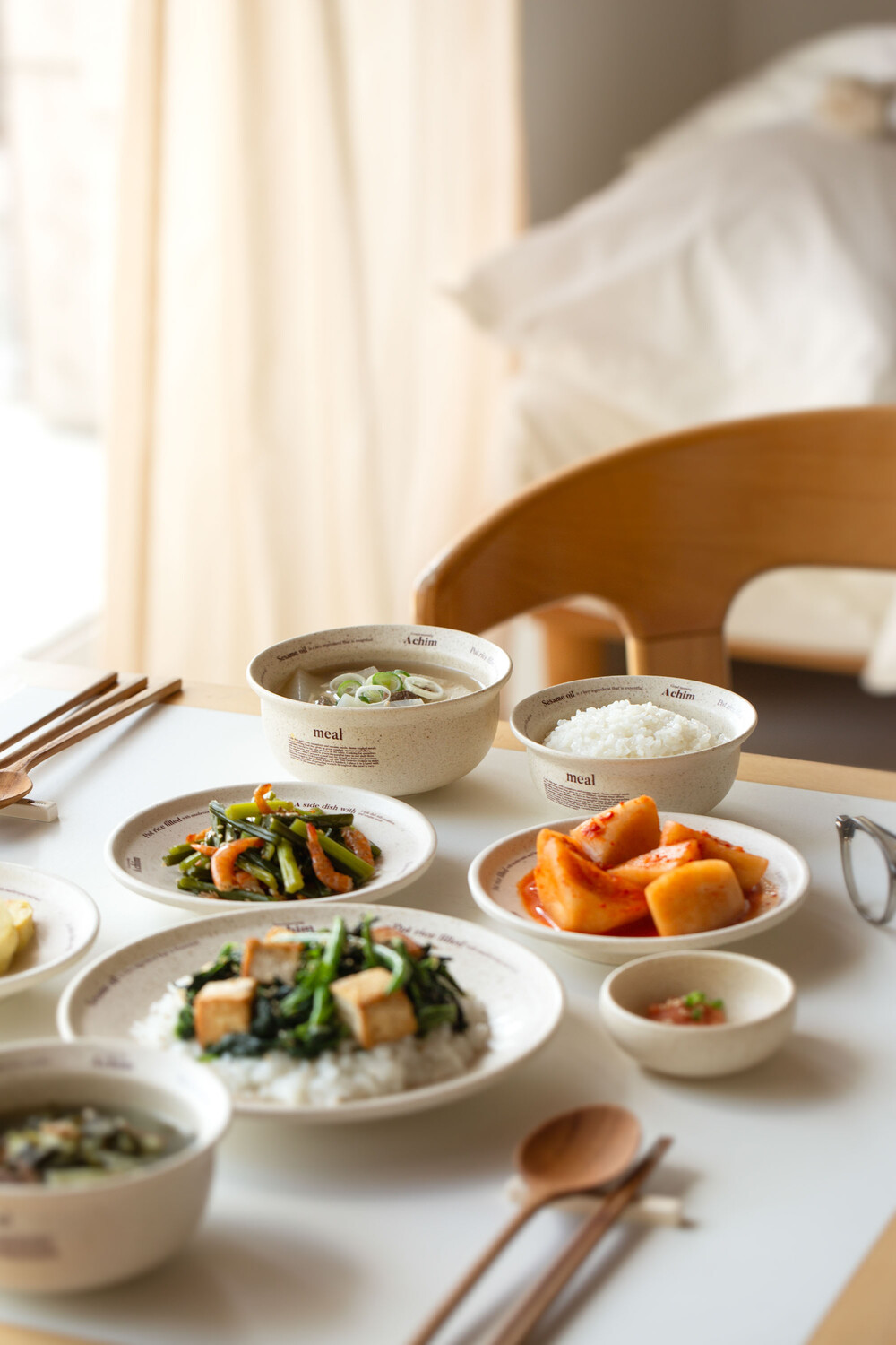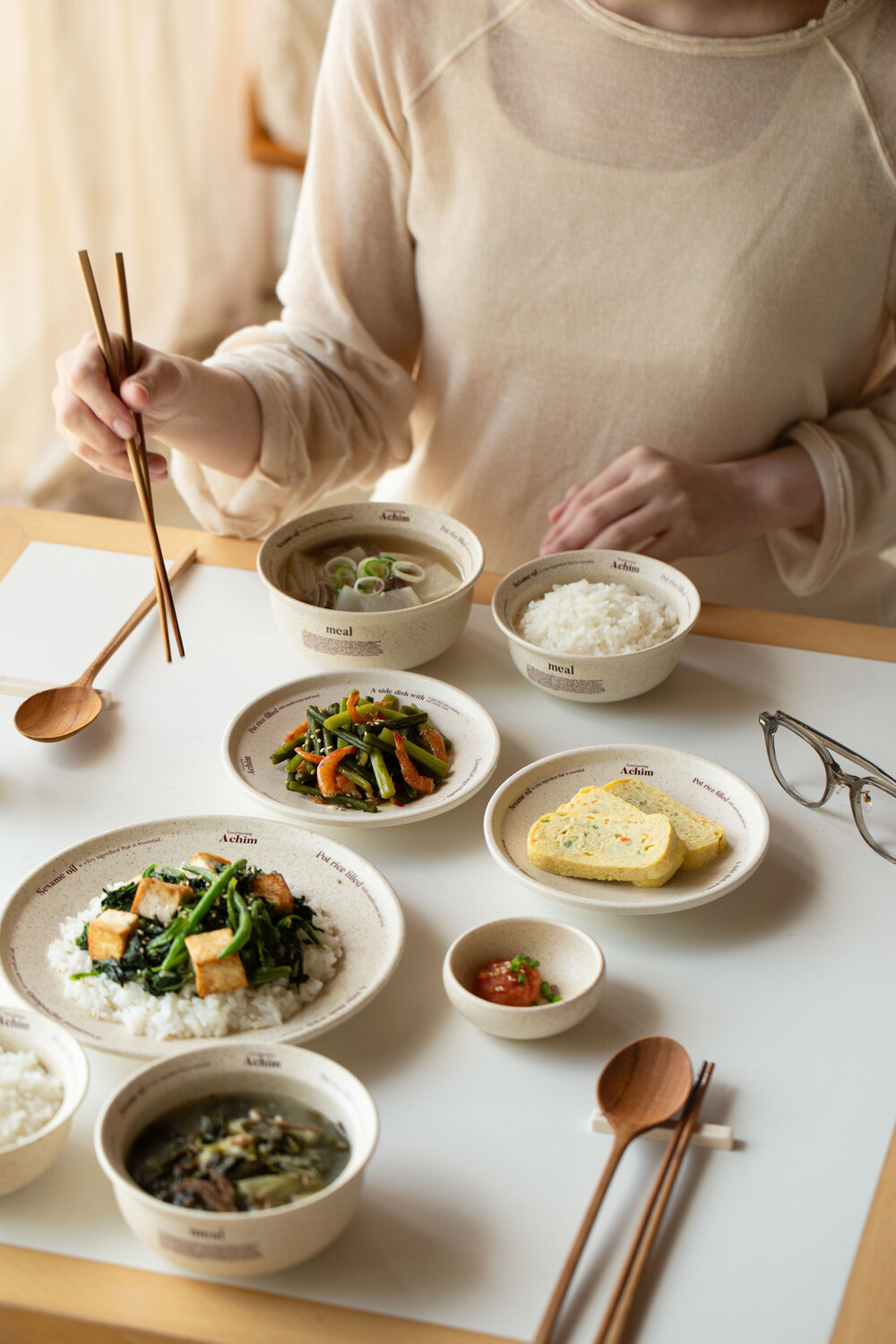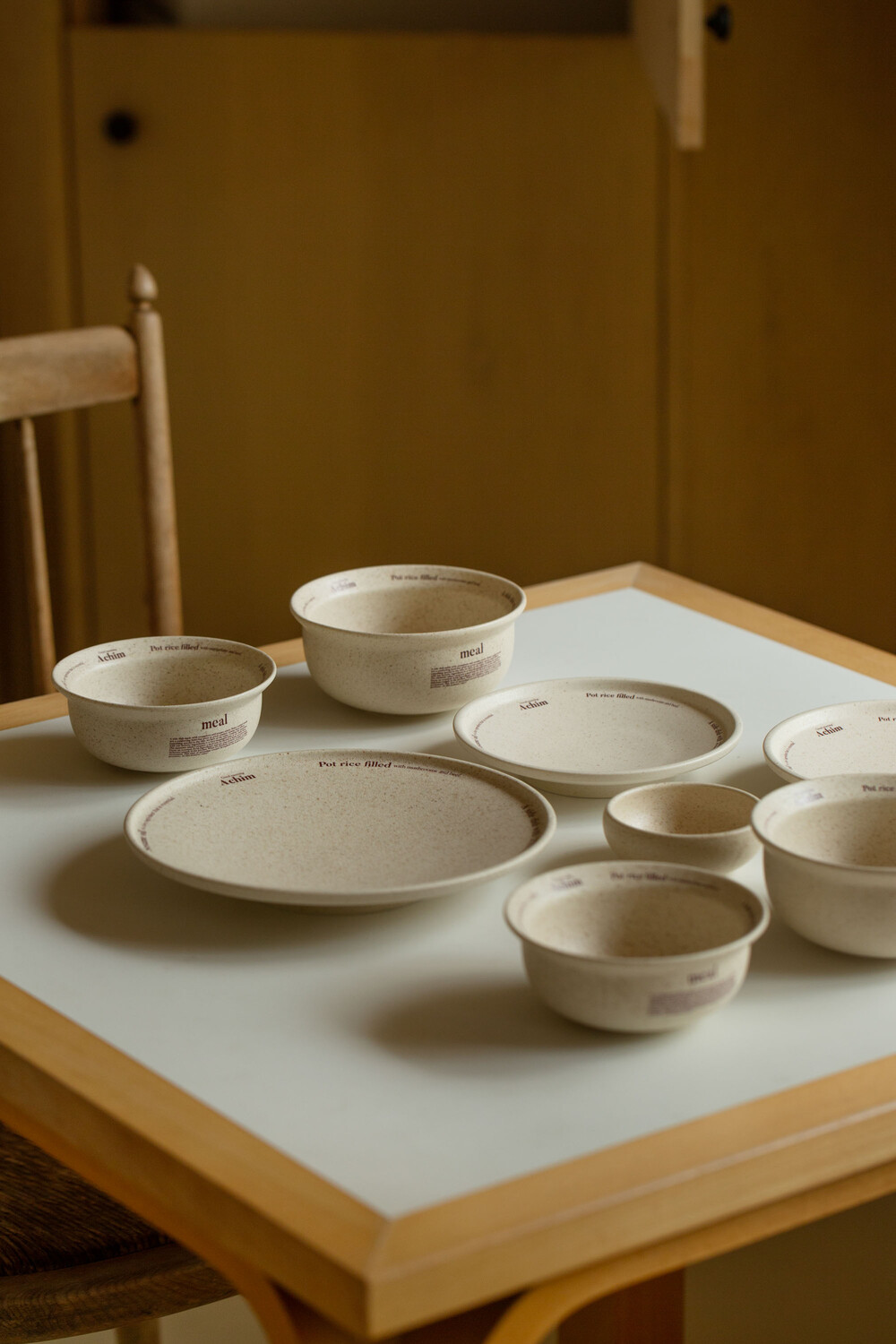 사이즈 : 밥공기 지름 12 높이 5 / 국공기 지름 13.5 높이 6 / 플레이트 L 지름 21.5 높이 3 / 플레이트 S 지름 15.5 높이 3 / 종지 지름 8 높이 3
