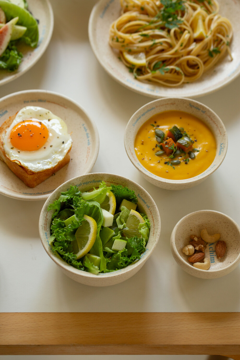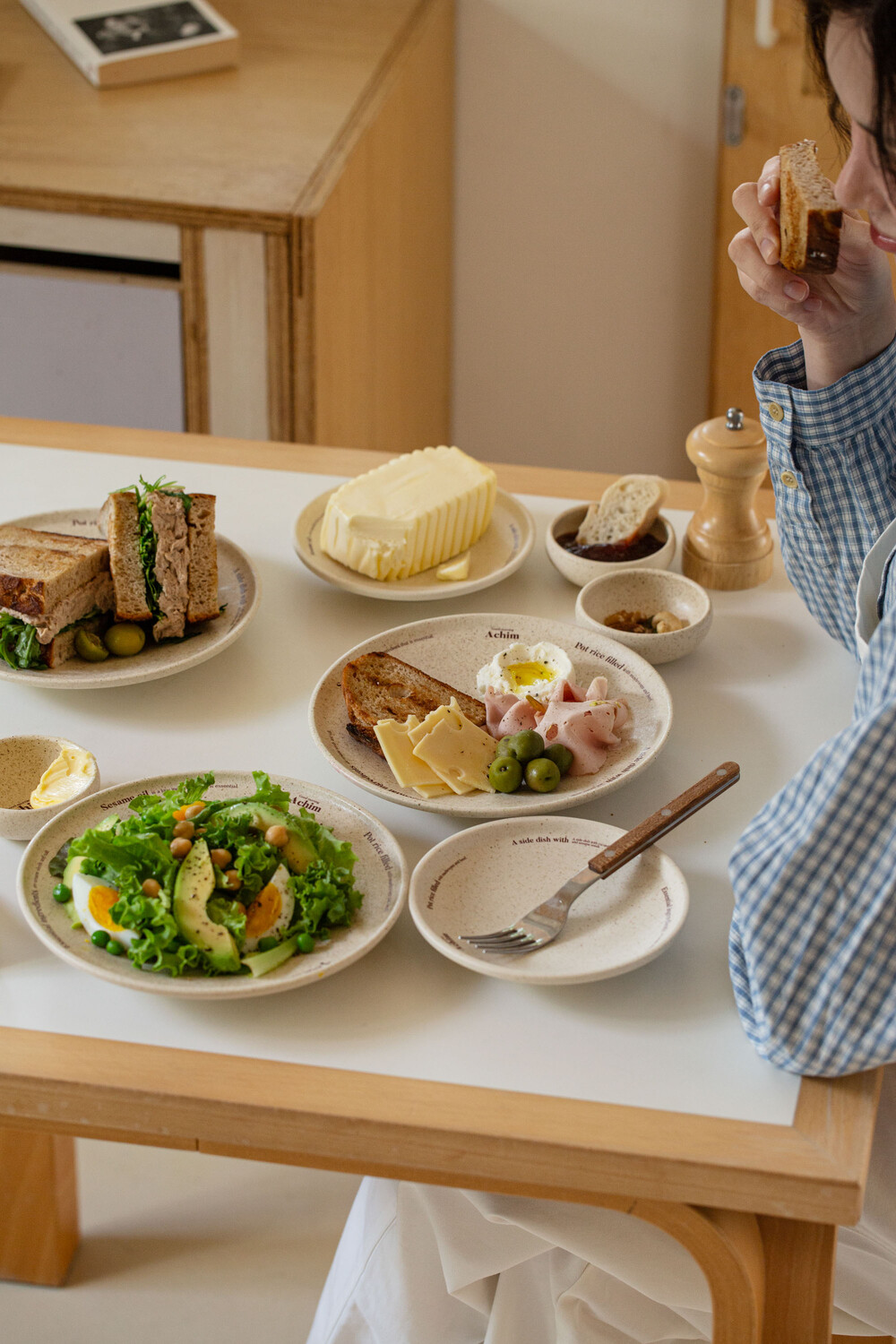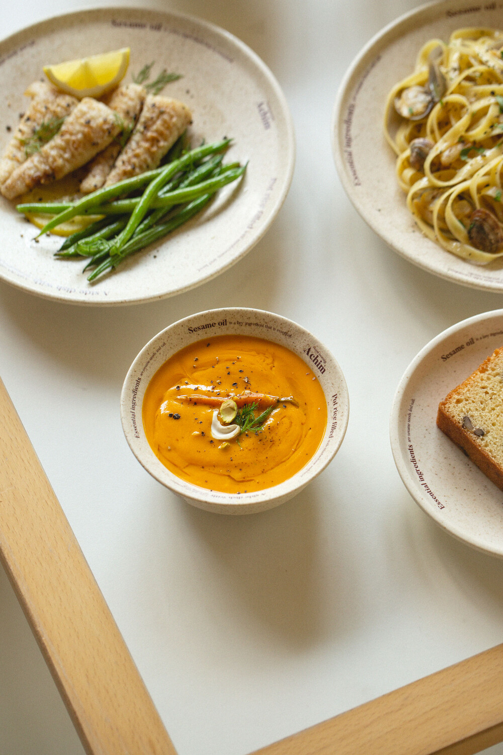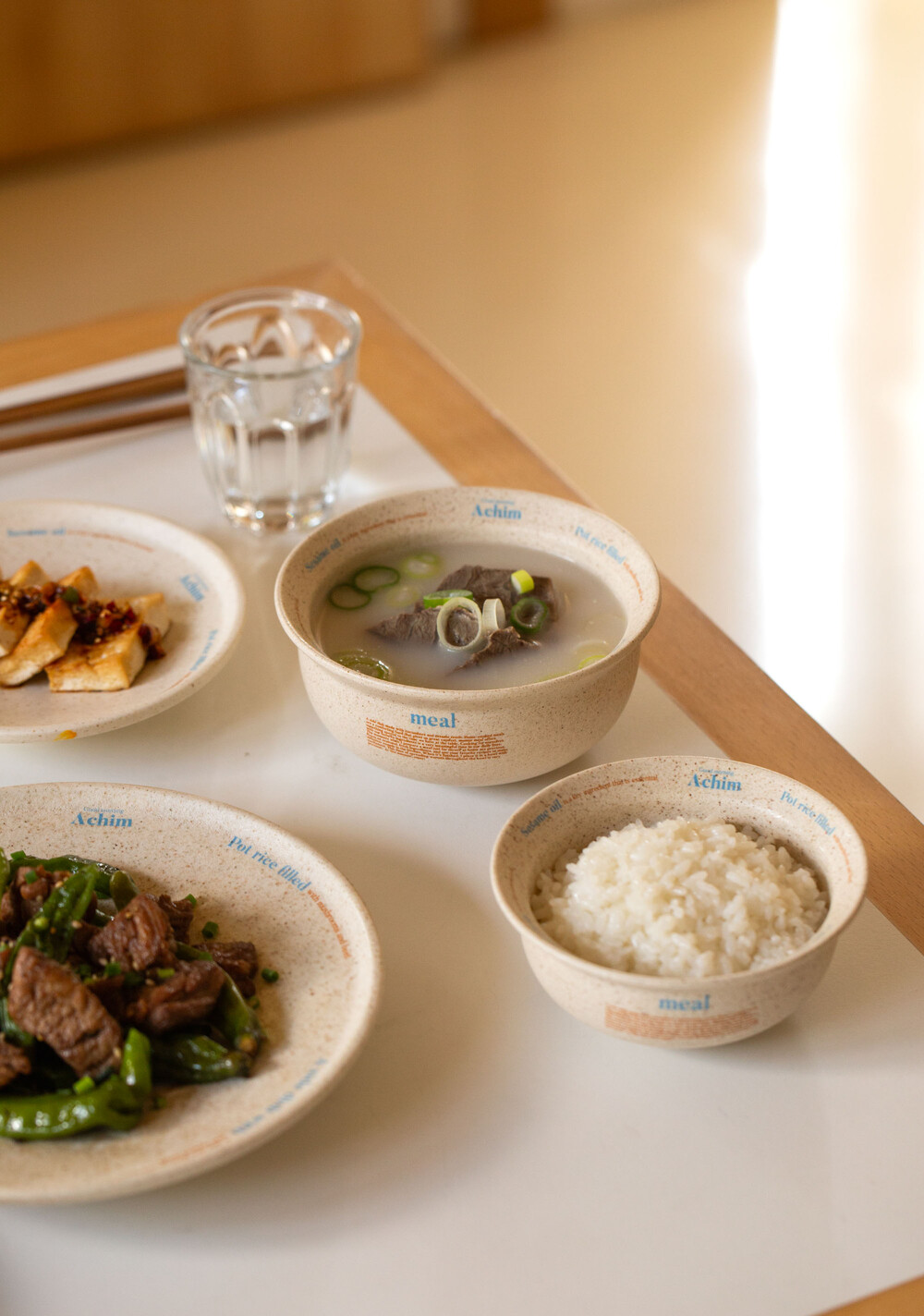 사이즈 : 밥공기 지름 12 높이 5 / 국공기 지름 13.5 높이 6 / 플레이트 L 지름 21.5 높이 3 / 플레이트 S 지름 15.5 높이 3 / 종지 지름 8 높이 3
