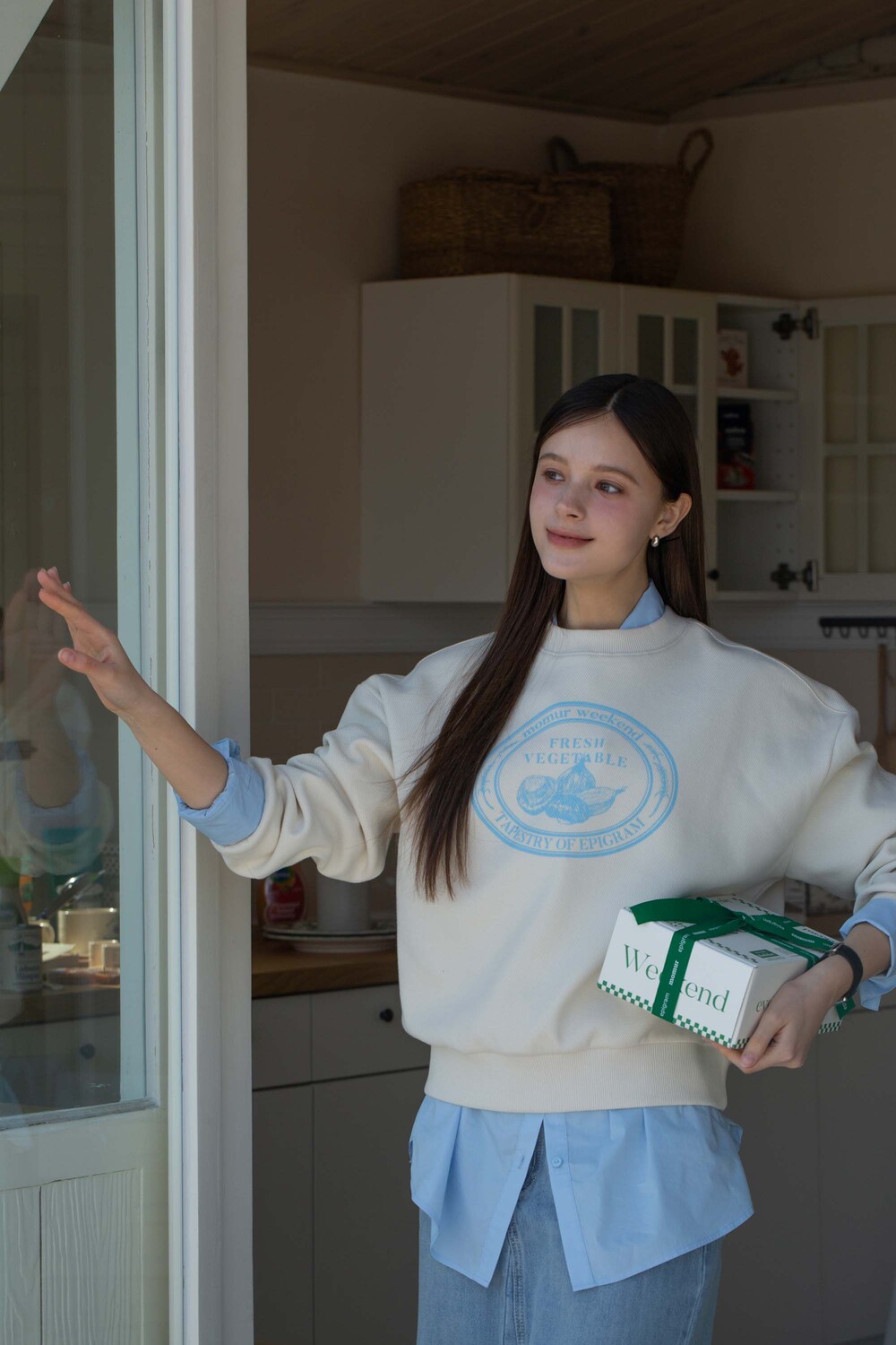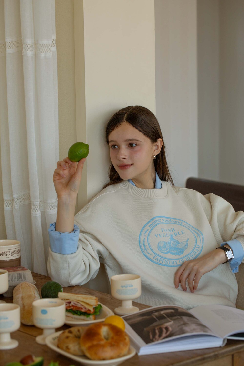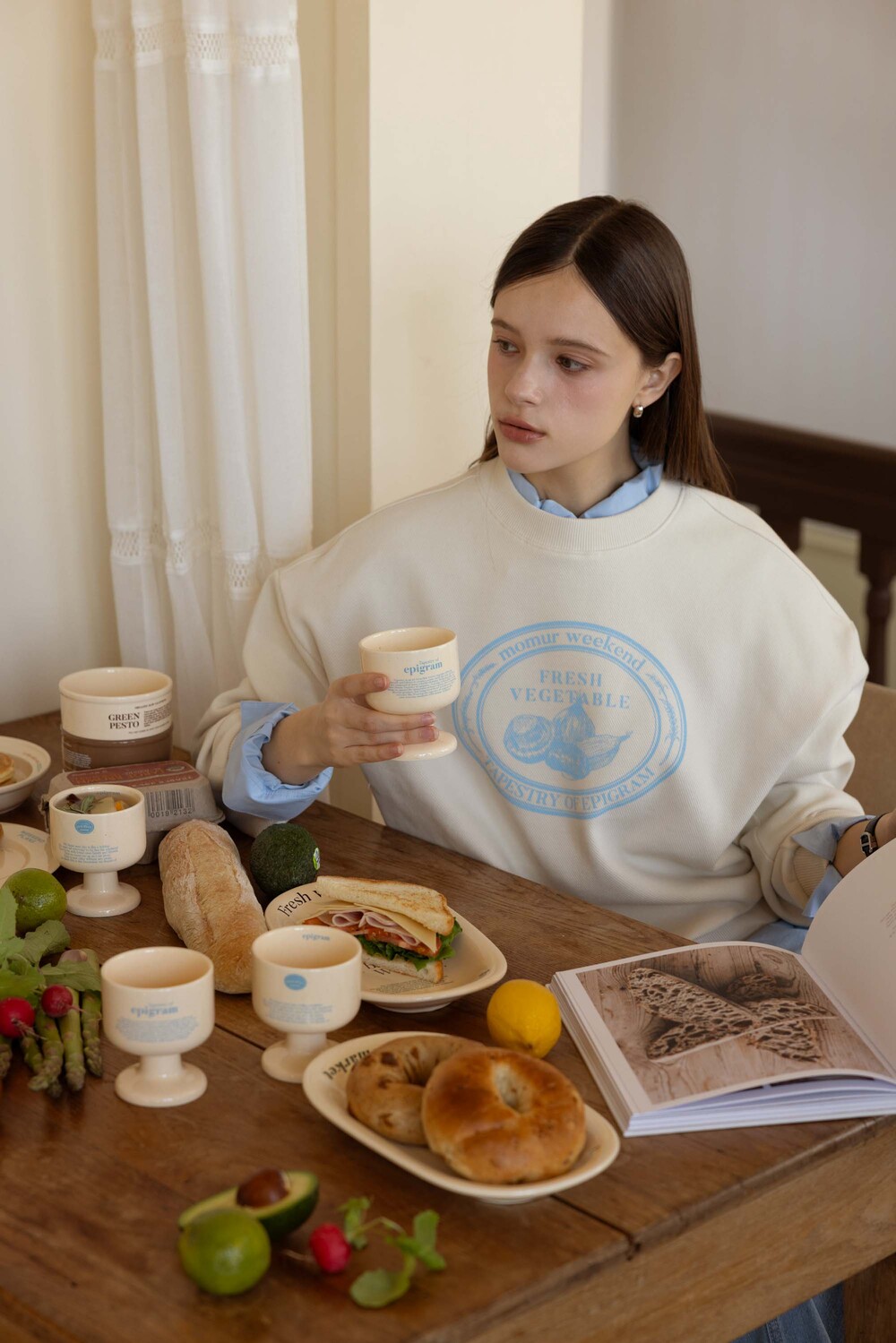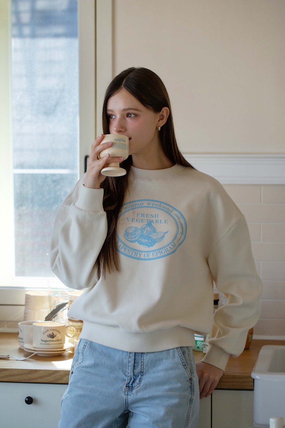 [ epigram x momur ] 맨투맨_크림 에피그램과 모머위켄드의 콜라보레이션을 소개합니다. 프레쉬 베지터블과 버터에서 모티브를 가져온 시리즈입니다. 맨투맨 앞판에 메인 그래픽을 반영한 제품입니다. 언제 어디서든 편하게 착용가능한 데일리웨어입니다. 소재 : 면 85.8% 폴리에스터 11.8% 폴리우레탄2.4% 사이즈 : 총길이 58cm, 가슴둘레 120.5, 어깨너비 60, 소매길이 52.5, 밑단 둘레 85 제조 : 중국 모델 : 키 172cm, 48kg [제품 관리 및 사용 안내] 드라이 크리닝 권장, 건조기 사용 금지 세탁 부주의에 따른 제품 변형에 대해서는 교환/환불이 불가능합니다. 제품 내 케어라벨을 참고해 주십시오.