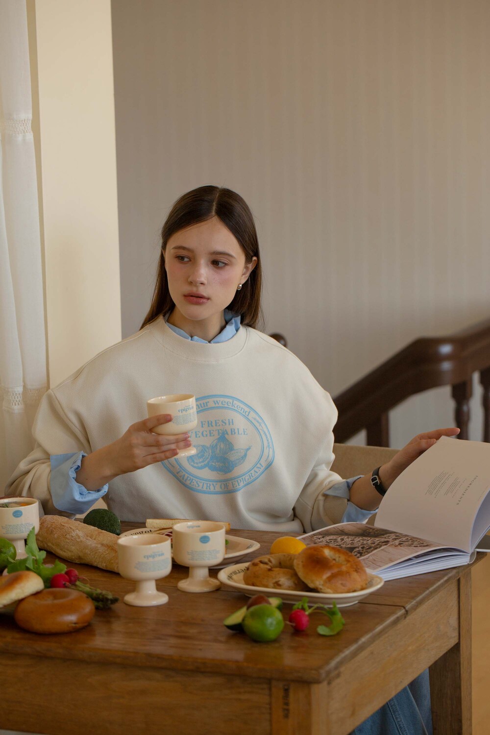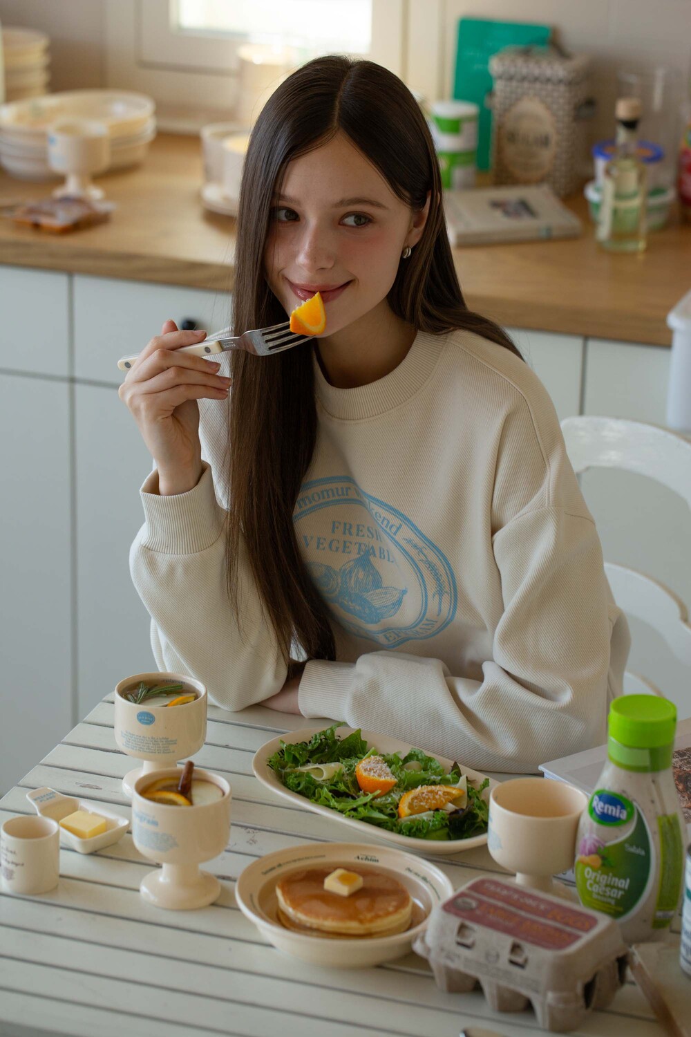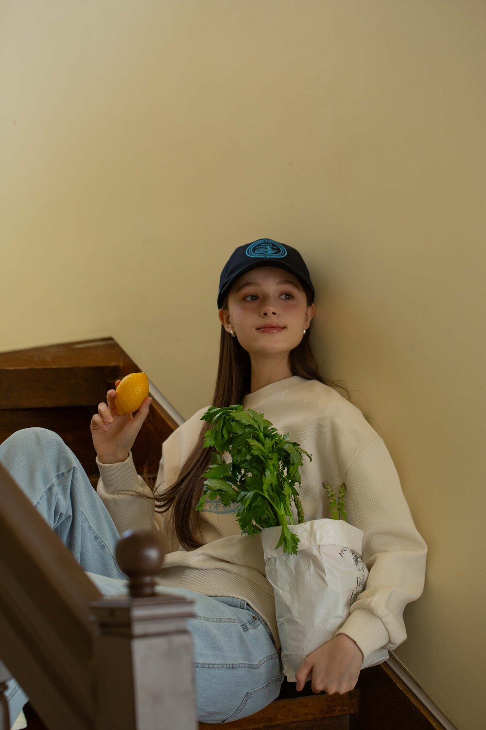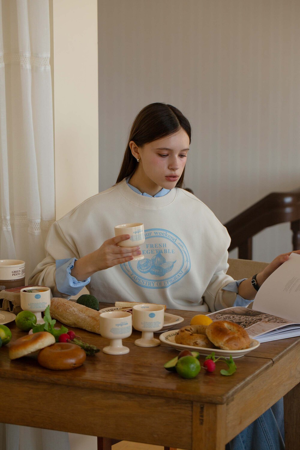 [ epigram x momur ] 맨투맨_크림 에피그램과 모머위켄드의 콜라보레이션을 소개합니다. 프레쉬 베지터블과 버터에서 모티브를 가져온 시리즈입니다. 맨투맨 앞판에 메인 그래픽을 반영한 제품입니다. 언제 어디서든 편하게 착용가능한 데일리웨어입니다. 소재 : 면 85.8% 폴리에스터 11.8% 폴리우레탄2.4% 사이즈 : 총길이 58cm, 가슴둘레 120.5, 어깨너비 60, 소매길이 52.5, 밑단 둘레 85 제조 : 중국 모델 : 키 172cm, 48kg [제품 관리 및 사용 안내] 드라이 크리닝 권장, 건조기 사용 금지 세탁 부주의에 따른 제품 변형에 대해서는 교환/환불이 불가능합니다. 제품 내 케어라벨을 참고해 주십시오.