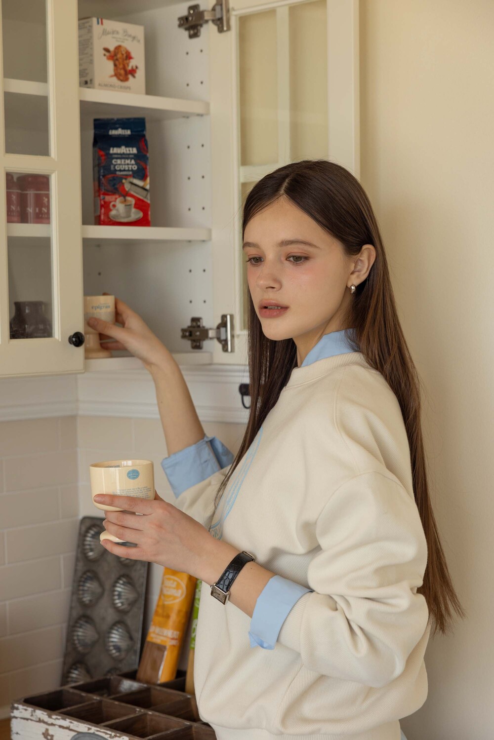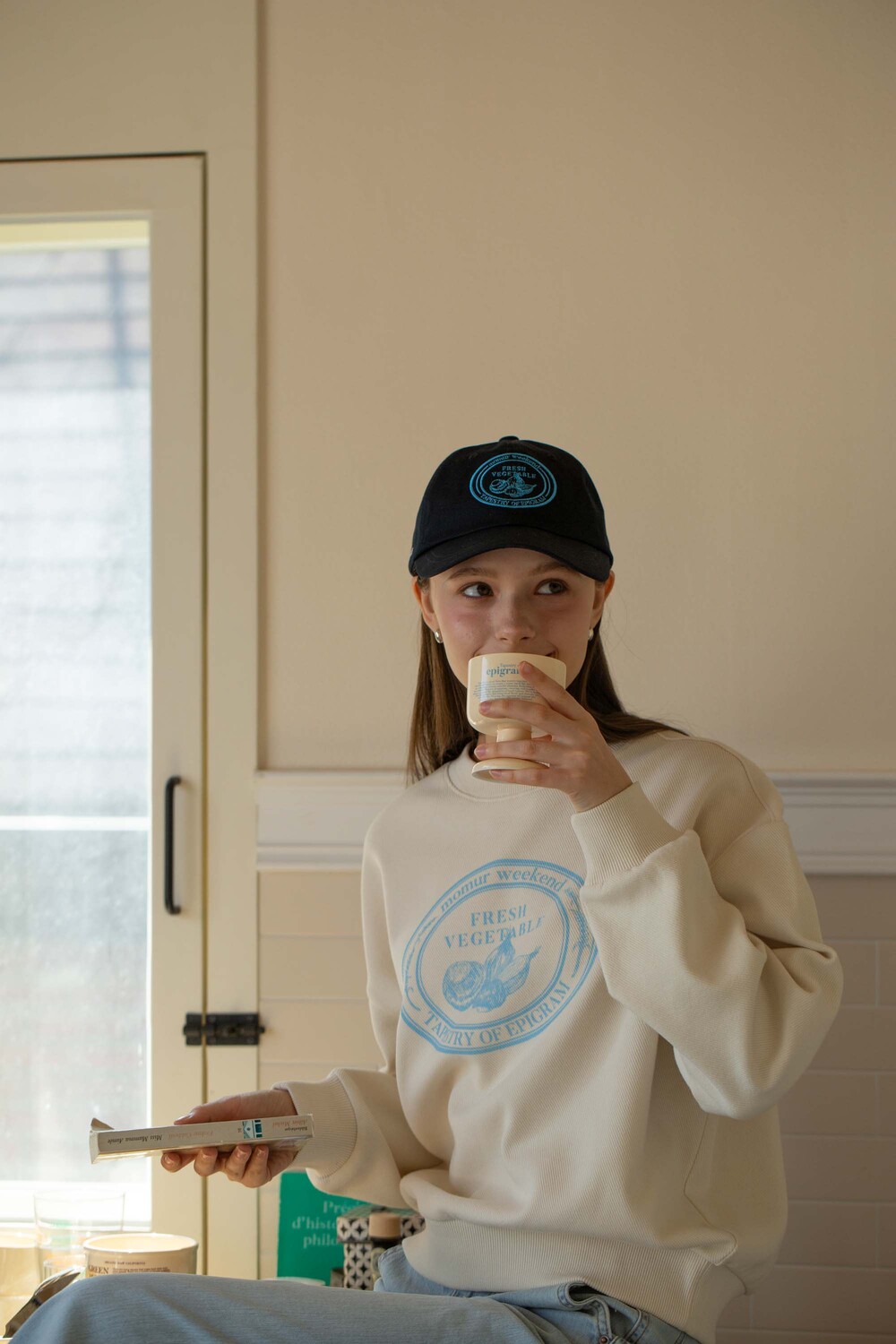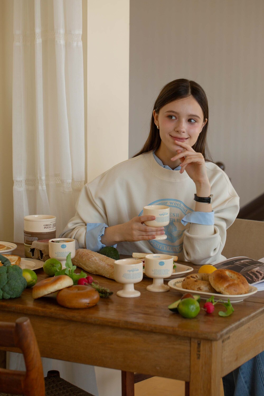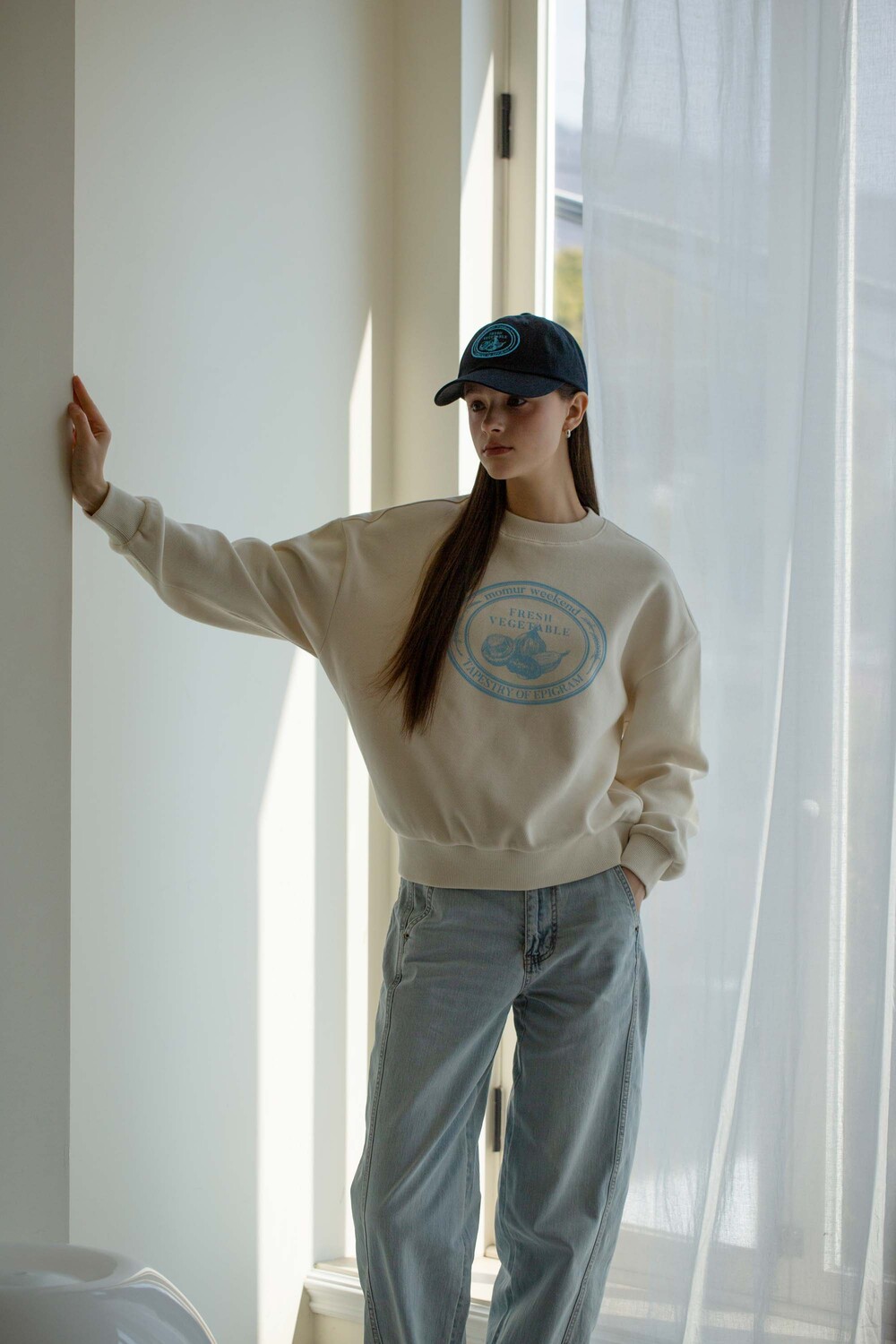 [ epigram x momur ] 맨투맨_크림 에피그램과 모머위켄드의 콜라보레이션을 소개합니다. 프레쉬 베지터블과 버터에서 모티브를 가져온 시리즈입니다. 맨투맨 앞판에 메인 그래픽을 반영한 제품입니다. 언제 어디서든 편하게 착용가능한 데일리웨어입니다. 소재 : 면 85.8% 폴리에스터 11.8% 폴리우레탄2.4% 사이즈 : 총길이 58cm, 가슴둘레 120.5, 어깨너비 60, 소매길이 52.5, 밑단 둘레 85 제조 : 중국 모델 : 키 172cm, 48kg [제품 관리 및 사용 안내] 드라이 크리닝 권장, 건조기 사용 금지 세탁 부주의에 따른 제품 변형에 대해서는 교환/환불이 불가능합니다. 제품 내 케어라벨을 참고해 주십시오.