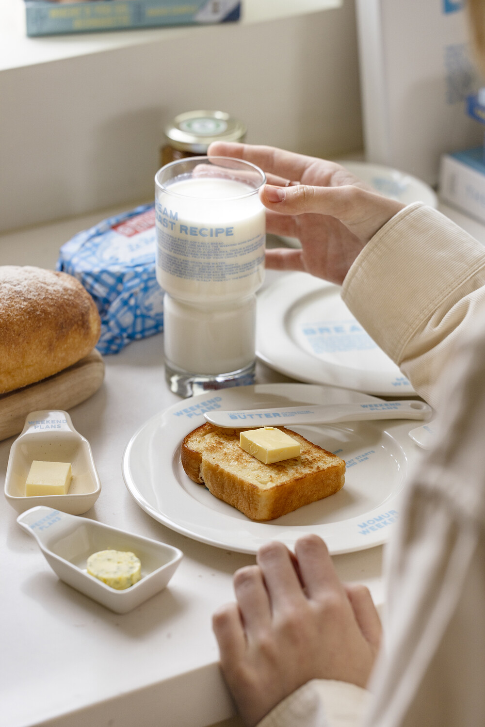바쁘게 보내는 일주일, 그 속에서 우리는 주말 계획을 세웁니다. 친구와 카페 가기, OTT 정주행, 반려동물과 산책하기 그리고 먹고 싶었던 빵으로 아침 시작하기. 기다렸던 주말 시간을 위한 플래닝에서 모티브를 가져온 시리즈입니다. 토스트와 버터로 시작하는 우리의 주말을 기대합니다.
