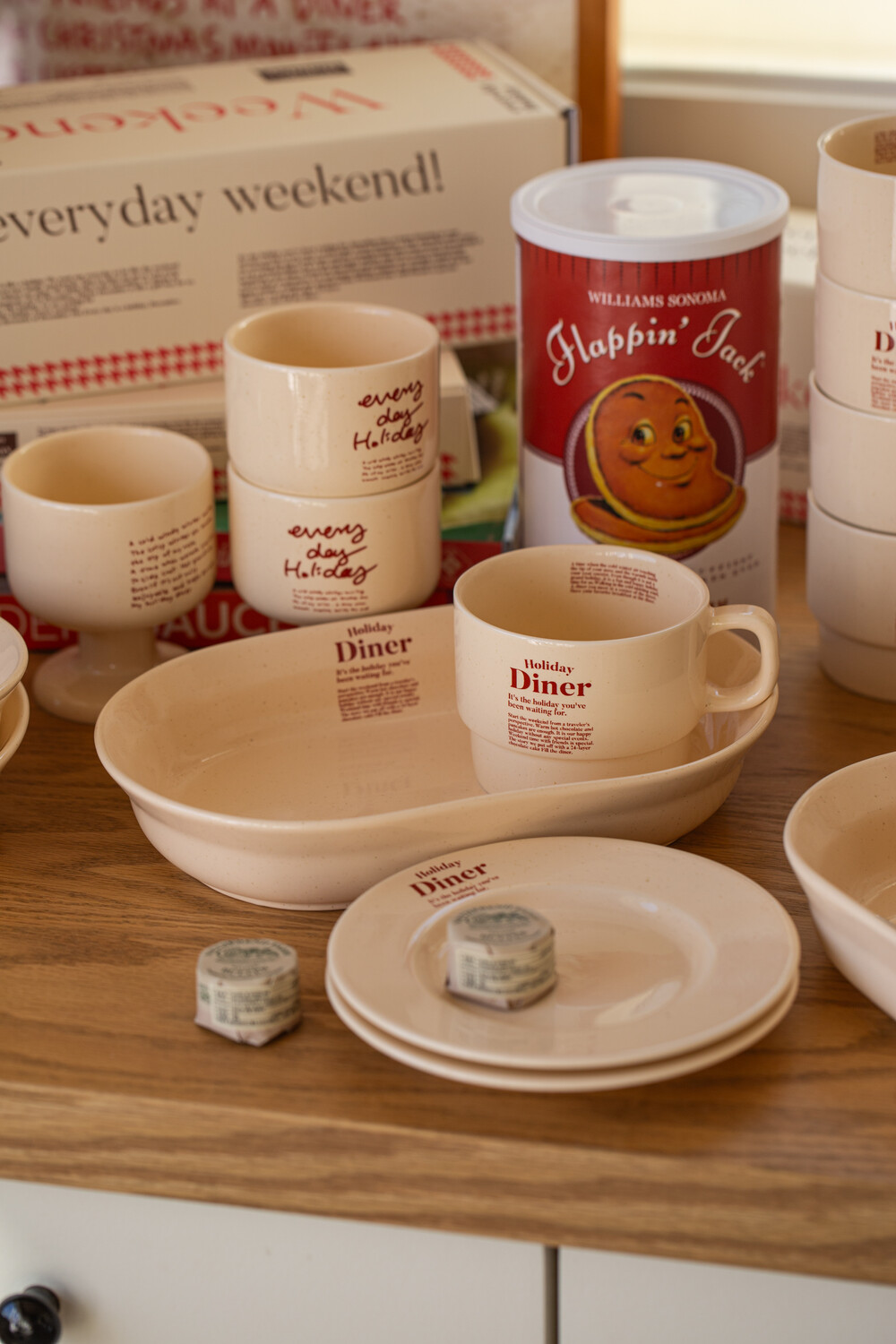 빈티지한 버터색 유약에 홀리데이 다이너 그래픽 요소가 들어간 찻잔 받침입니다. 다이너컵과 함께 구성하면 더 근사한 무드를 연출할 수 있습니다. 홀리데이 감성을 담은 전용 패키지에 포장되어 출고 됩니다.