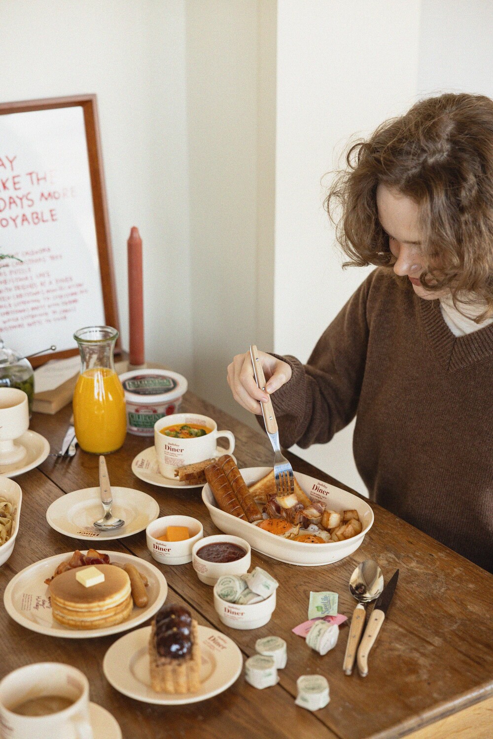 코끝에 닿는 차가운 겨울 공기와 코트 속 따뜻함이 공존하는 시간. 거창하지 않아도, 충분히 즐겁고 행복한 우리들의 홀리데이 시간입니다. 차가운 아침 바람을 맞으며 걸어가는 길, 그 길 한 모퉁이에서 만나는 다이너. 좋아하는 아침을 먹고, 24겹 초콜릿 케이크와 함께 우리들의 미뤄둔 이야기는 다이너를 가득 채웁니다. 우리의 겨울이 따뜻해지는 그곳, 홀리데이 다이너에서 영감을 받은 모머위켄드의 홀리데이 시리즈입니다.