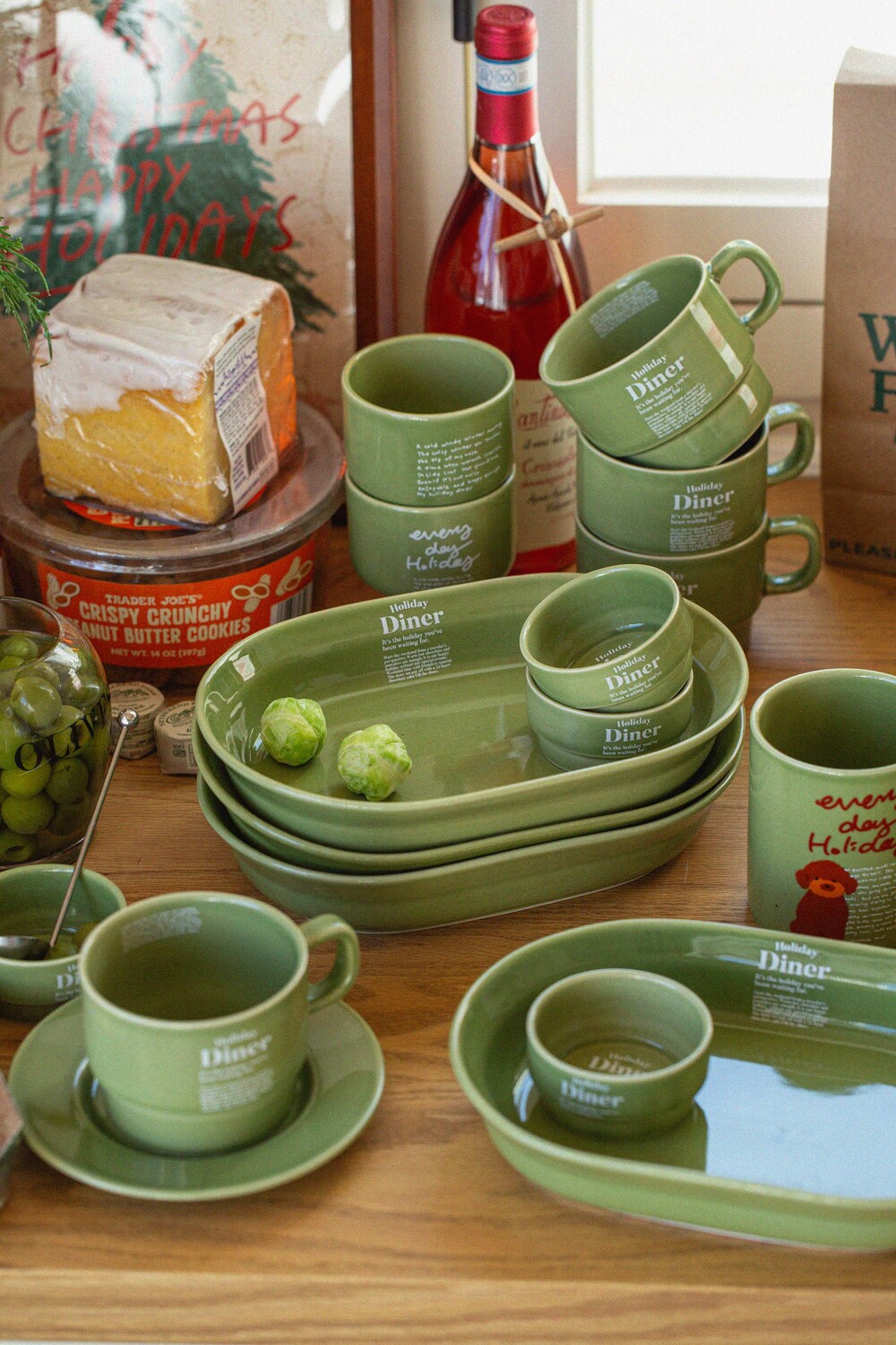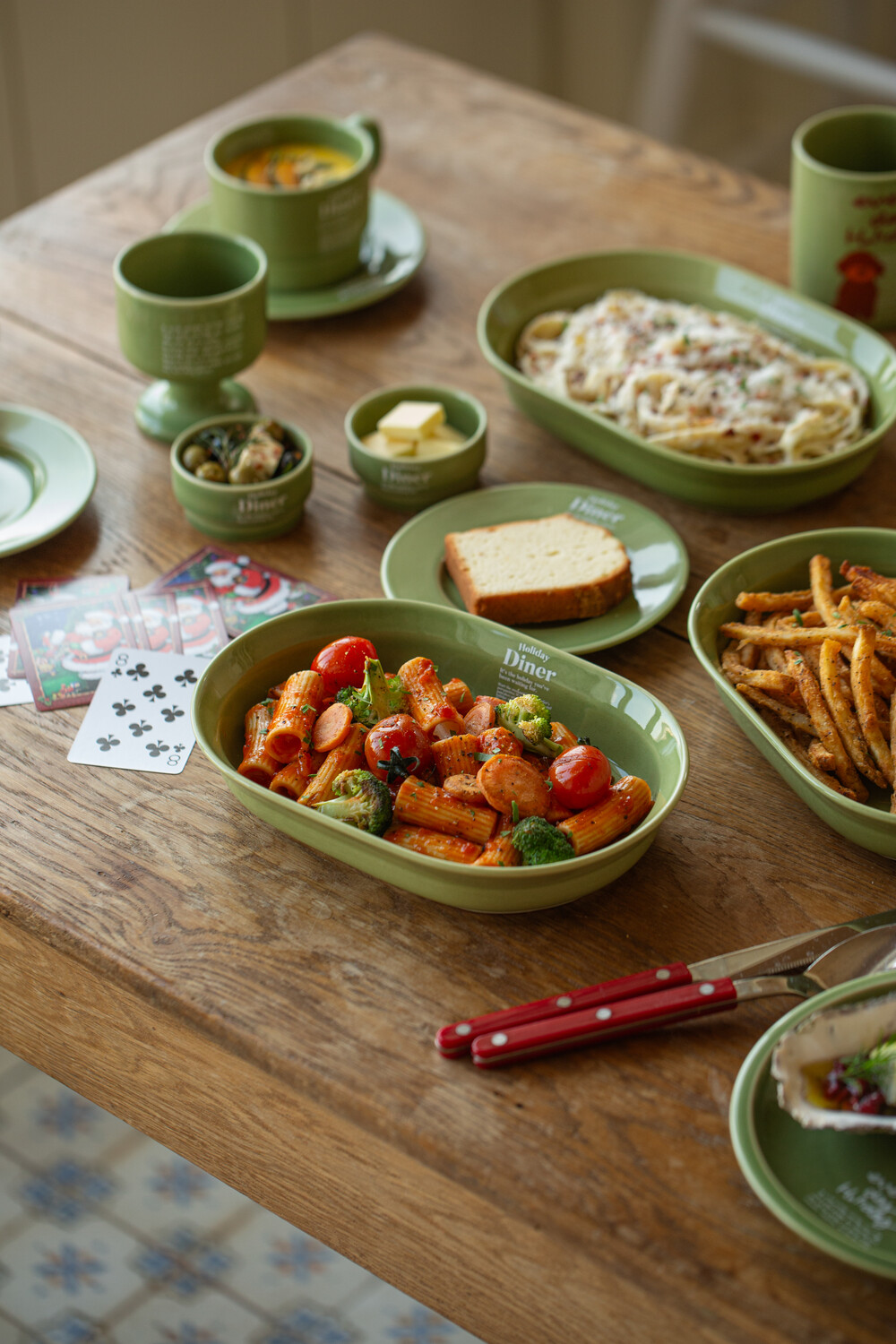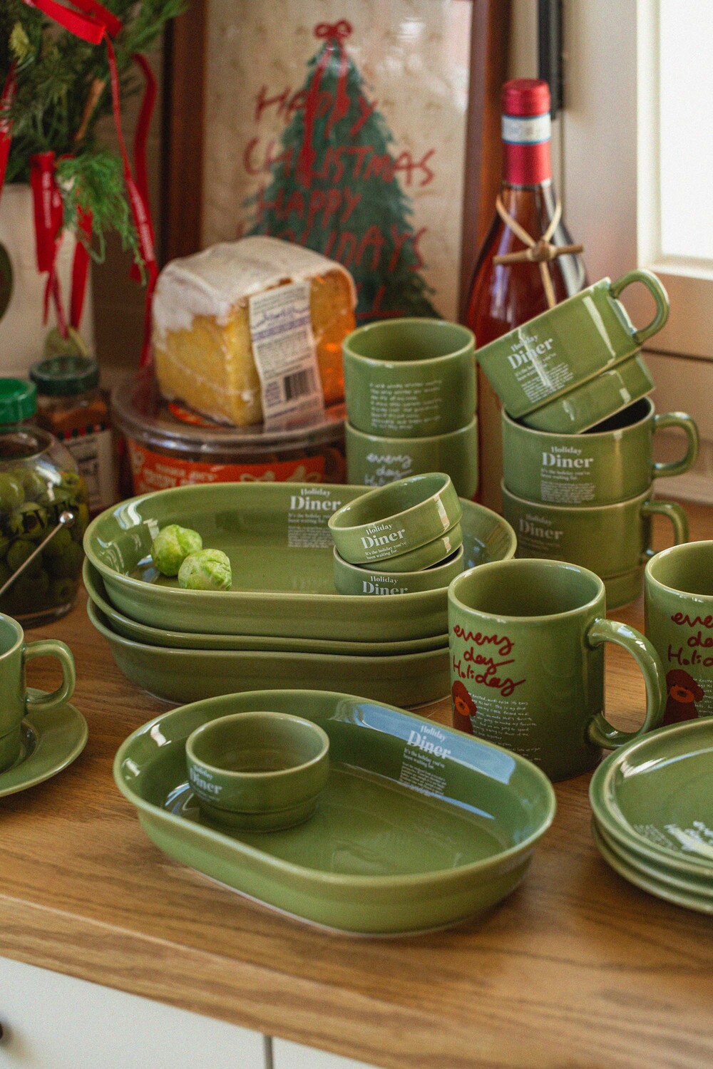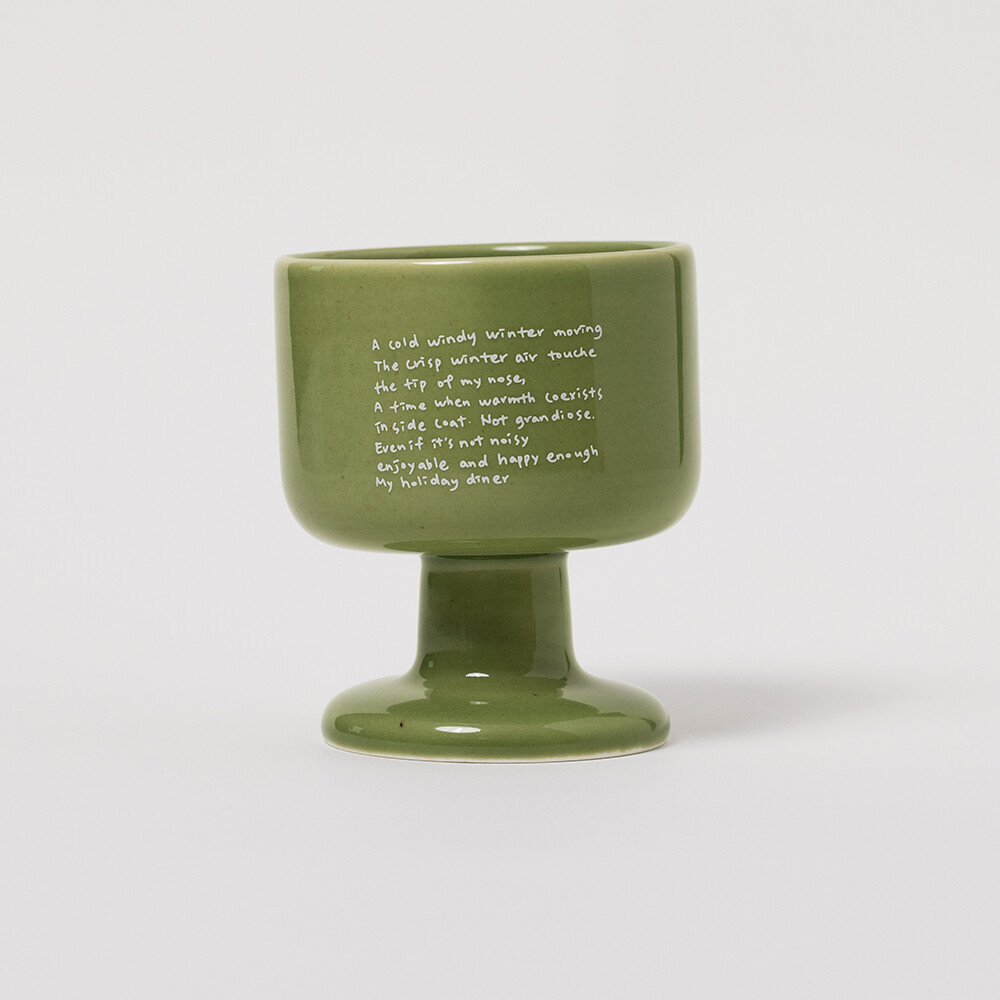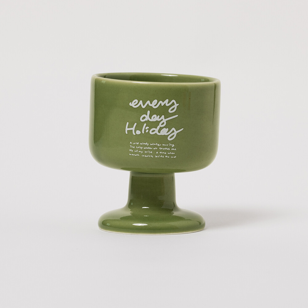 따뜻한 그린톤의 브로콜리색 유약에 머그 앞 뒤로 다른 그래픽이 반영되어 있어, 각각 다른 느낌으로 즐길 수 있습니다. 다이너 플레이트와 함께 구성하면 더 근사한 무드를 연출할 수 있습니다. 패키지 재고 상황에 따라 일정기간 크래프트 박스에 포장되어 출고될 수 있습니다. 구성 : 와인컵 1개