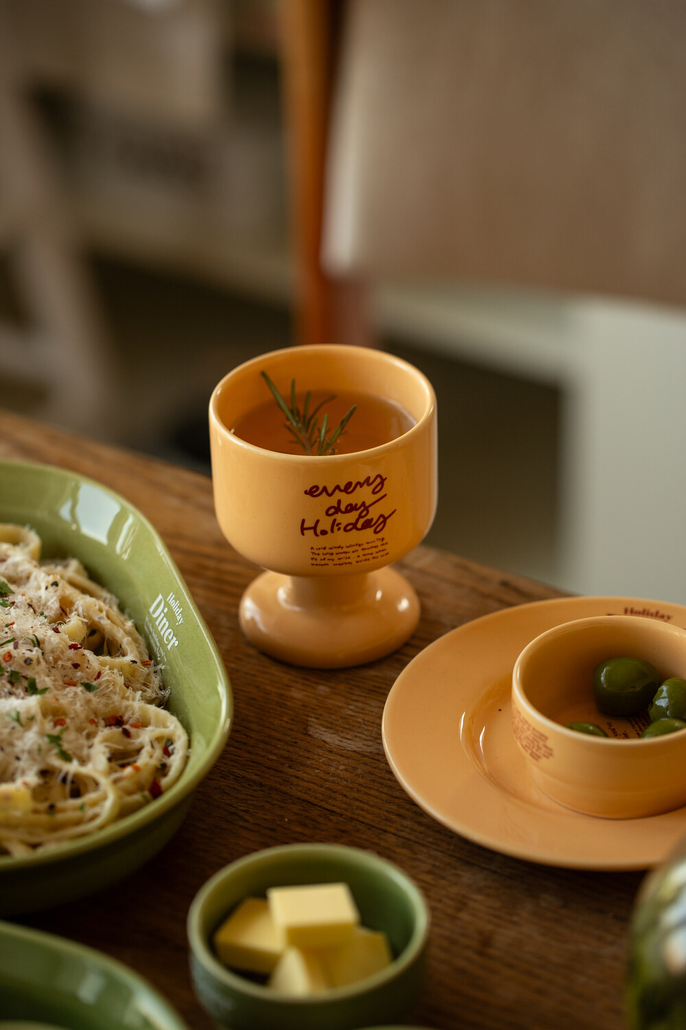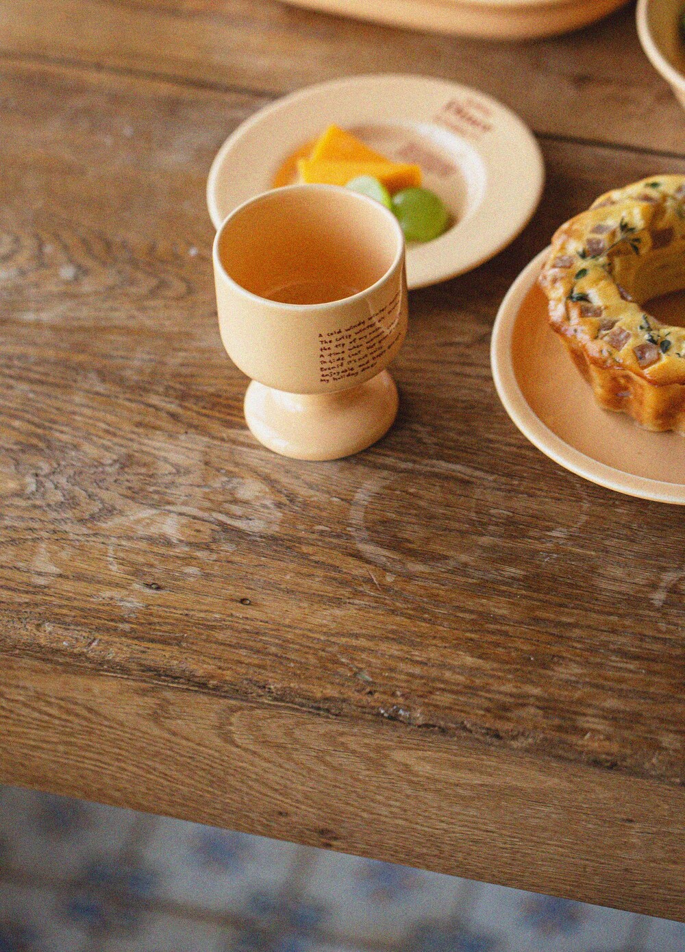 빈티지한 치즈색 유약에 머그 앞 뒤로 다른 그래픽이 반영되어 있어, 각각 다른 느낌으로 즐길 수 있습니다. 다이너 플레이트와 함께 구성하면 더 근사한 무드를 연출할 수 있습니다. 패키지 재고 상황에 따라 일정기간 크래프트 박스에 포장되어 출고될 수 있습니다. 구성 : 와인컵 1개
