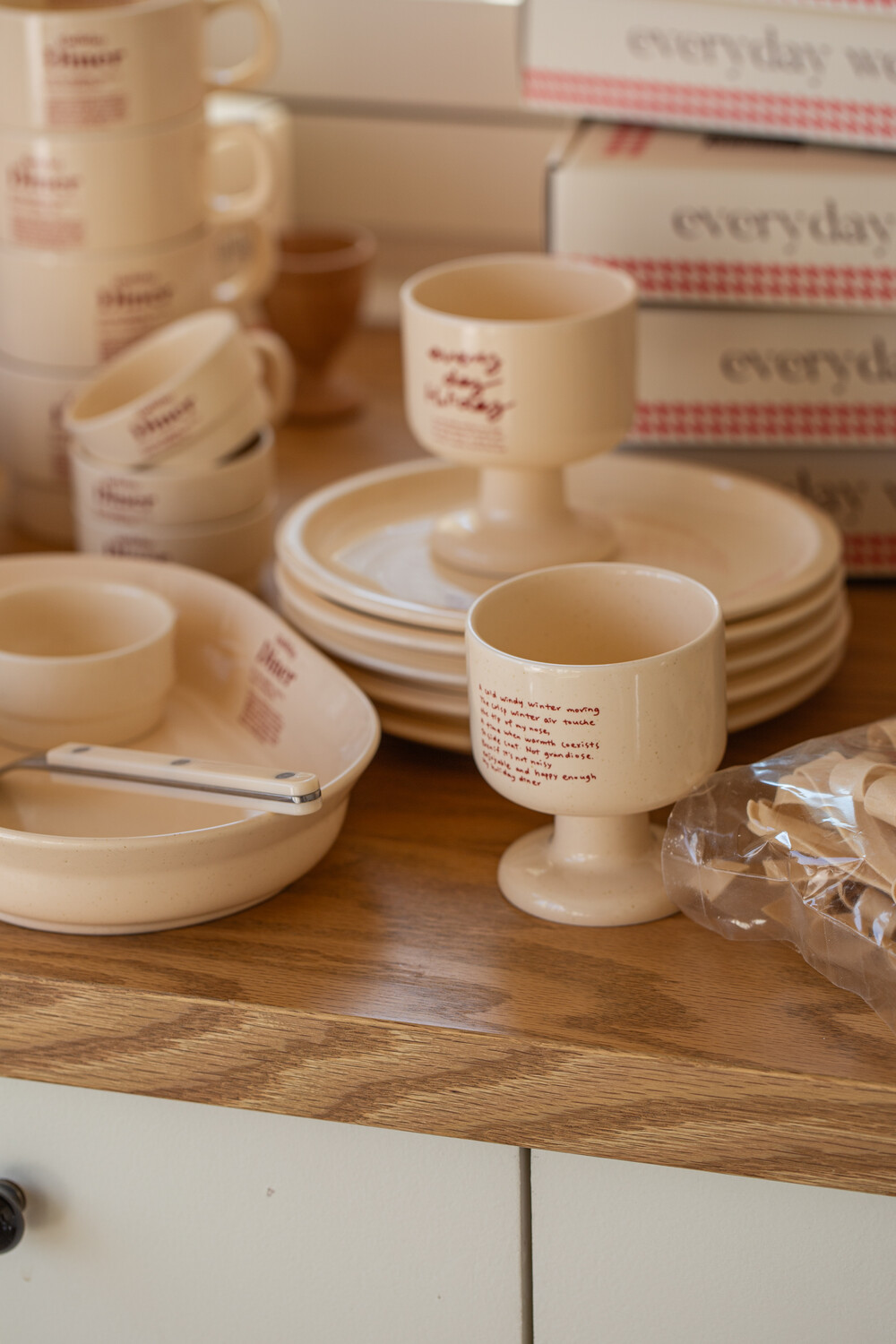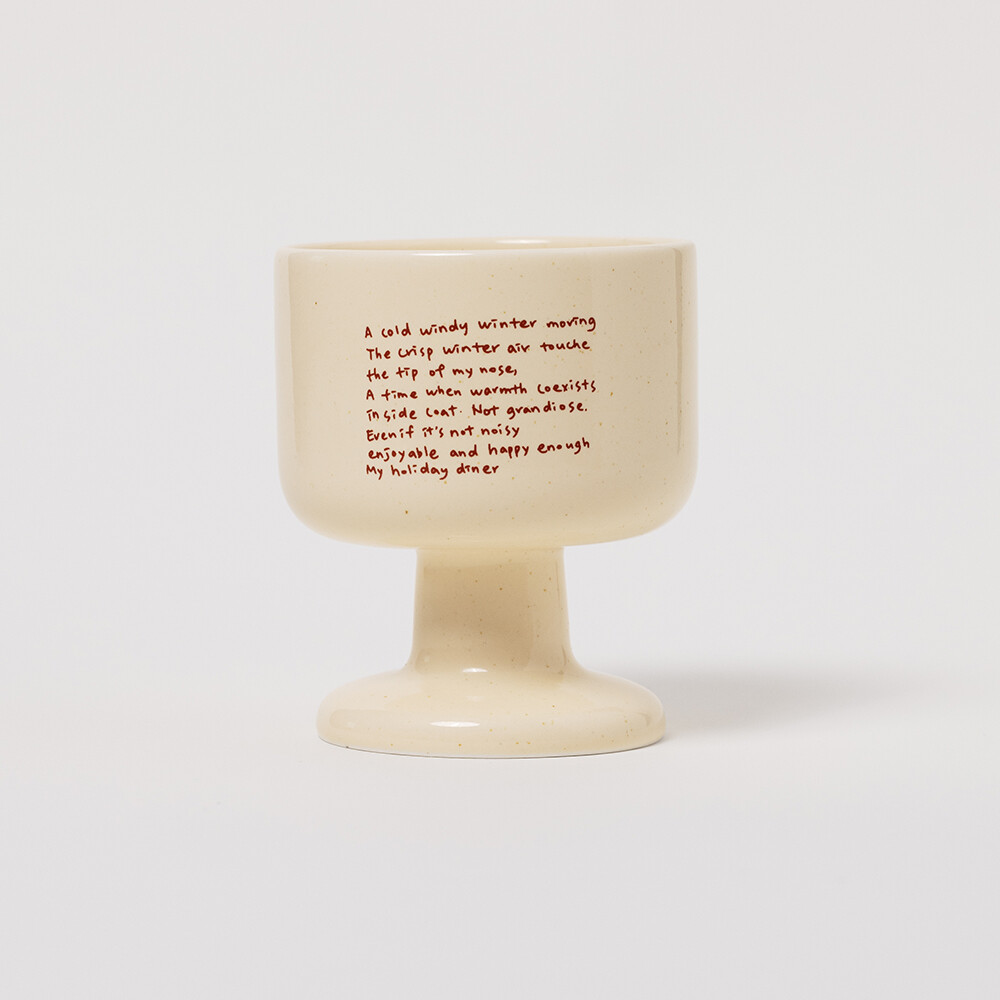 빈티지한 버터색 유약에 머그 앞 뒤로 다른 그래픽이 반영되어 있어, 각각 다른 느낌으로 즐길 수 있습니다. 다이너 플레이트와 함께 구성하면 더 근사한 무드를 연출할 수 있습니다. 패키지 재고 상황에 따라 일정기간 크래프트 박스에 포장되어 출고될 수 있습니다. 구성 : 와인컵 1개