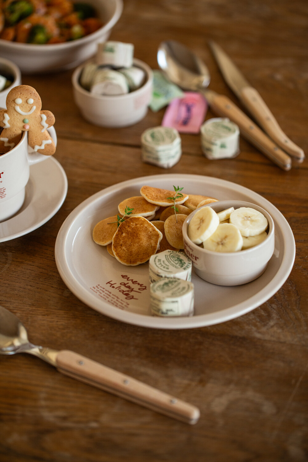 기본 원형 플레이트로 토스트, 케이크, 스테이크 등 다양한 음식을 담을 수 있는 제품입니다. ‘에브리데이 홀리데이’ 테마가 핸드프린팅으로 들어간 제품입니다.