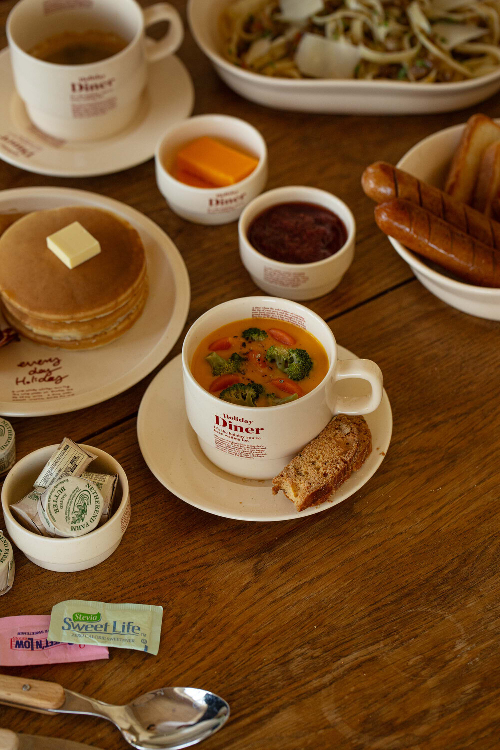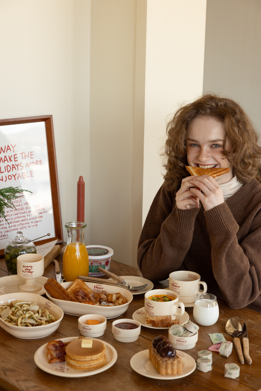 코끝에 닿는 차가운 겨울 공기와 코트 속 따뜻함이 공존하는 시간. 거창하지 않아도, 충분히 즐겁고 행복한 우리들의 홀리데이 시간입니다. 차가운 아침 바람을 맞으며 걸어가는 길, 그 길 한 모퉁이에서 만나는 다이너. 좋아하는 아침을 먹고, 24겹 초콜릿 케이크와 함께 우리들의 미뤄둔 이야기는 다이너를 가득 채웁니다. 우리의 겨울이 따뜻해지는 그곳, 홀리데이 다이너에서 영감을 받은 모머위켄드의 홀리데이 시리즈입니다.