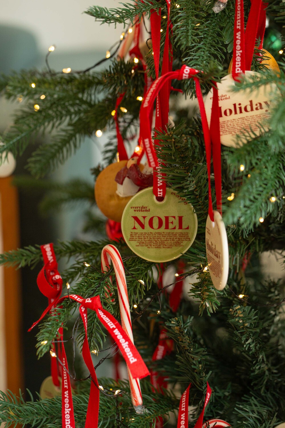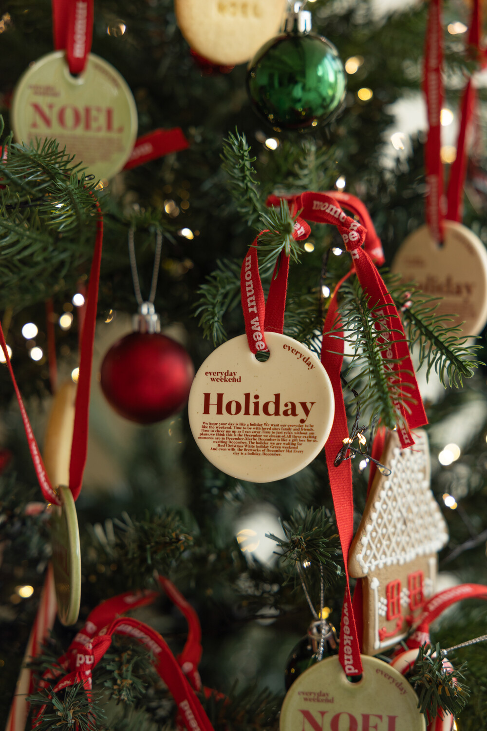 모머위켄드 홀리데이 시리즈의 메인 테마인 ‘에브리데이 홀리데이’와 ‘NOEL’이 들어간 도자기 오너먼트입니다. 전용 레드 리본과 함께 크리스마스 트리에 특별함을 더해 보세요.