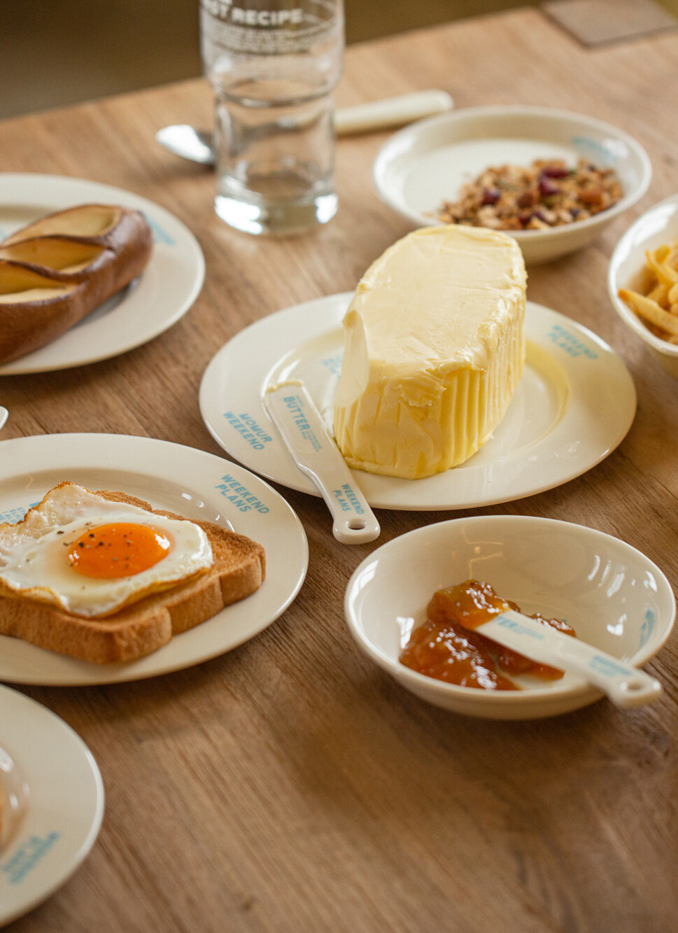 바쁘게 보내는 일주일, 그 속에서 우리는 주말 계획을 세웁니다. 친구와 카페 가기, OTT 정주행, 반려동물과 산책하기 그리고 먹고 싶었던 빵으로 아침 시작하기. 기다렸던 주말 시간을 위한 플래닝에서 모티브를 가져온 시리즈입니다. 토스트와 버터로 시작하는 우리의 주말을 기대합니다.
