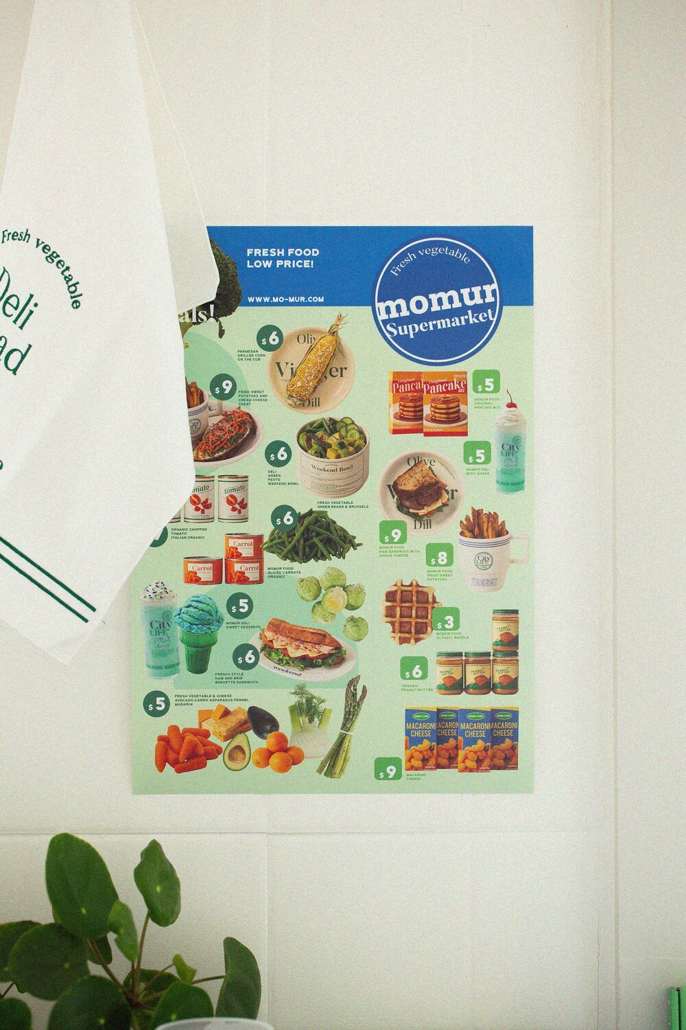 슈퍼마켓 전단지에서 영감을 받은 포스터로, 주방에 위트 넘치는 무드를