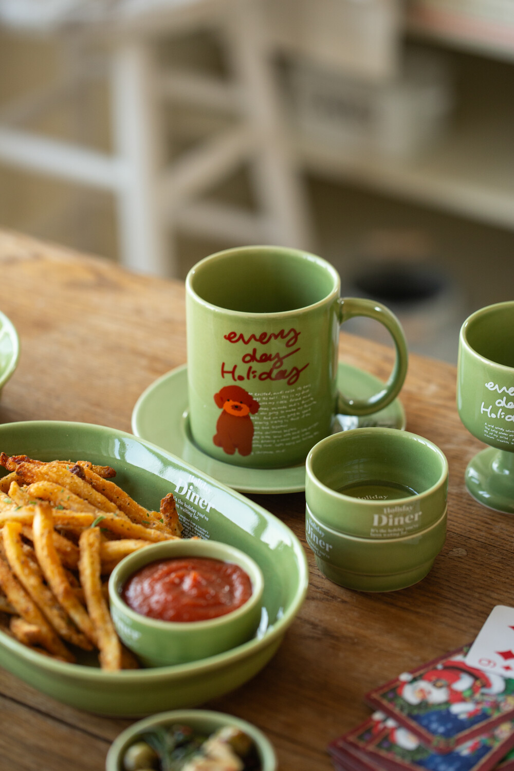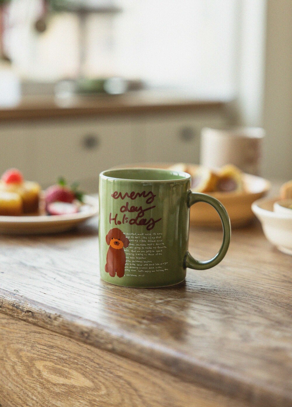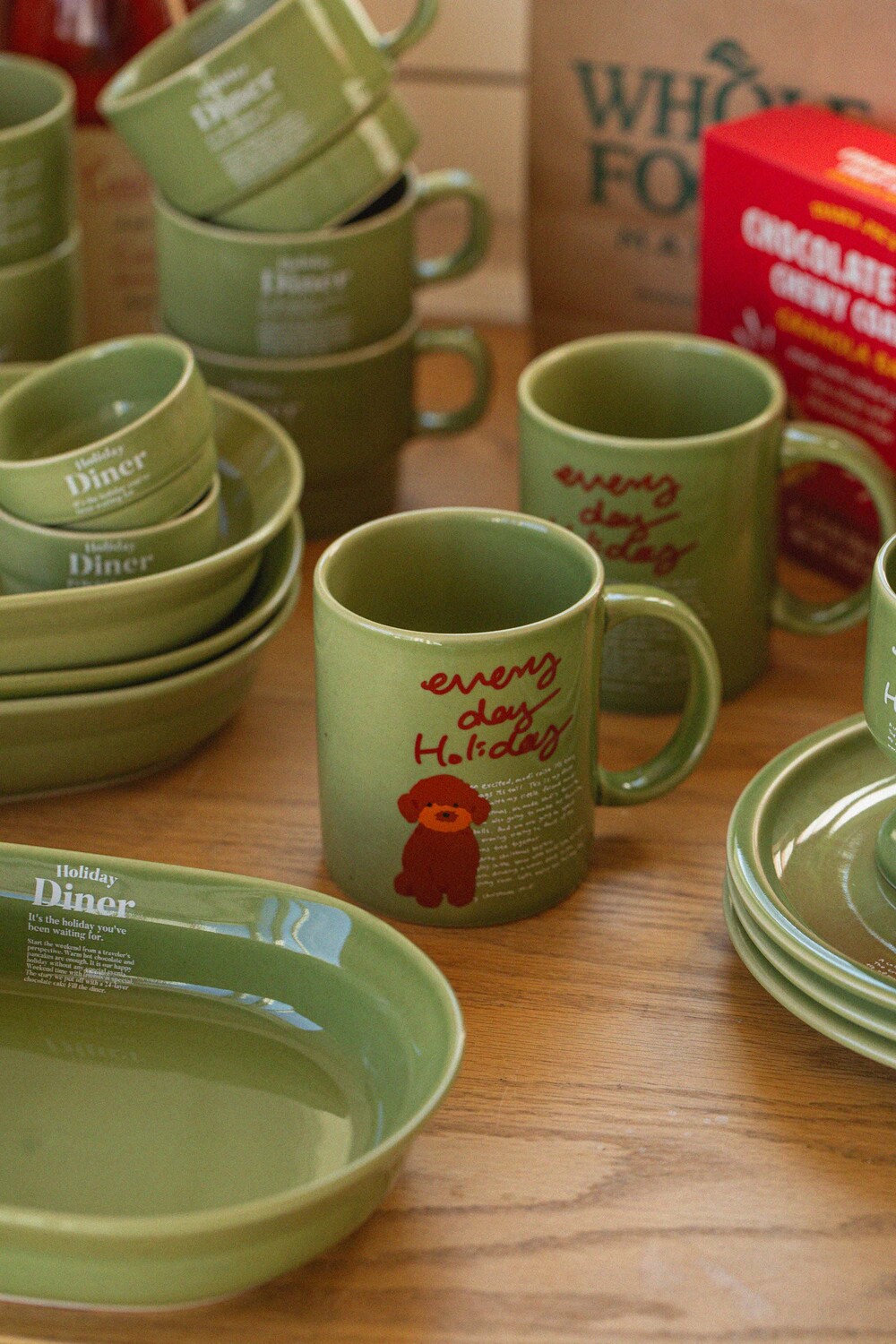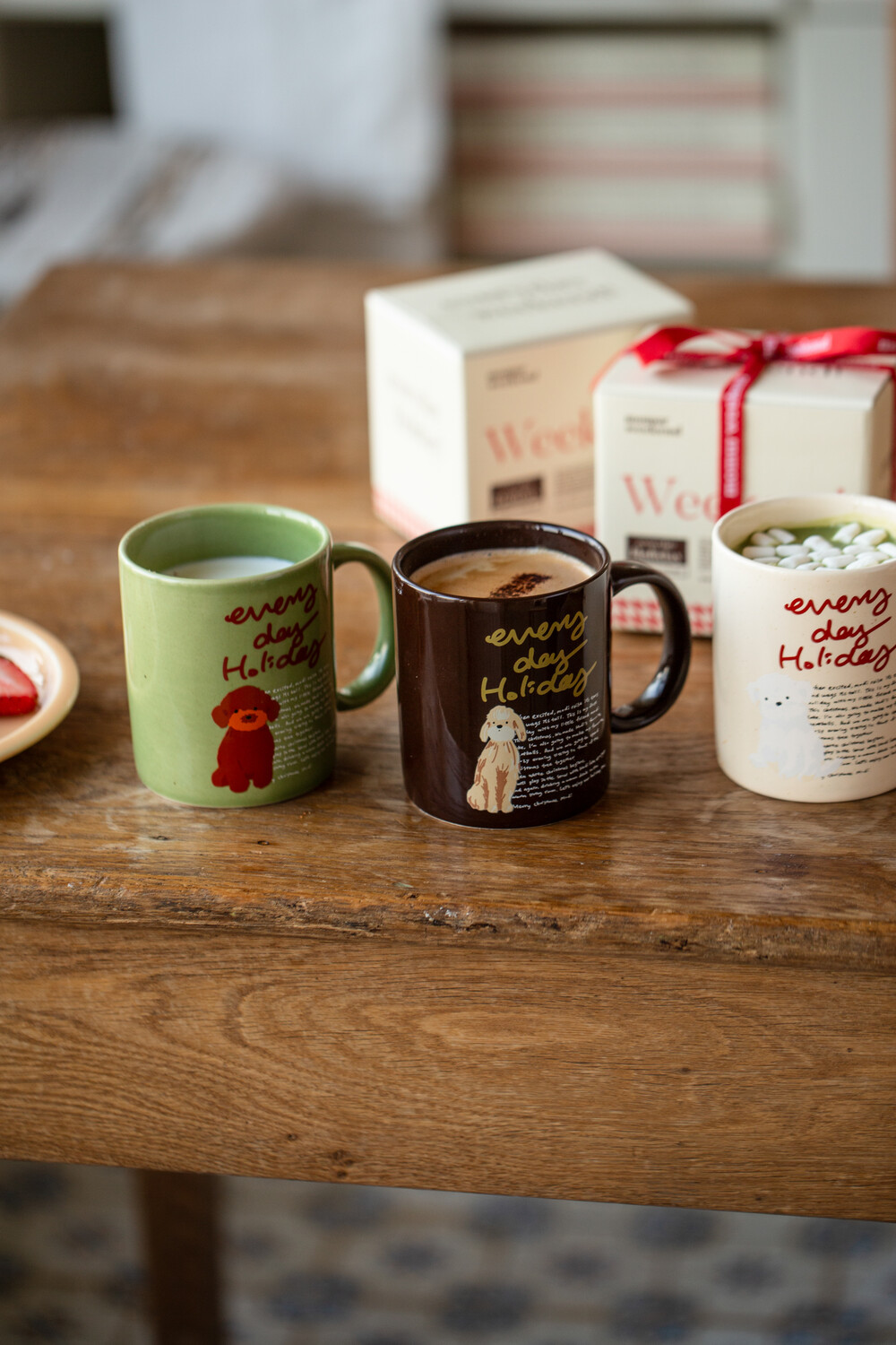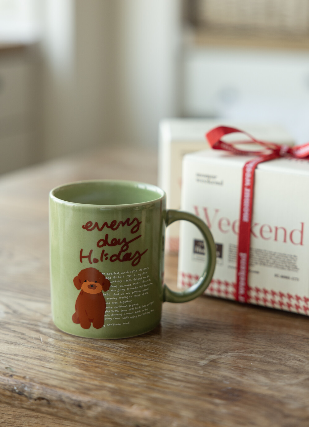 코끝에 닿는 차가운 겨울 공기와 코트 속 따뜻함이 공존하는 시간. 거창하지 않아도, 충분히 즐겁고 행복한 우리들의 홀리데이 시간입니다. 집에서 사랑하는 반려동물과 보내는 따뜻한 홀리데이 시간을 생각하며 제작한 머그컵입니다.