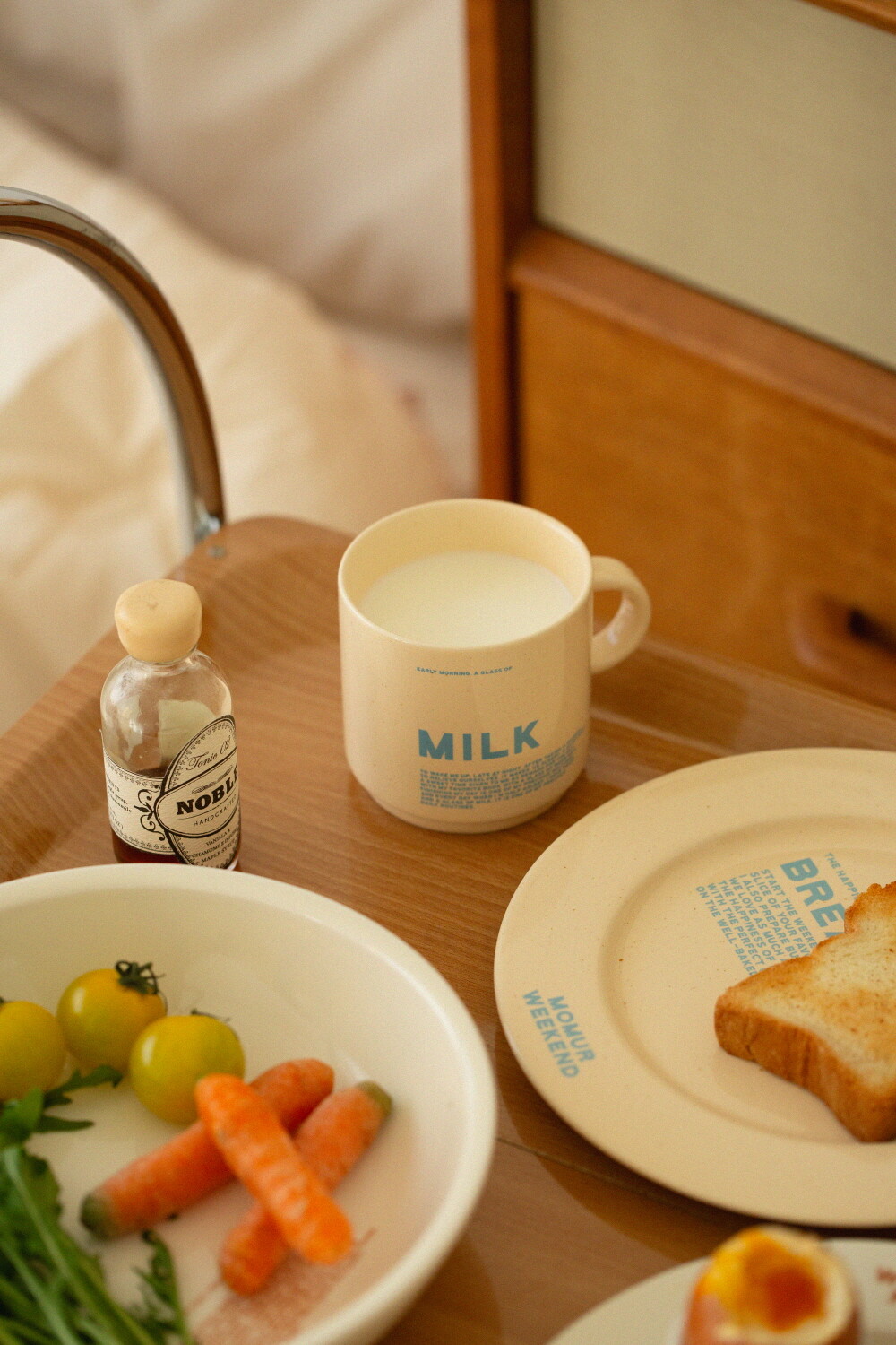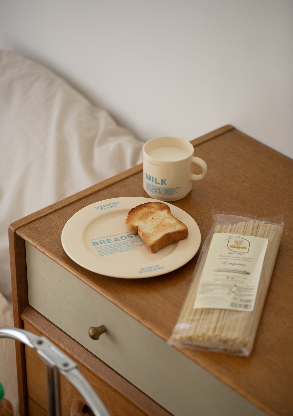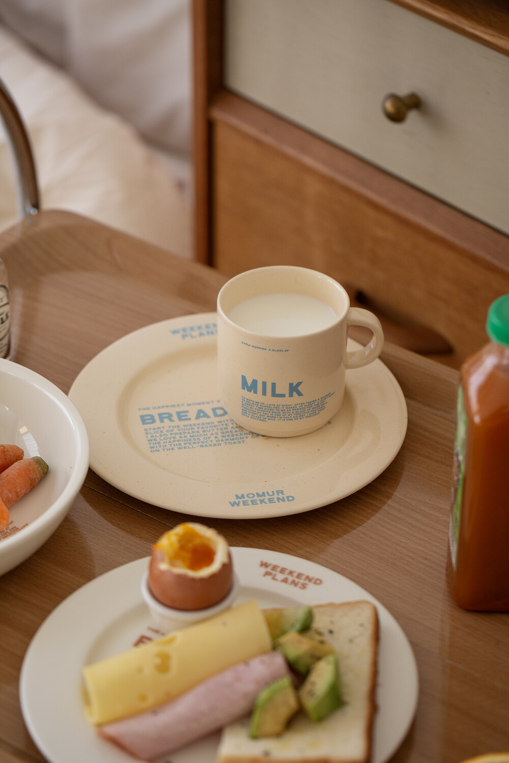 BREAD mug cup ver.2 모머위켄드 브레드 시리즈의 머그컵입니다. 바쁘게 보내는 일주일, 그 속에서 우리는 주말 계획을 세웁니다. 친구와 카페 가기, OTT 정주행, 반려동물과 산책하기 그리고 먹고 싶었던 빵으로 아침 시작하기. 기다렸던 주말 시간을 위한 플래닝에서 모티브를 가져온 시리즈입니다. 토스트와 버터로 시작하는 우리의 주말을 기대합니다. 빵과 어울리는 커피, 우유, 쥬스 등을 담아 마시기 좋은 머그컵입니다. 브레드 시리즈와 함께 구성해 사용해 보세요. 구성 : 머그컵 1개 컬러 : 버터 [사용 안내] 도자기 제품은 전자레인지와 식기세척기 사용 가능합니다. 버터색 유약은 반무광 유약이 섞여 있어, 나이프나 젓가락 사용 시 스크래치가 발생할 수 있습니다. 제조 : korea size : 7.5 x 7.5 x 7.5 (손잡이 제외/ 손잡이 2.5) 용량 : 200ml