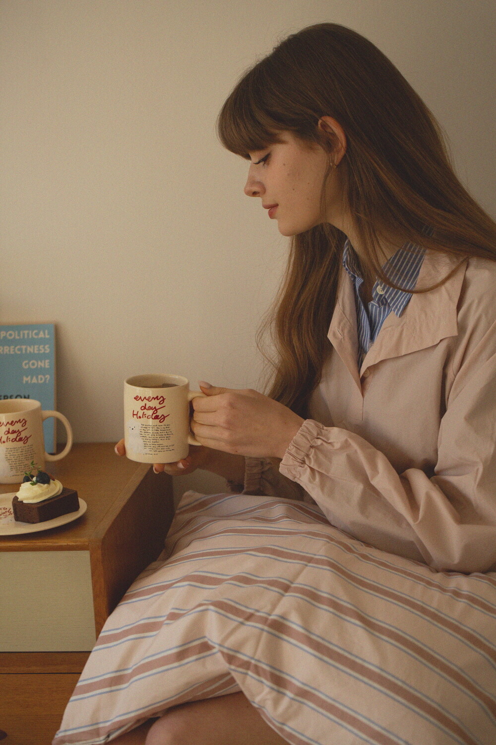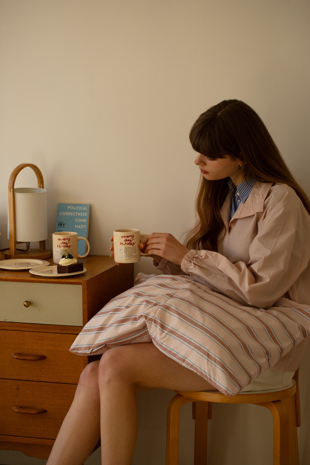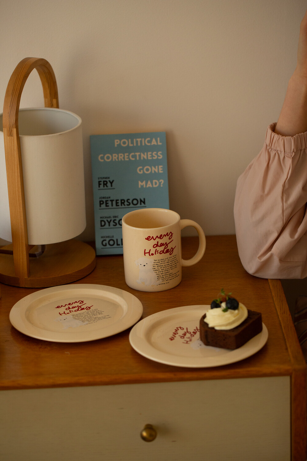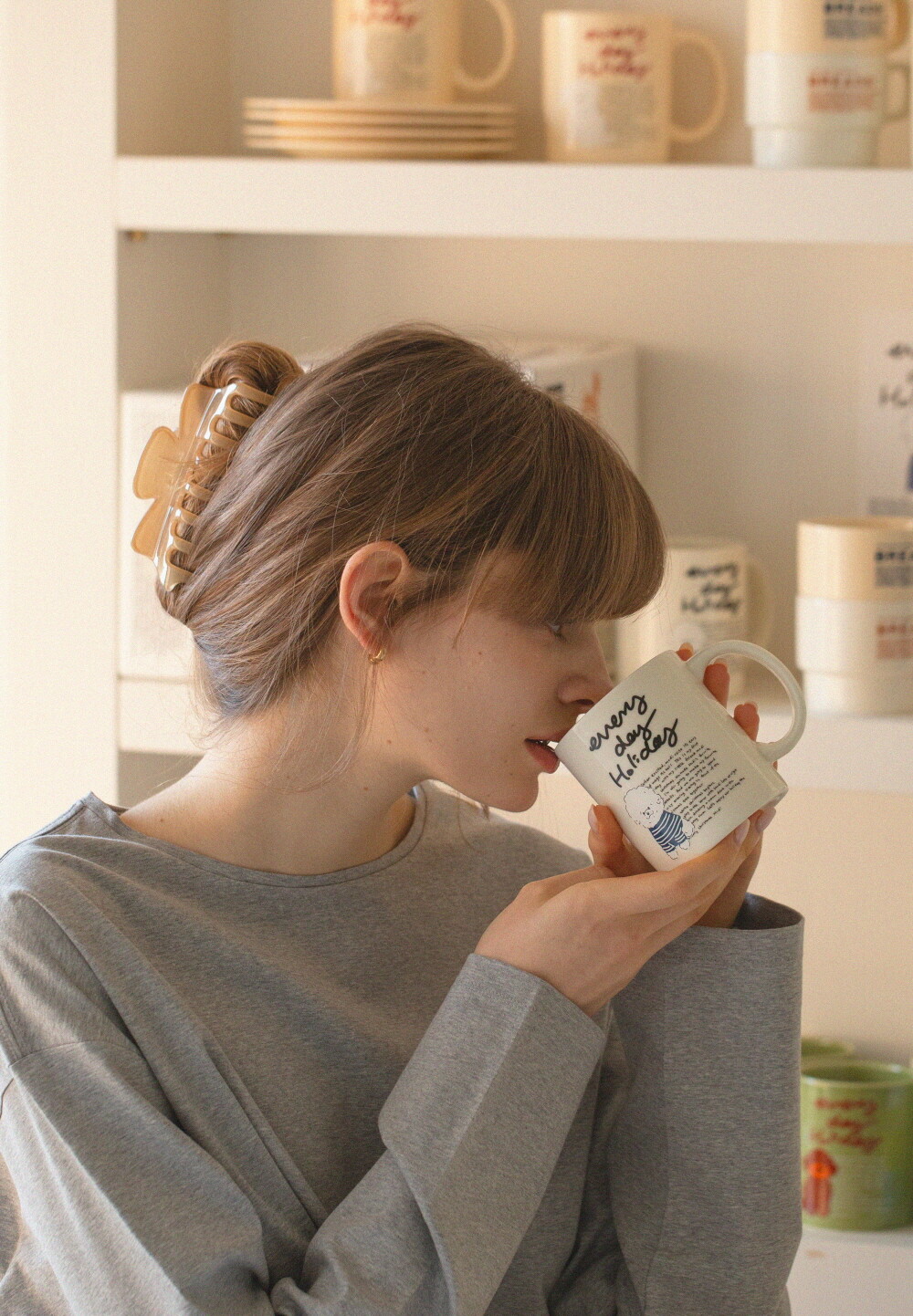 모머위켄드 홀리데이 메인 테마인 ‘에브리데이 홀리데이’ 레터링과 귀여운 강아지 그림이 들어간 도자기 제품입니다.
