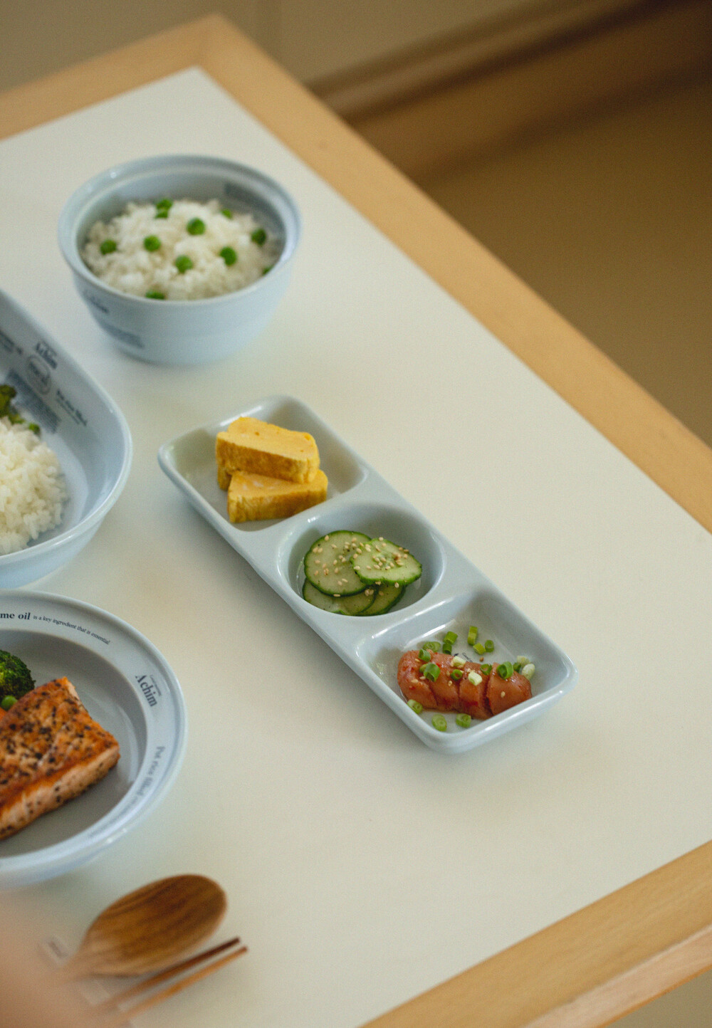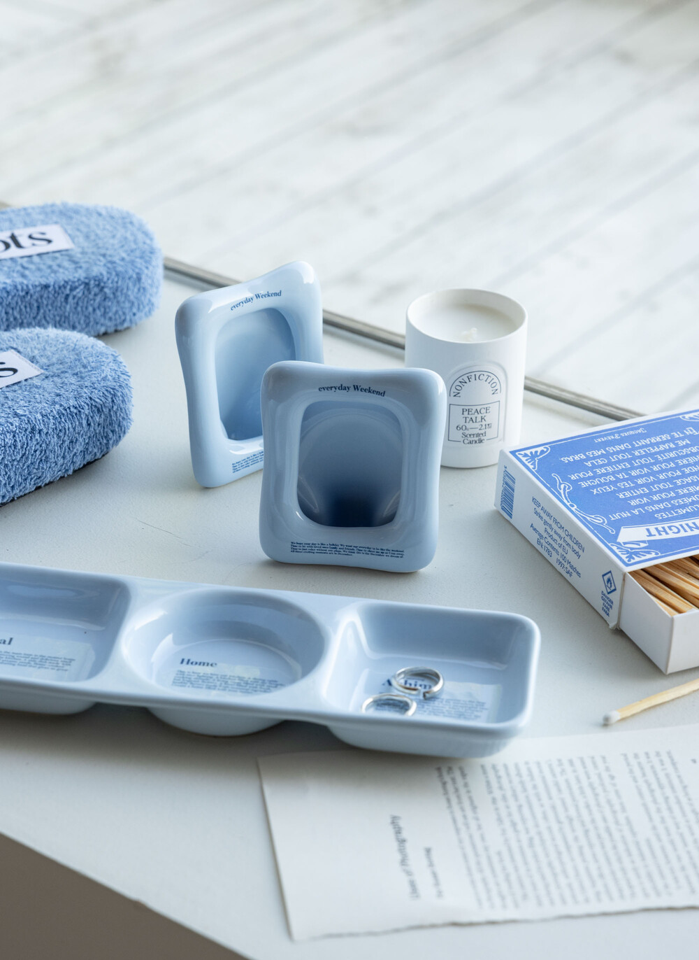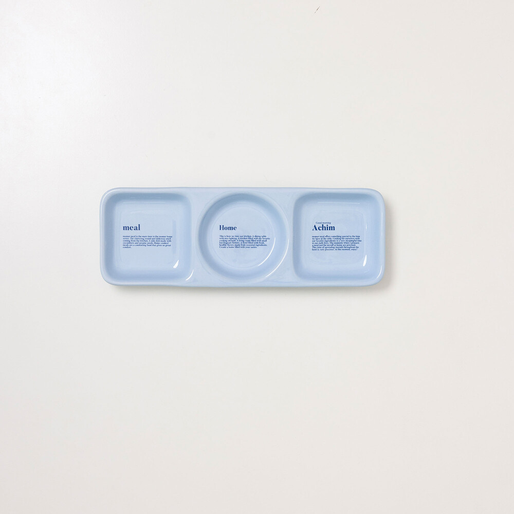 [ 3칸 나눔 플레이트 ] 주말의 편안함을 제안하는 모머위켄드의 9번째 시리즈, 모머홈입니다. 매일 아침 눈을 뜨고, 식사를 하고, 잠이 드는 이 곳, 바로 집입니다. 우리는 집에서 휴식을 취하기도 하고, 취미생활을 하기도 합니다. 그리고 그 공간을 온전히 자신의 취향으로 채우기도 합니다. 나의 또 다른 모습을 하고 있는 집을 마주하며, 새로운 하루를 시작하기도 합니다. momur home은 우리의 라이프 전반에 잔잔한 취향을 담은 시리즈입니다. 1인용 반찬 플레이트로 제작된 나눔 플레이트입니다. 한식기로 제작되었지만, 반찬 외에도 치즈, 올리브 등의 스낵을 담는 용도로도 사용할 수 있습니다. 취향에 따라 식기가 아닌 악세서리 플레이트로도 추천하는 제품입니다. 구성 : 플레이트 1개 컬러 : 스카이블루 사이즈 : 8.5 x 24 [사용 안내] 도자기 제품은 전자레인지과 식기세척기 사용 가능합니다. 색상에 따라 유약의 성질이 달라 금속 나이프나 수저 사용 시 스크래치가 발생할 수 있습니다